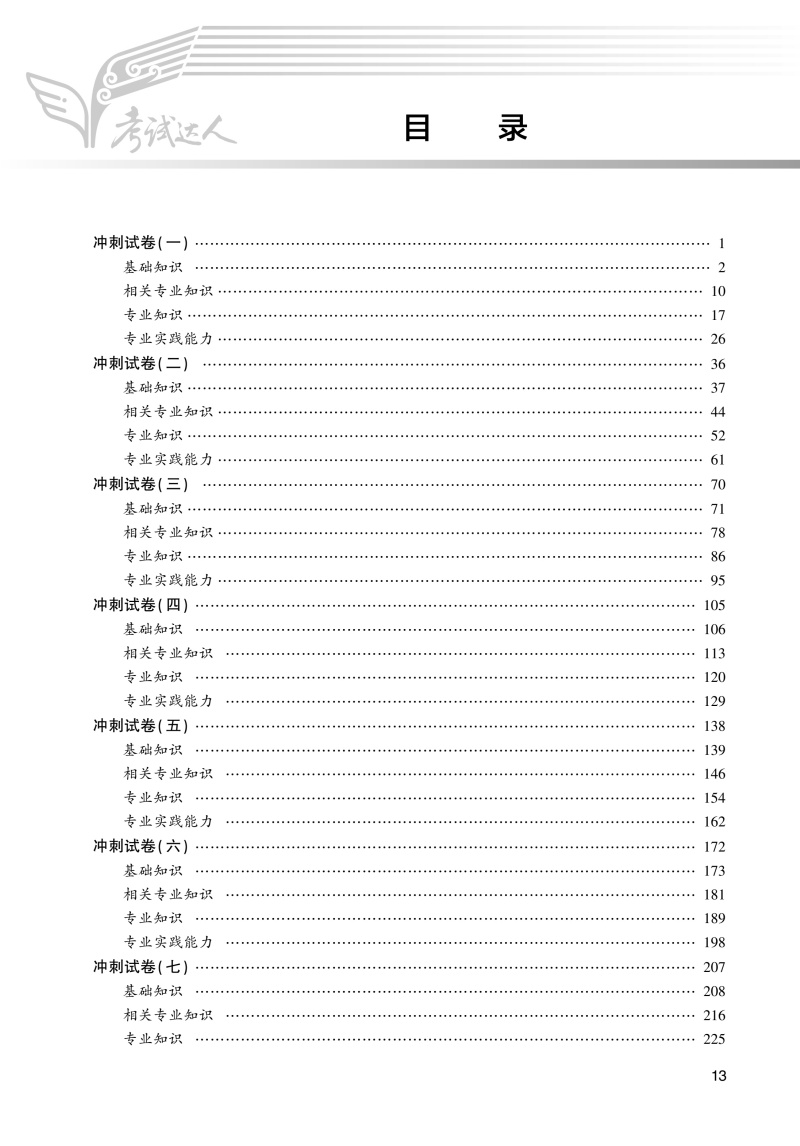 “考试达人”系列经过十余年的打磨,已经形成了独特的品牌和较好的市场影响力。 《轻松过》适用于基础阶段复习。栏目包括:①“考点导航”,根据新版“考试大纲”给考生指出复习重点;②“温馨提示”,帮助考生掌握记忆技巧;③“例题解析”,提供经典考题讲解解题思路;④“考点练习”,帮助考生检验复习效果。 《冲刺跑》适用于冲刺阶段复习,内含“冲刺宝典”、12套“冲刺卷”及1200道真题视频讲解。“冲刺宝典”是高频考点大集合,确保重点内容不丢分;“冲刺卷”参照实际考试科目、题型、题量设计原则与命题趋势进行组卷,适用于冲刺阶段自测。 《随身记》高度凝练考点,一般以1~2句话总结考点精髓,编成助记口诀,包括口诀速记、试题巧记,方便考生利用碎片时间复习记忆,随时随地随身记。2026年版进行了全面改版。 《试题金典》以考试大纲为主线,采取“习题+答案+解析+过关点睛+考点分析”的结构,选取针对护师考试的有代表性的题目,考点覆盖全面,题型、难度均接近真实考试,适用于范复习时间少、以刷题巩固考点的考生。