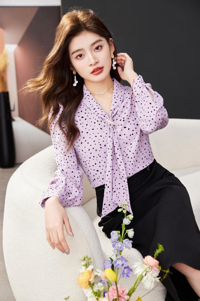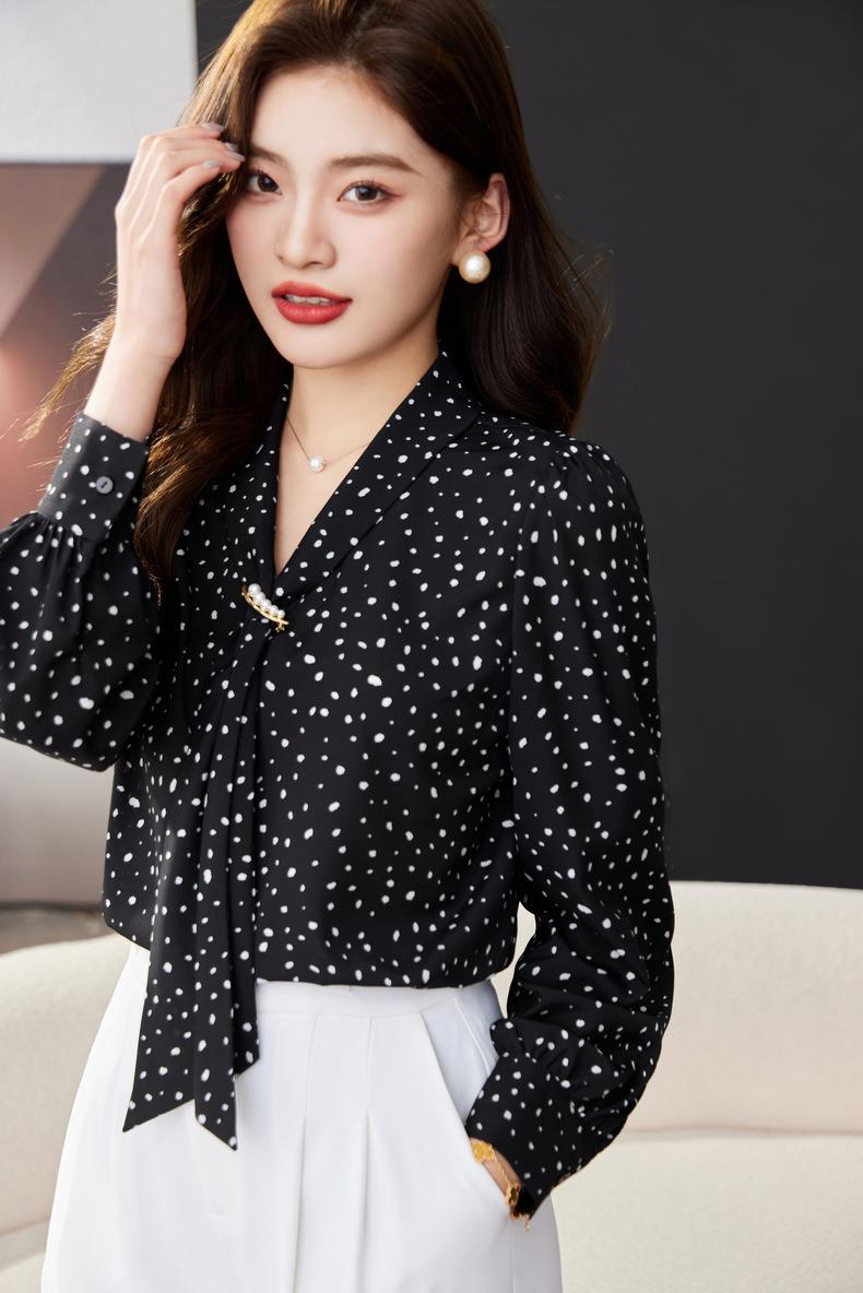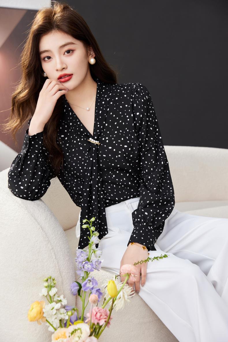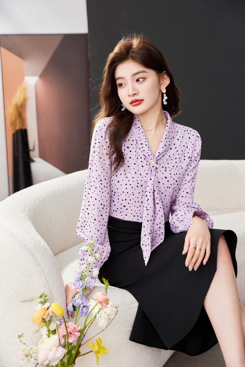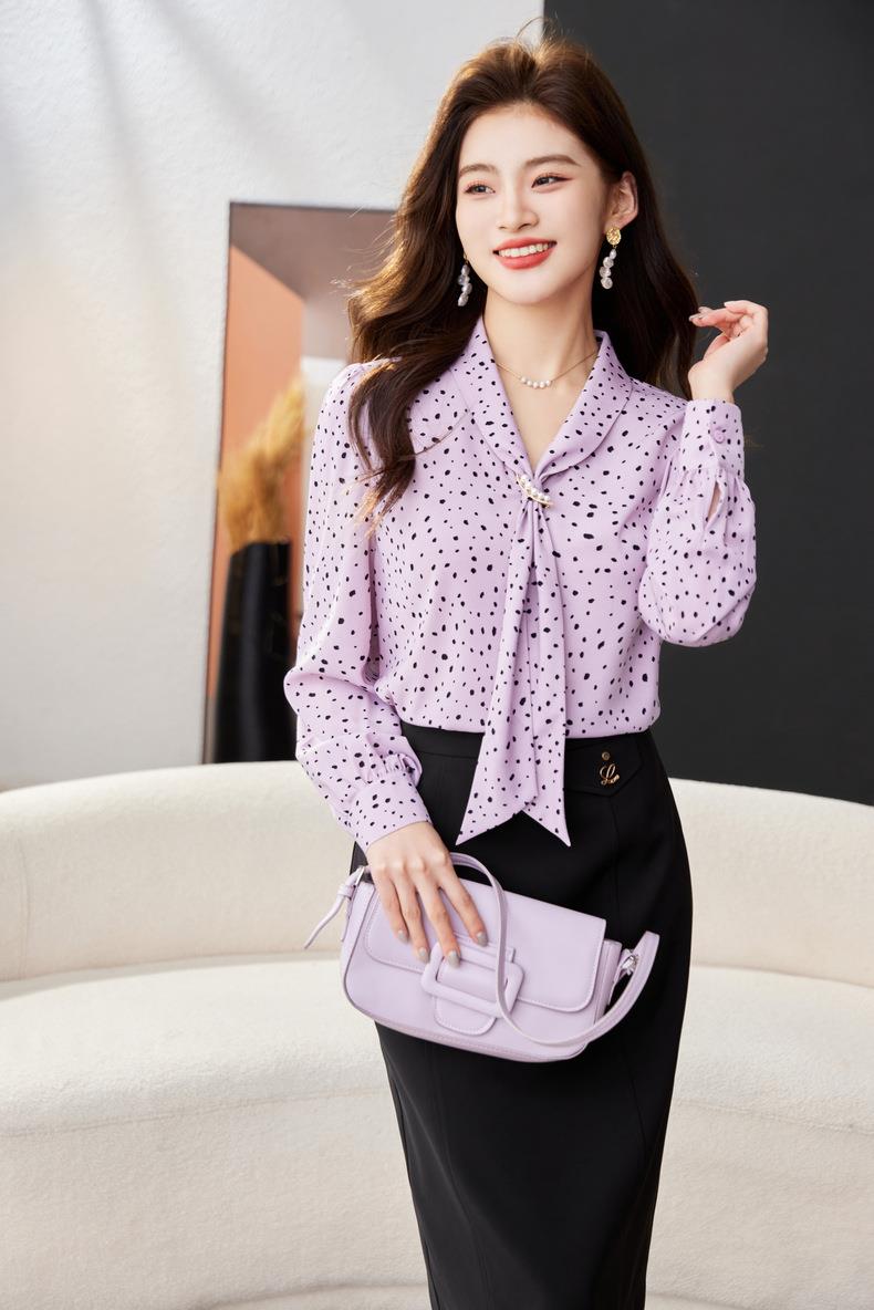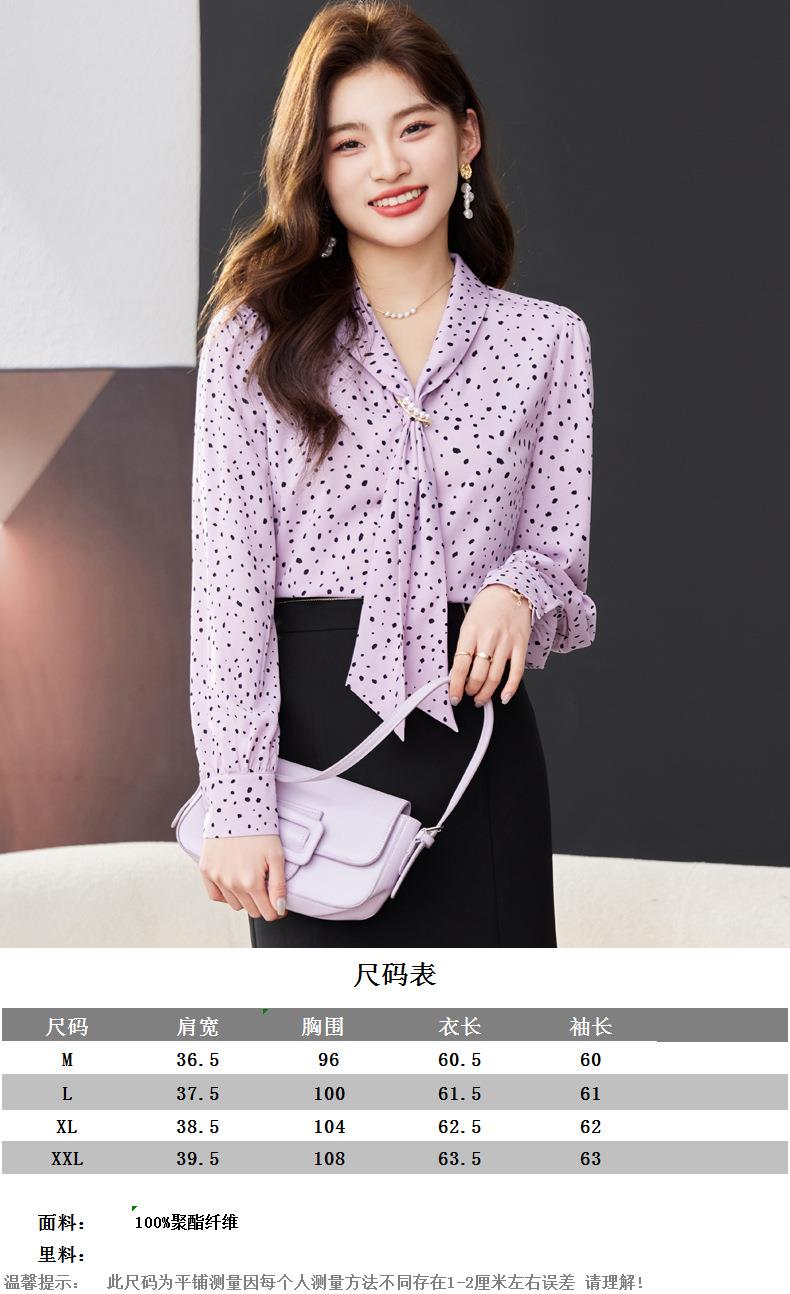 V领飘带碎花雪纺衫2024春装新款职业小衫长袖女衬衣1793