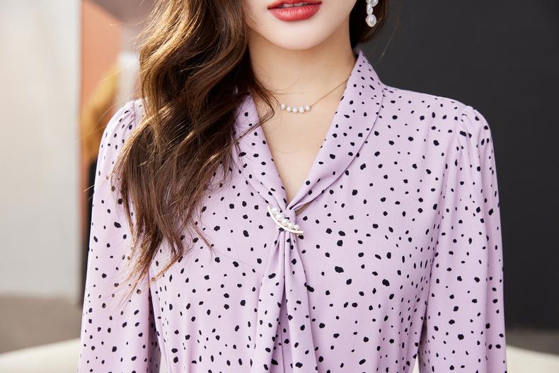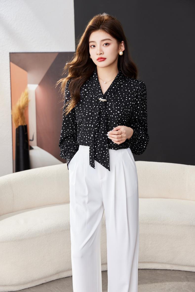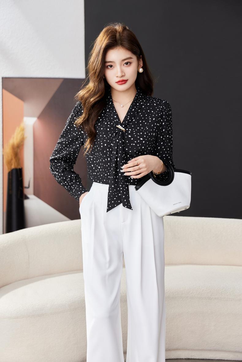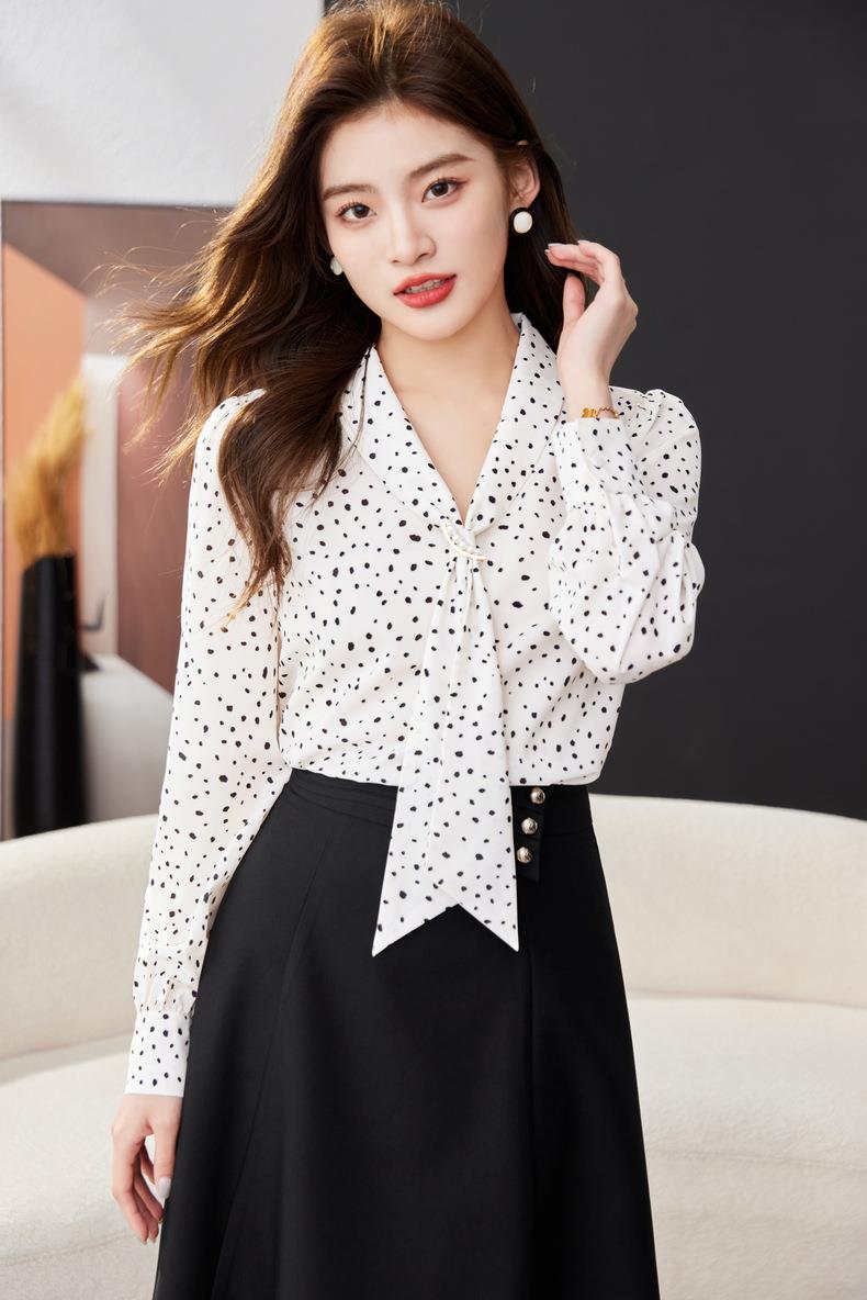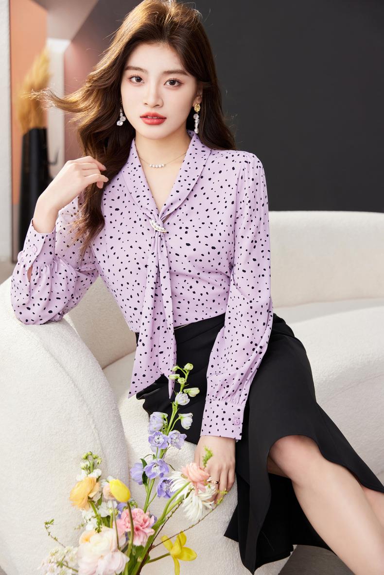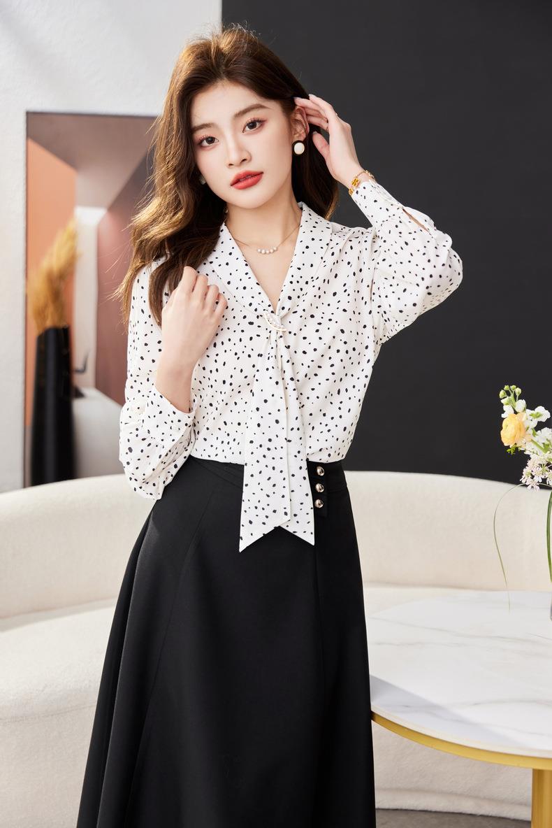 V领飘带碎花雪纺衫2024春装新款职业小衫长袖女衬衣1793