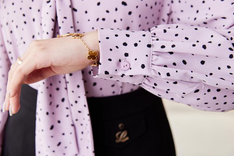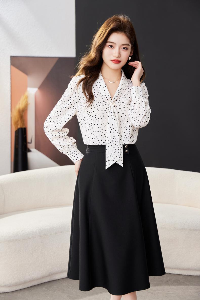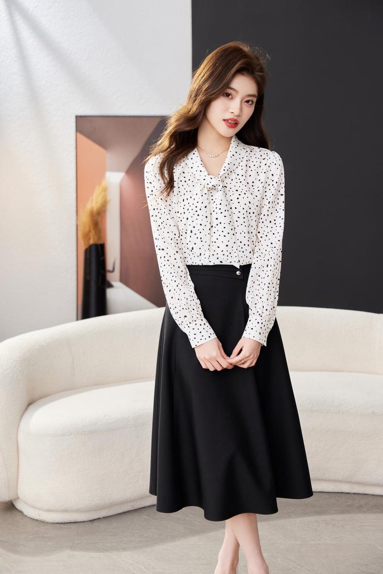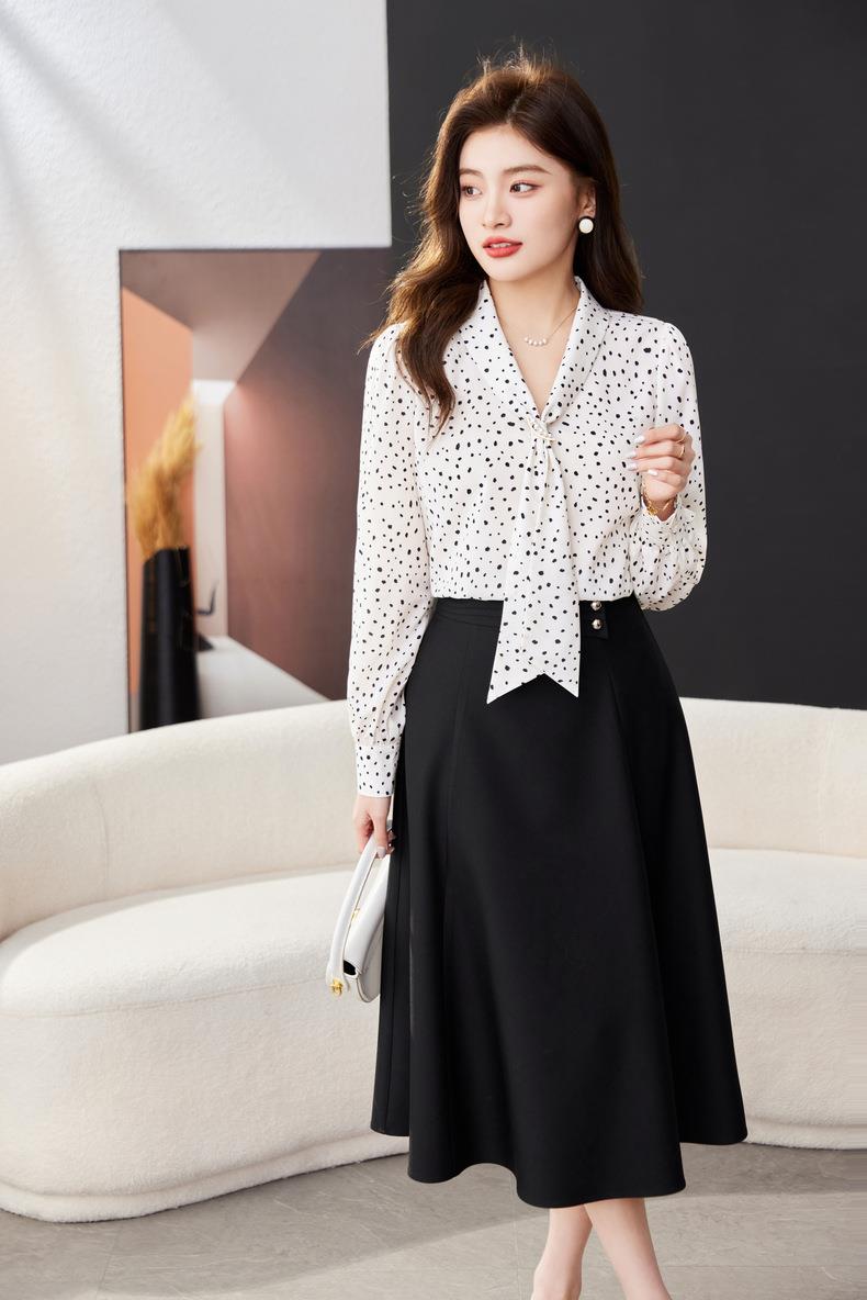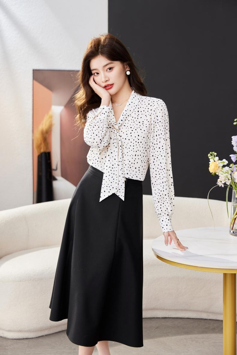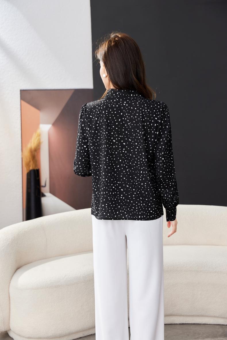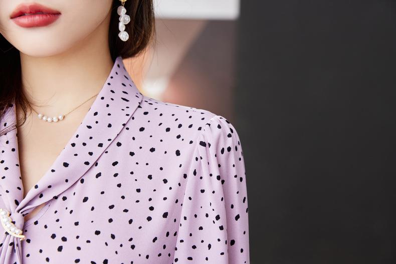V领飘带碎花雪纺衫2024春装新款职业小衫长袖女衬衣1793