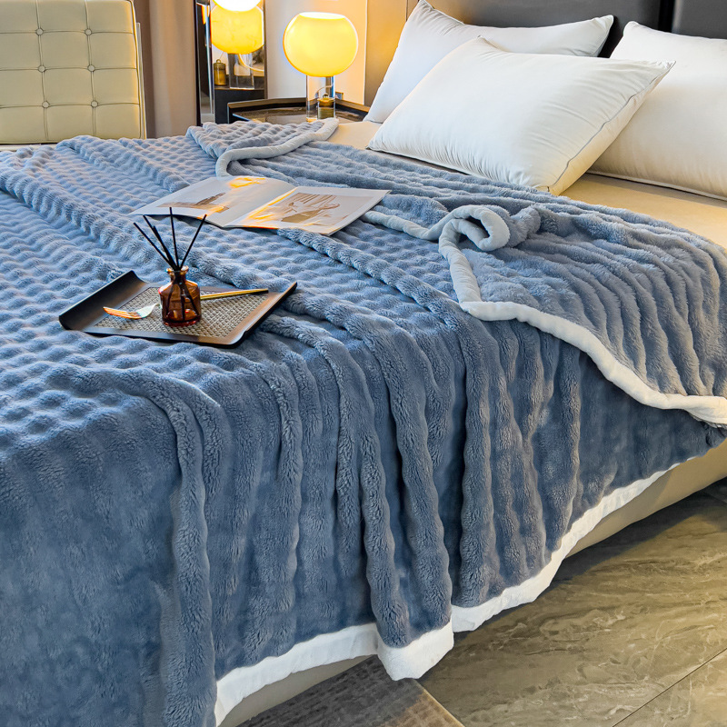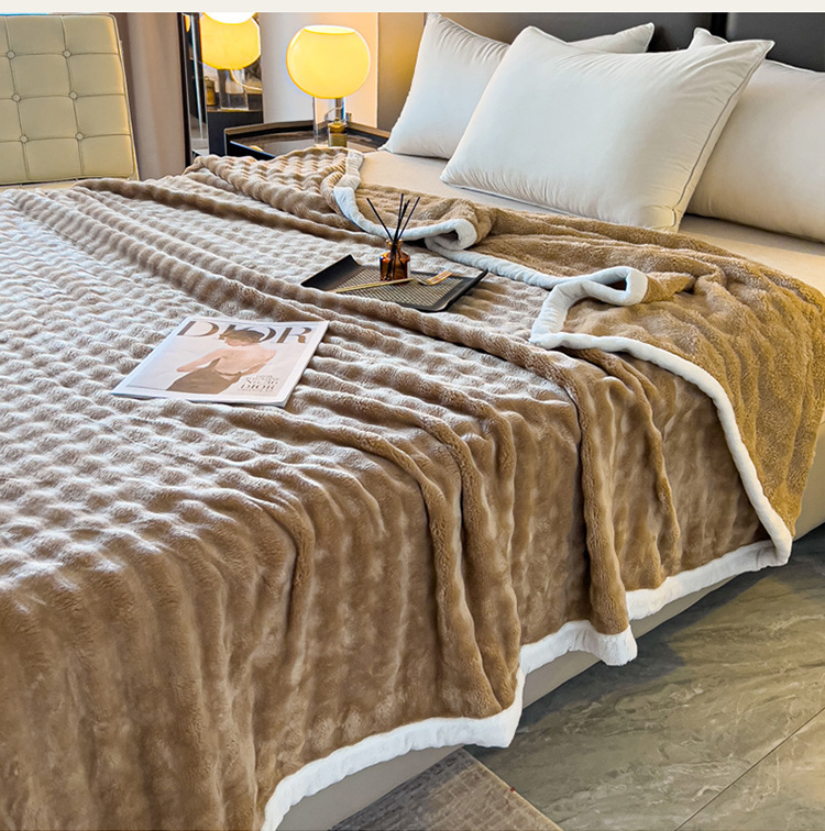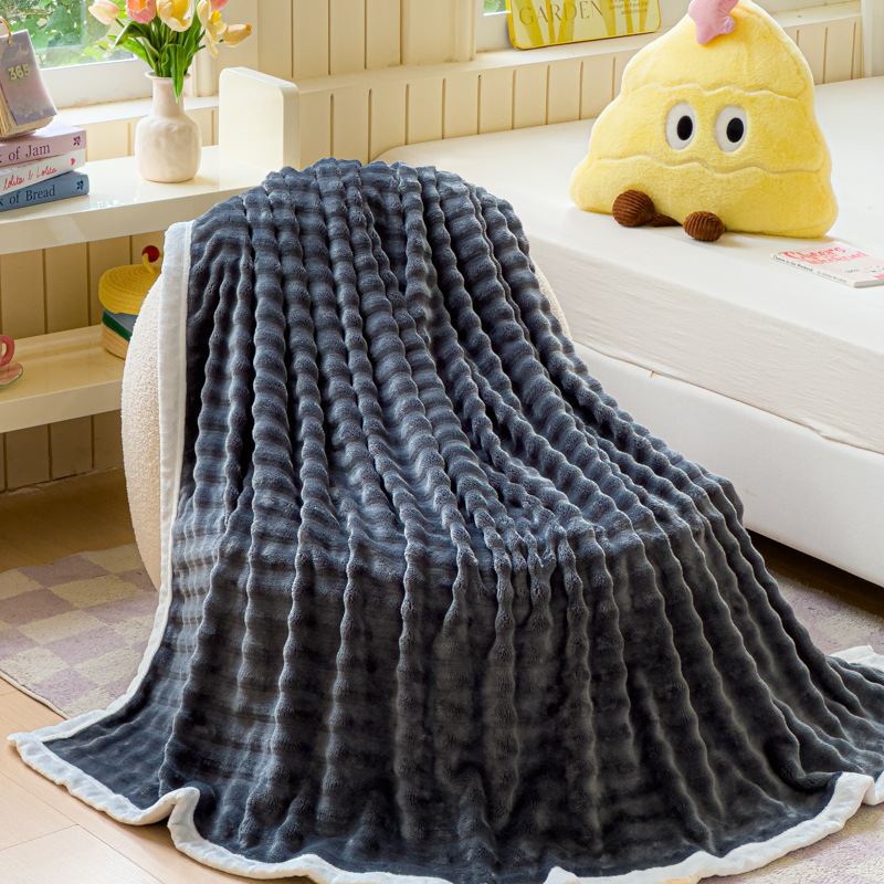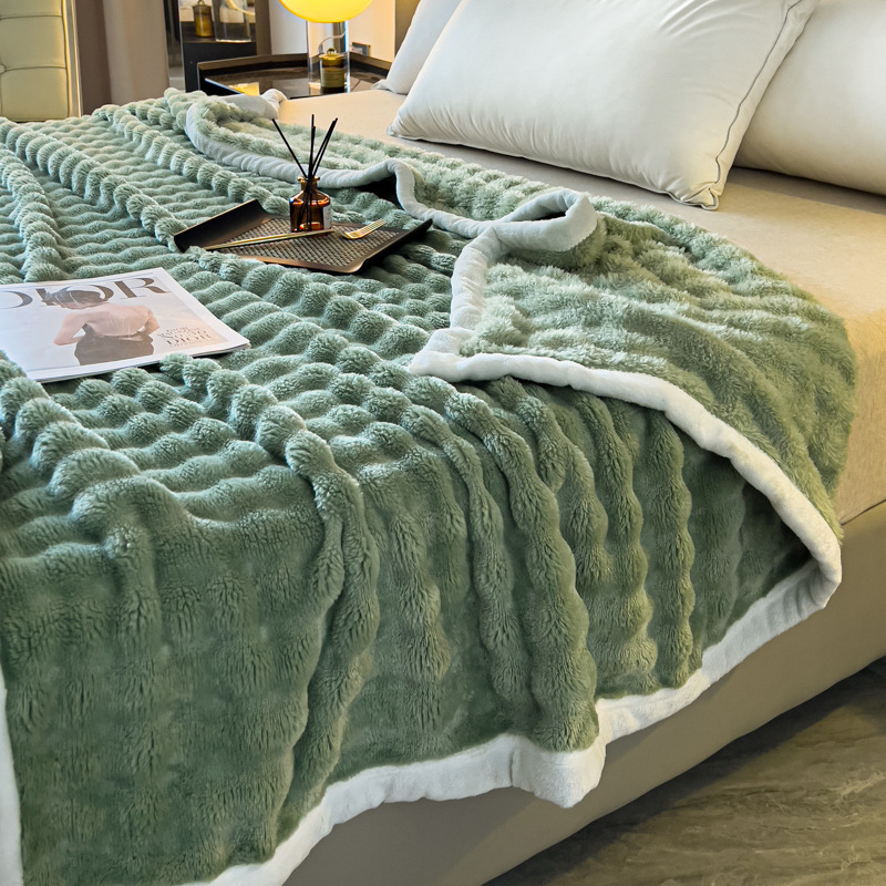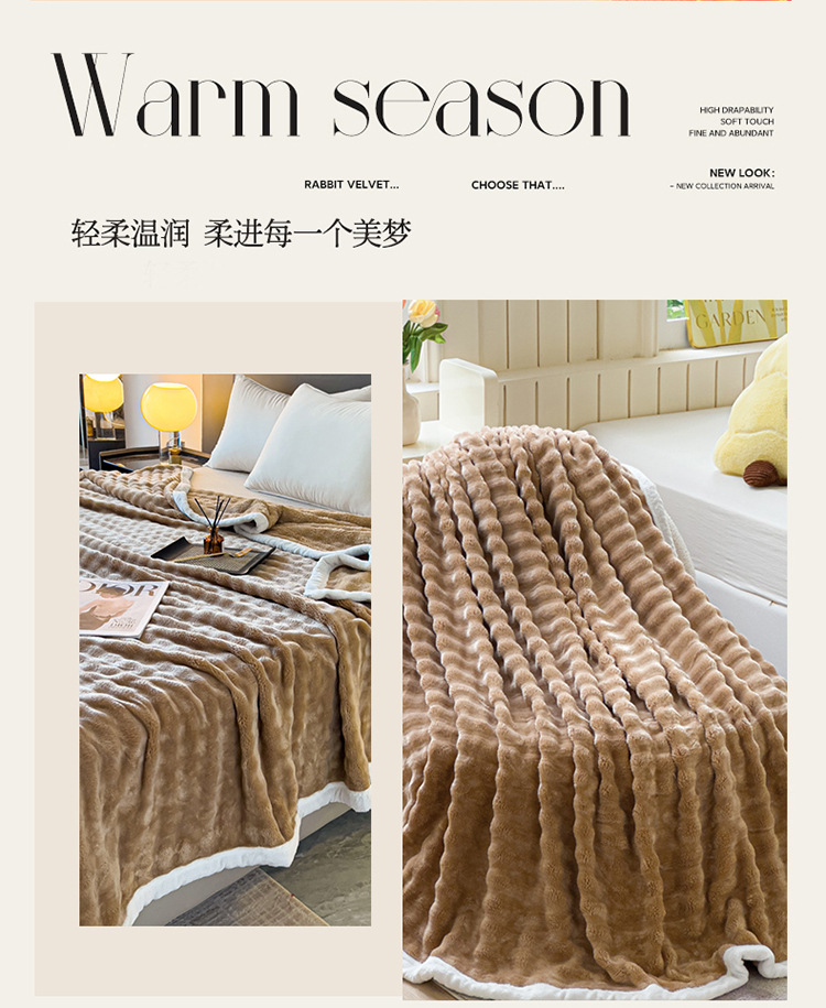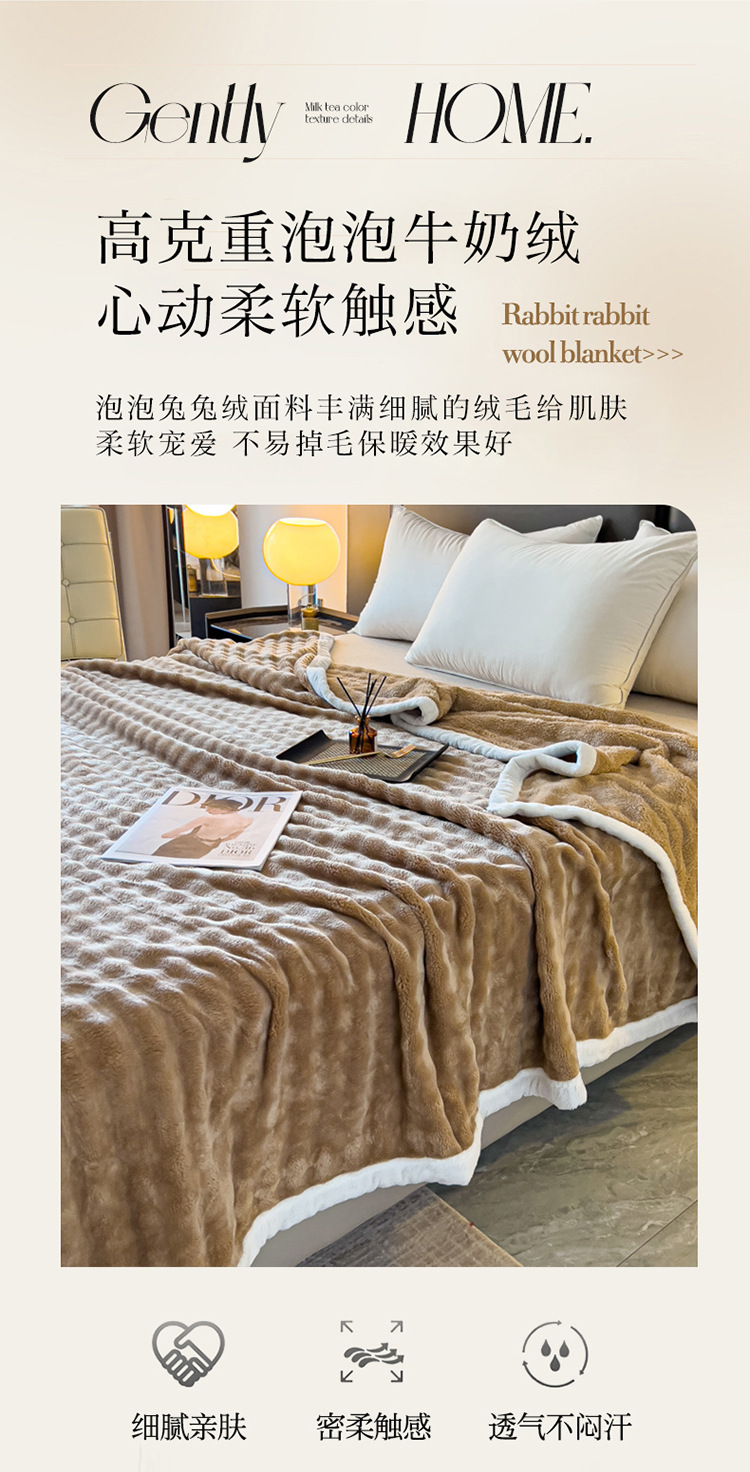 【家装氛围感新宠】泡泡绒法兰绒毯轻奢仿皮草托斯卡纳兔绒多功能办公室午睡毯子。ry