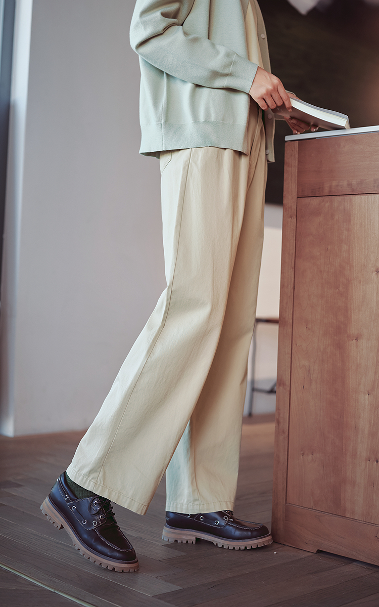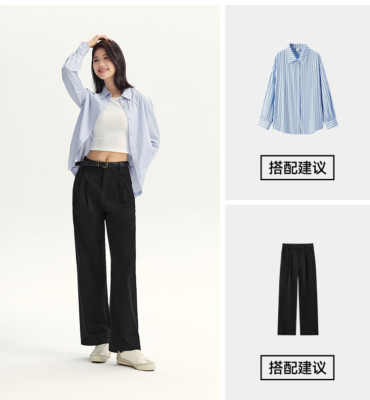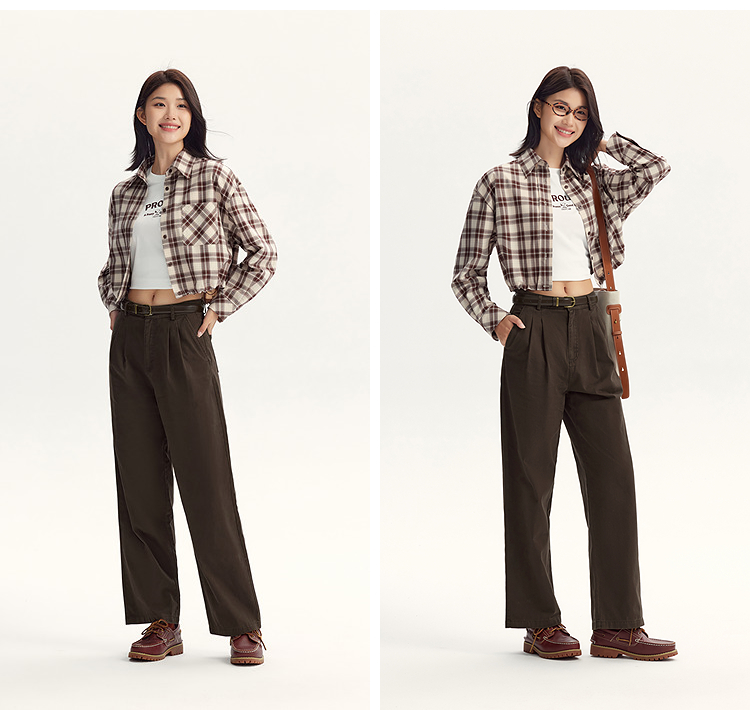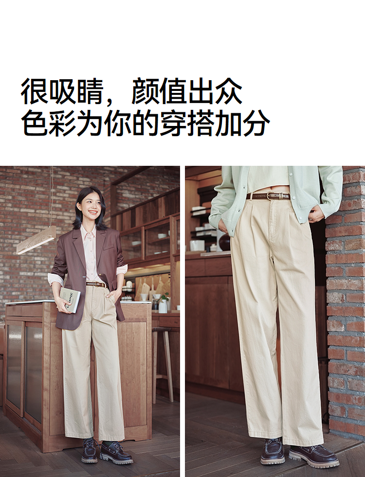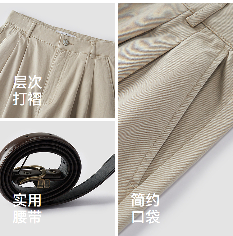 森马休闲裤女做旧宽松阔腿裤简约通勤秋磨毛纯棉打褶长裤腰带百搭