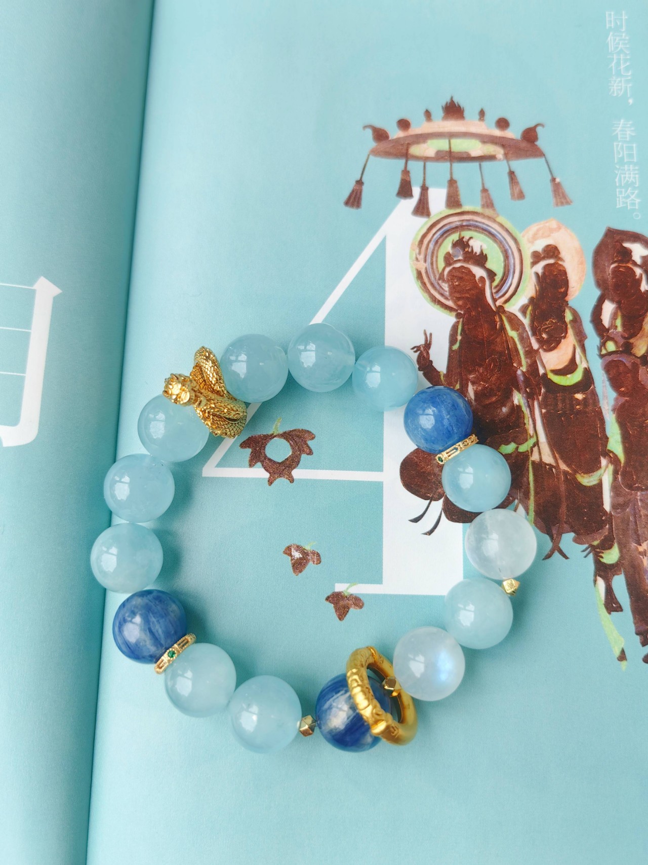 「 有龙则灵」系列新品便是以海蓝宝为主石,保留了标志性的盘龙配饰,再加入两颗名贵的月光石与蓝晶石,纯净与深邃的双频能量共振,更添几分平静与安宁。