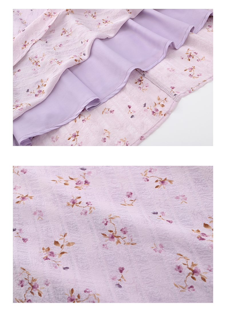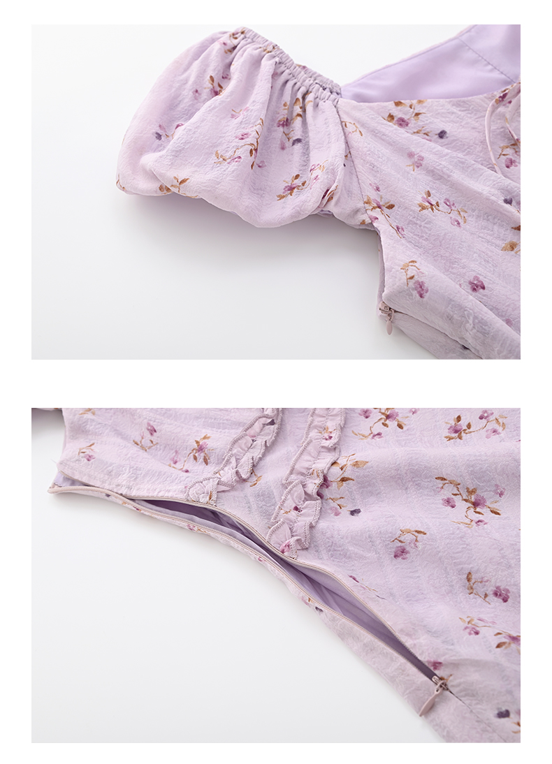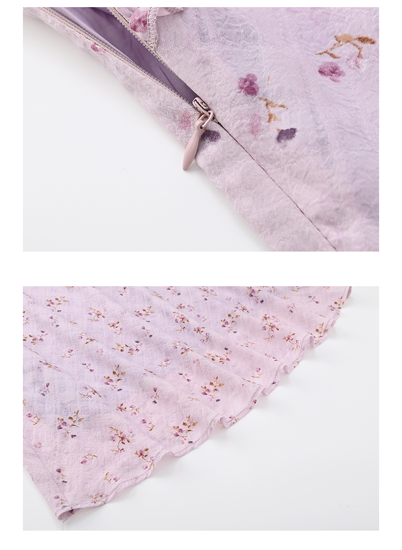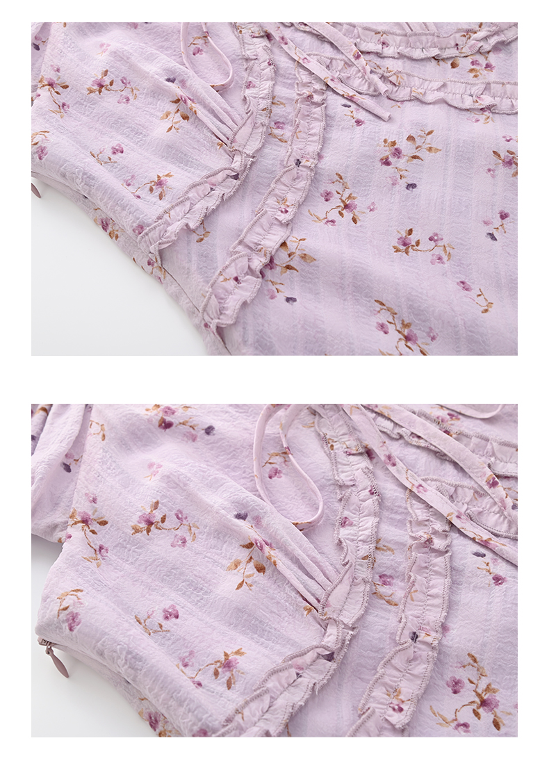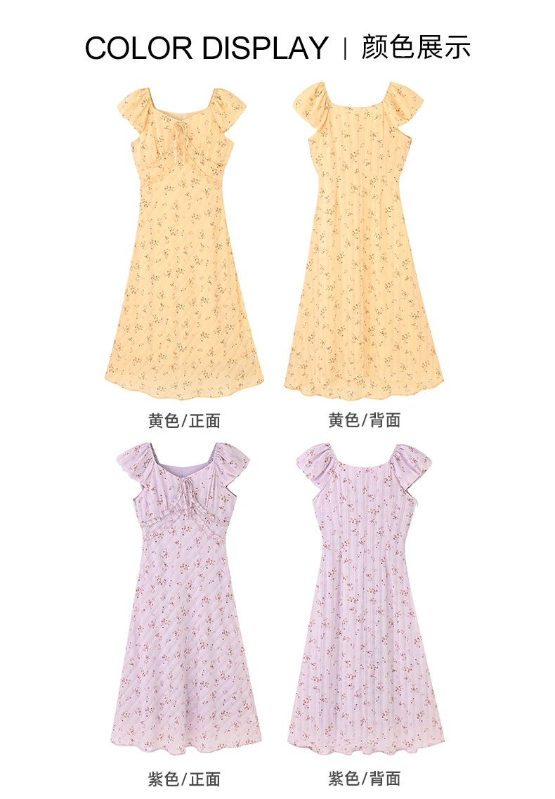 女装V领法式碎花无袖连衣裙-221Q5224002