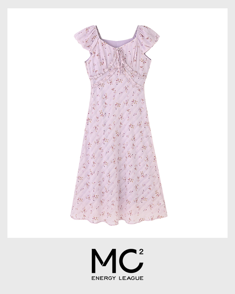 mc2撞色翻领腰身压褶长款连衣裙女装2024夏季新款时尚复古休闲风