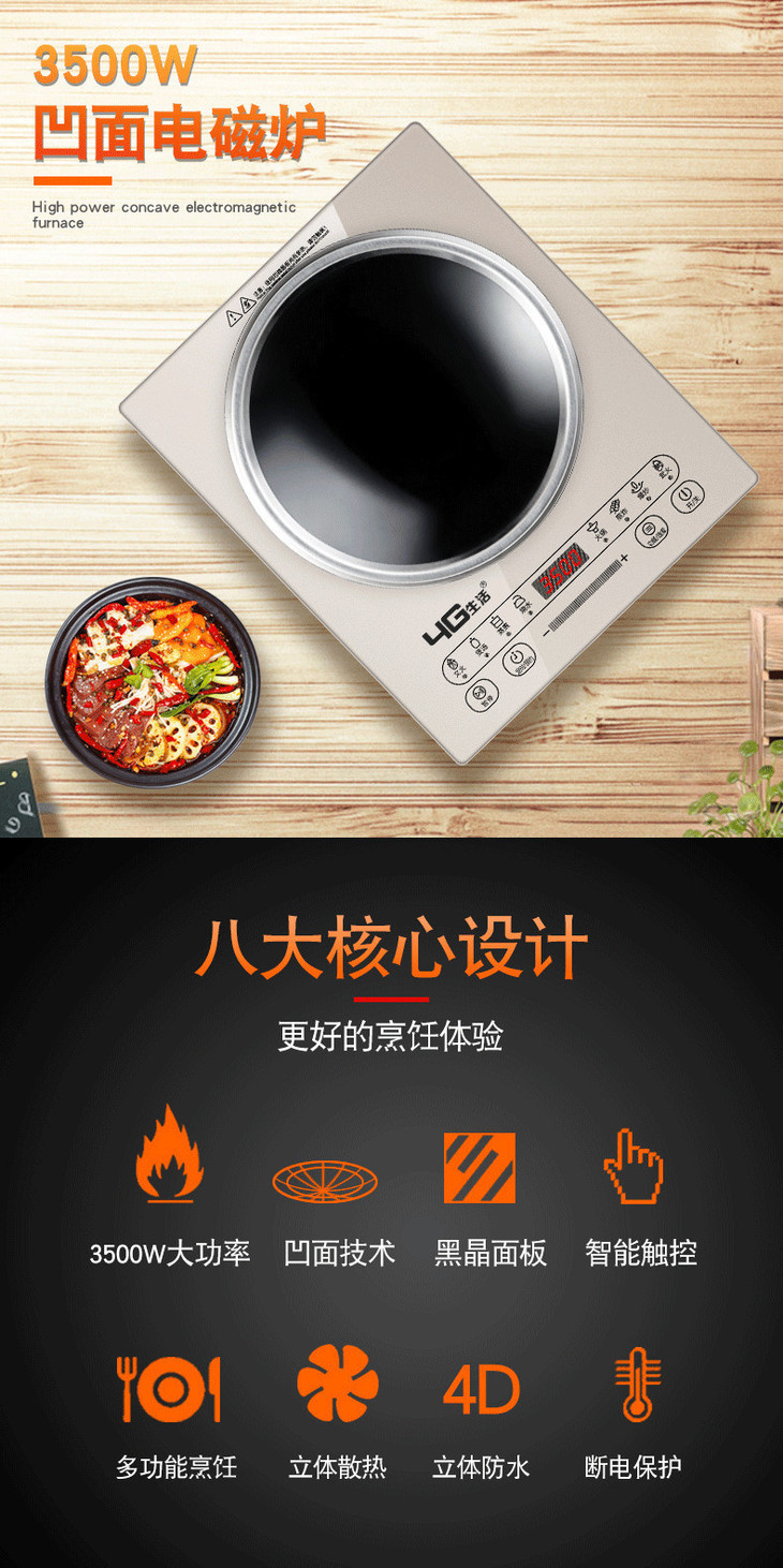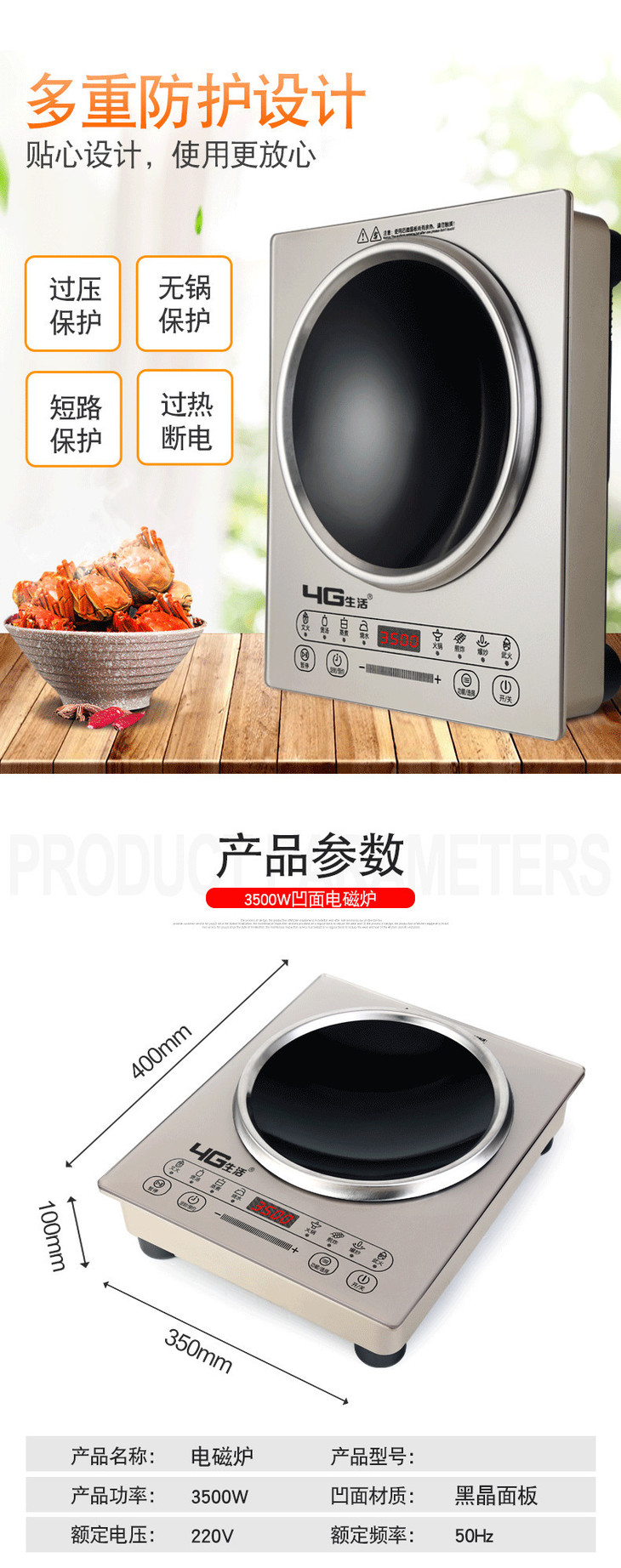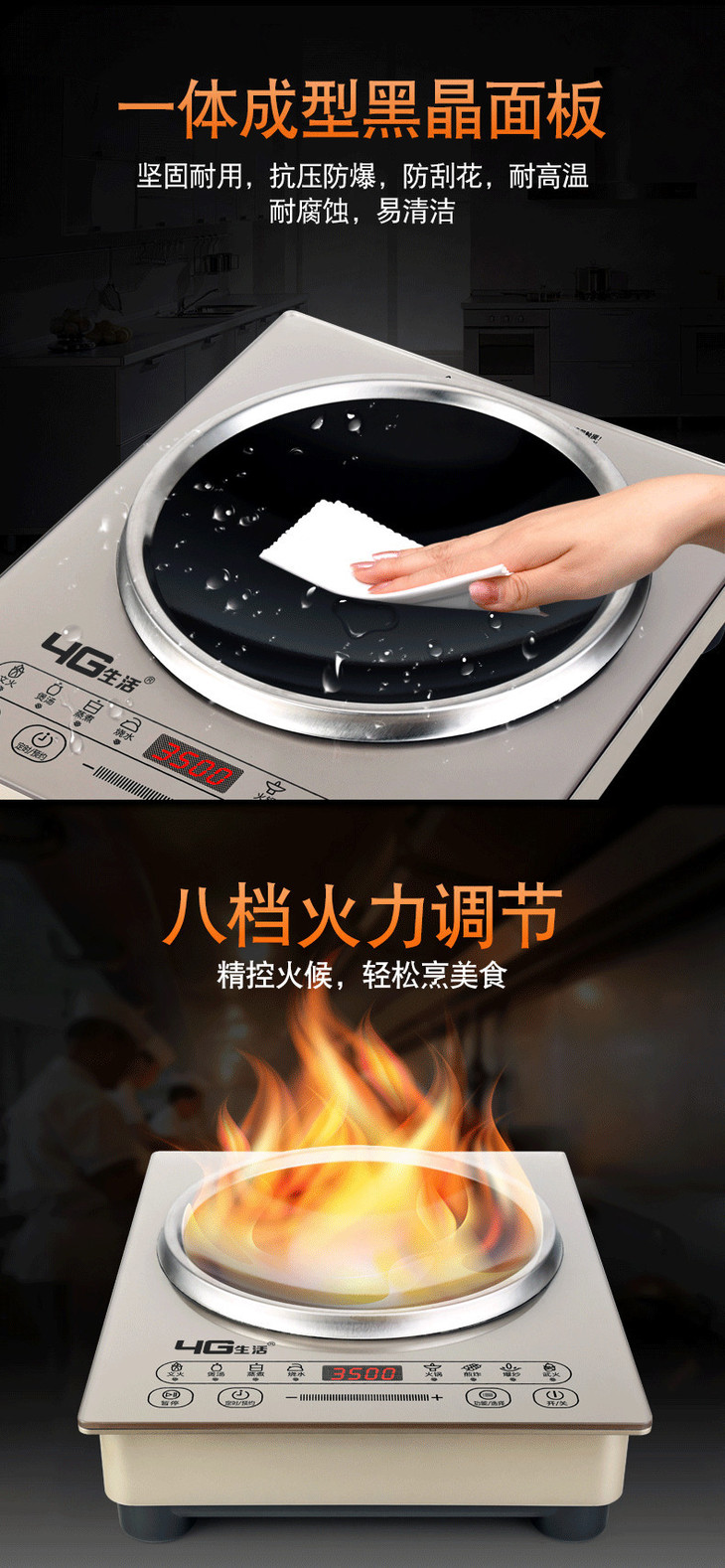 【家用电器】电磁炉4G生活3500W家用大功率 电磁炉商用电磁灶触摸台式凹形嵌入式炒菜