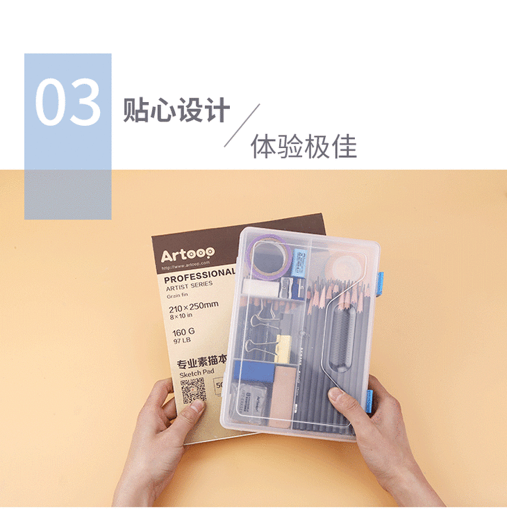 中盛画材美术工具箱储物箱多功能收纳盒素描铅笔工具盒铅笔盒彩色