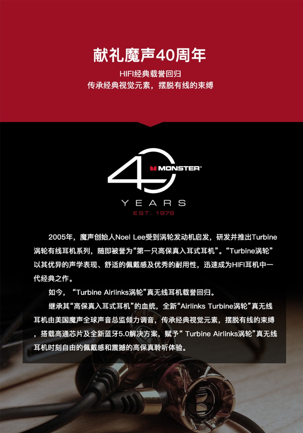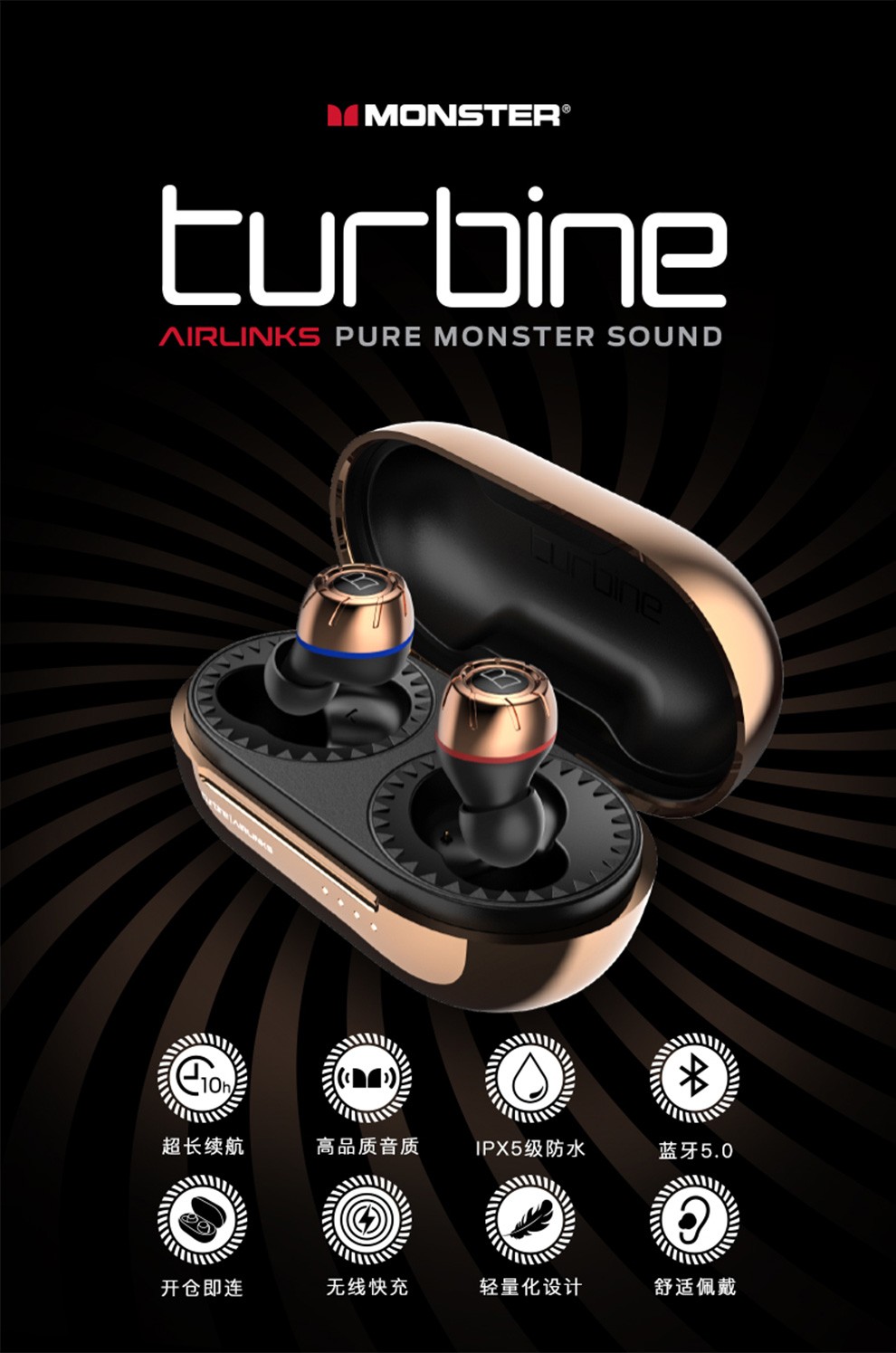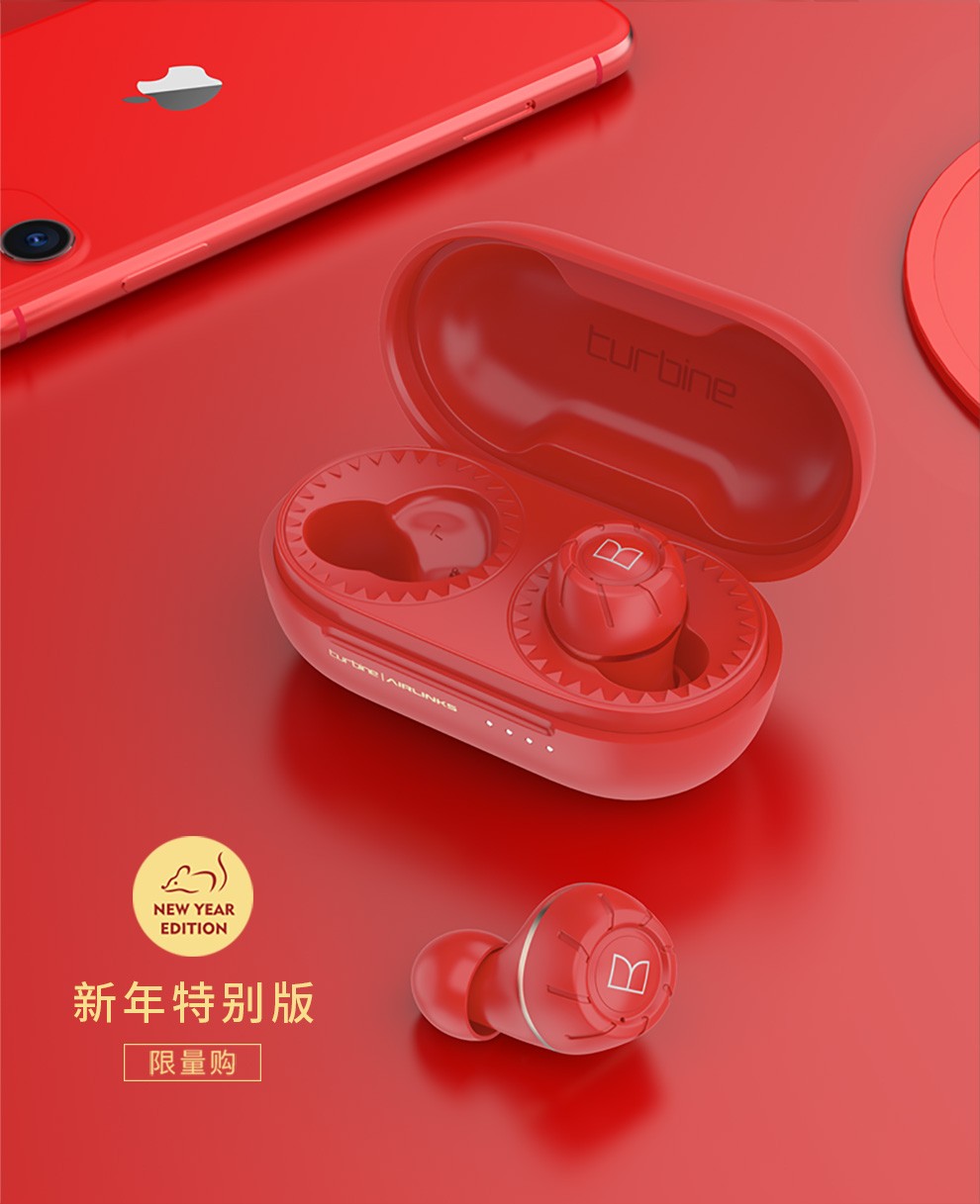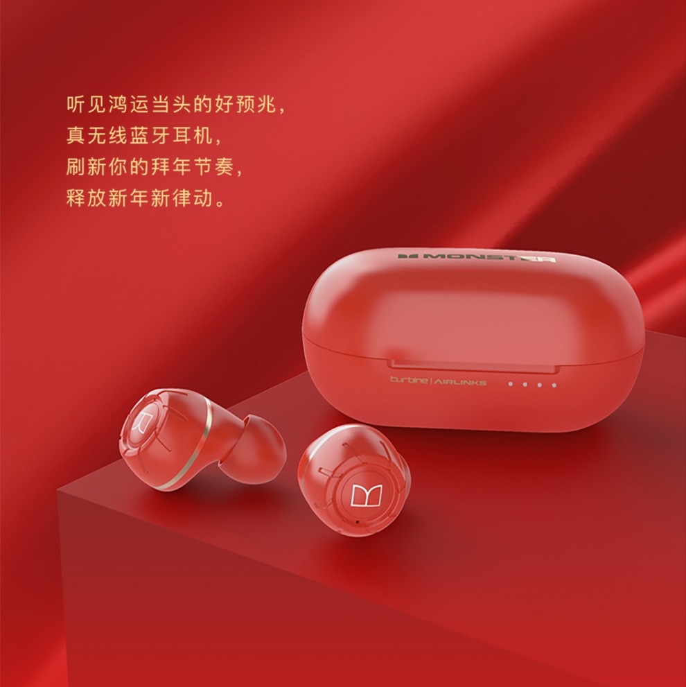 魔声(Monster) Turbine Airlinks 涡轮真无线蓝耳机牙重低音防水汗降噪运动耳机 鼠年限定红