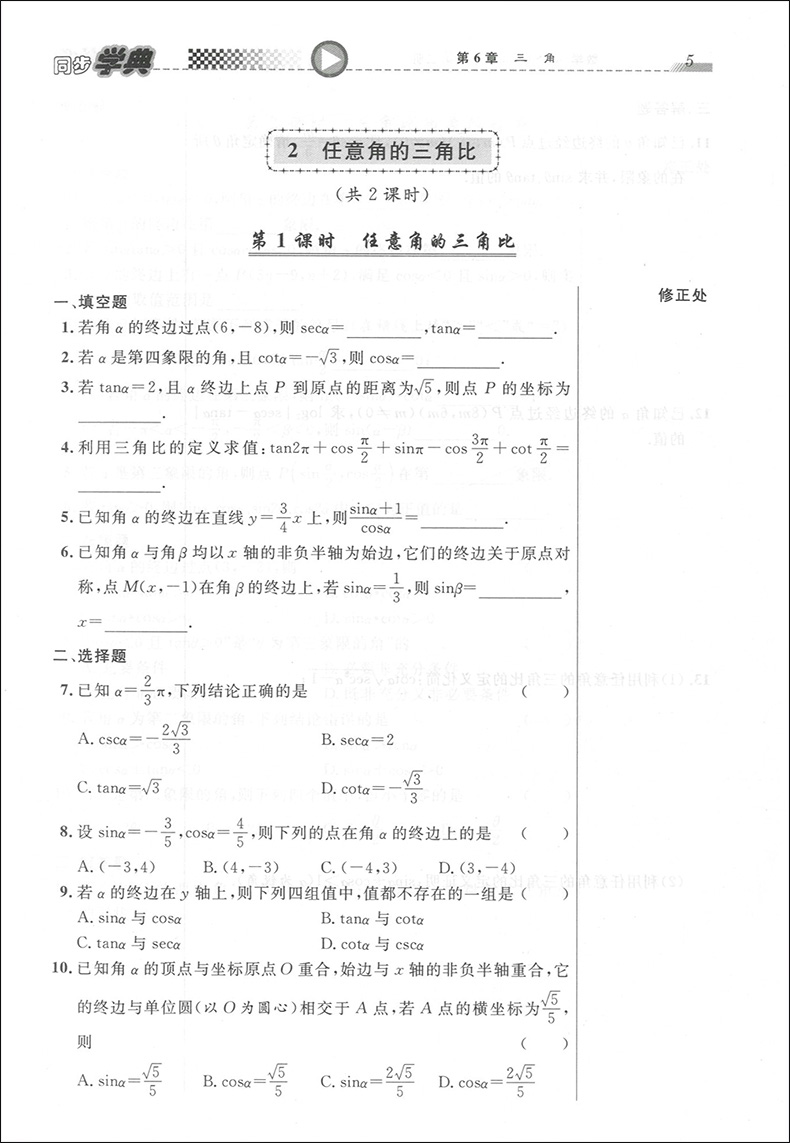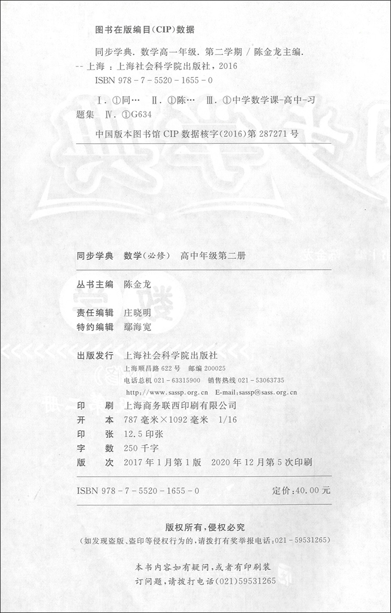同步学典 数学 高中年级第二册 高1年级/高一年级(下册)第二学期 050 数学课习题集 上海社会科学院出版社