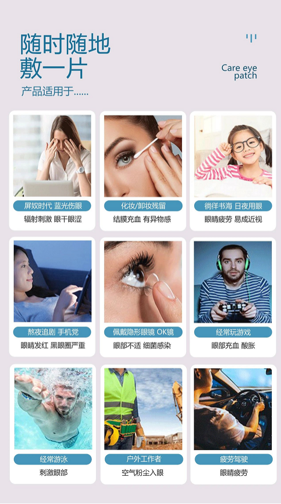 1.眼贴无激素 无副作用,中草药成分有效缓解眼睛疲劳它通过眼部的穴位让药物渗入眼睛20分钟时间像按摩眼部一样的待遇