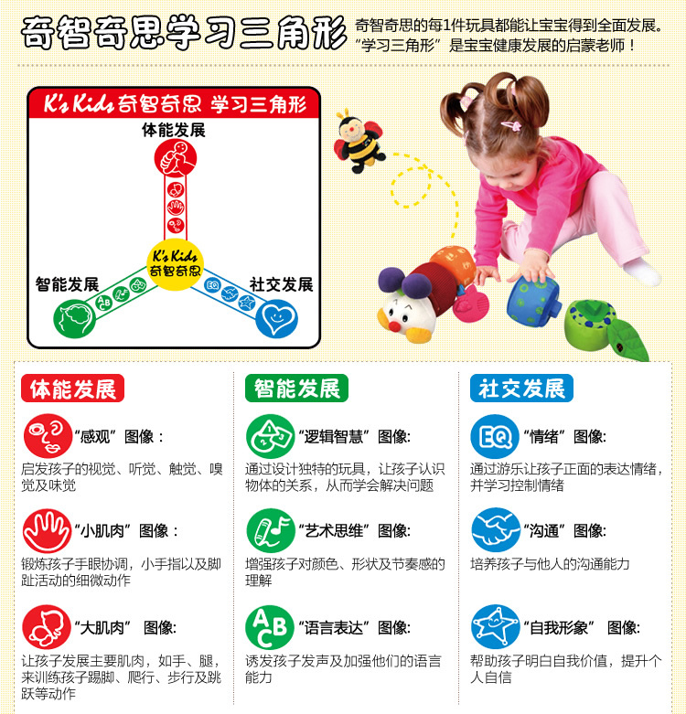 kidsland凯知乐于2001年7月份正式成立于广州,通过敏锐的市场洞察,与全球各大玩具品牌合作不断推陈出新。始终坚持为消费者提供高品质的玩具,保障每一个消费者在使用玩具时的体验和感受。