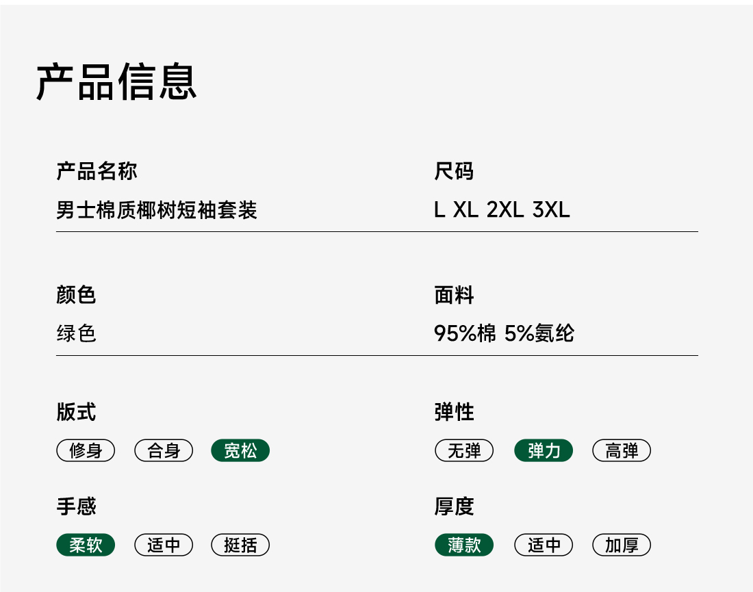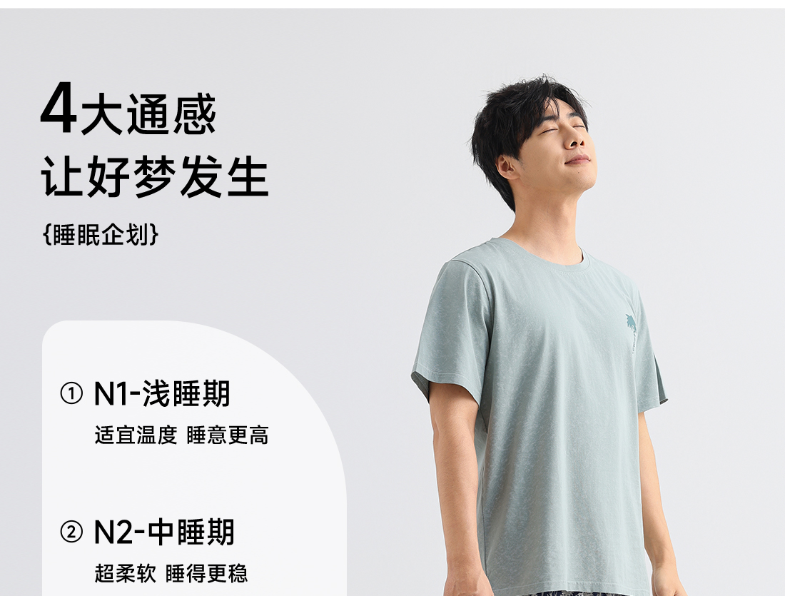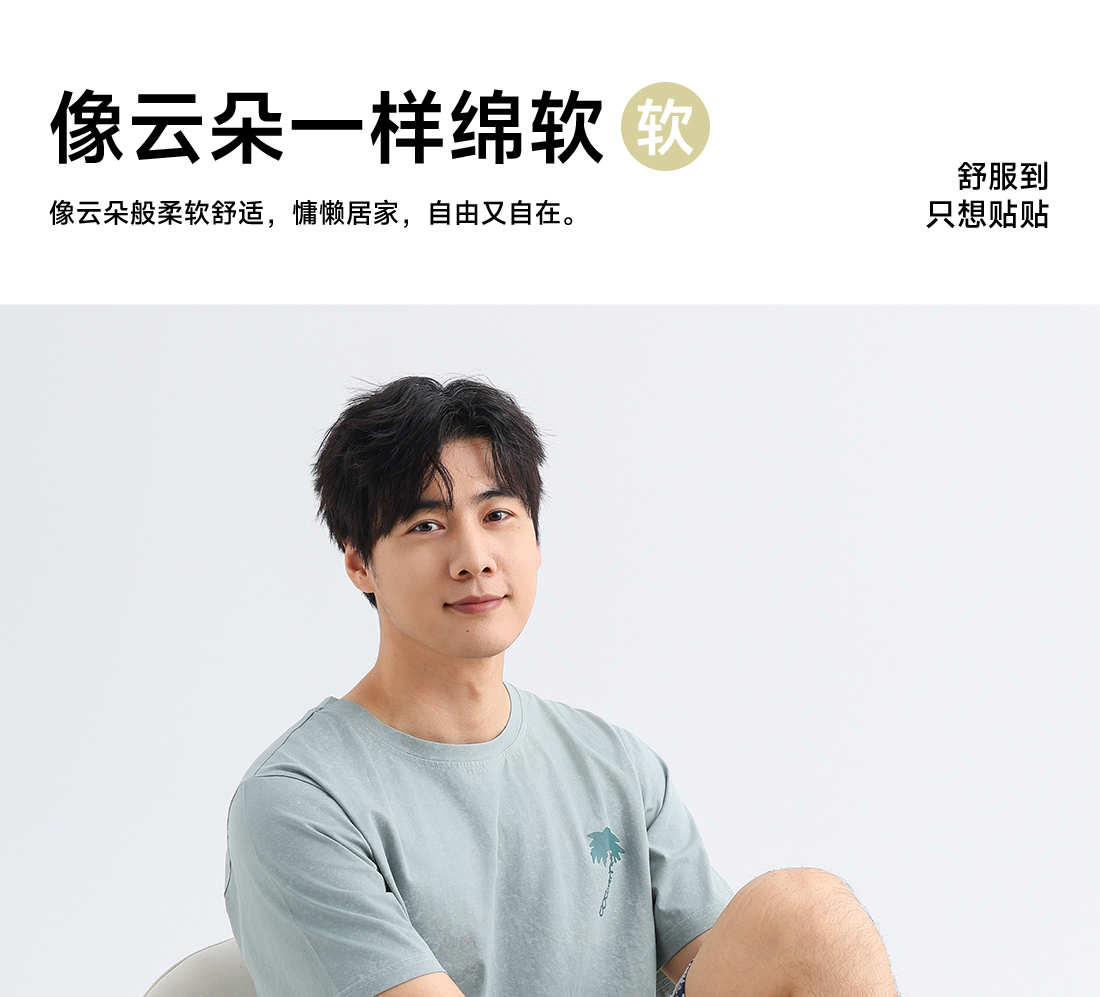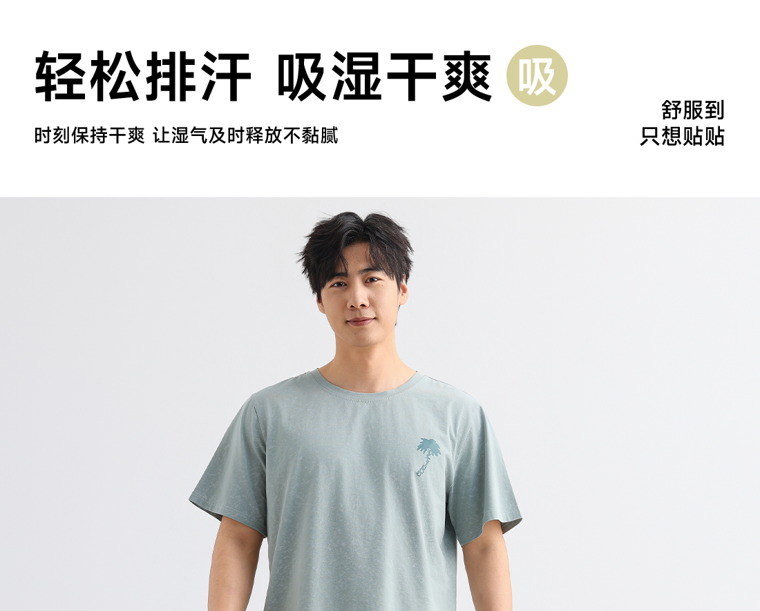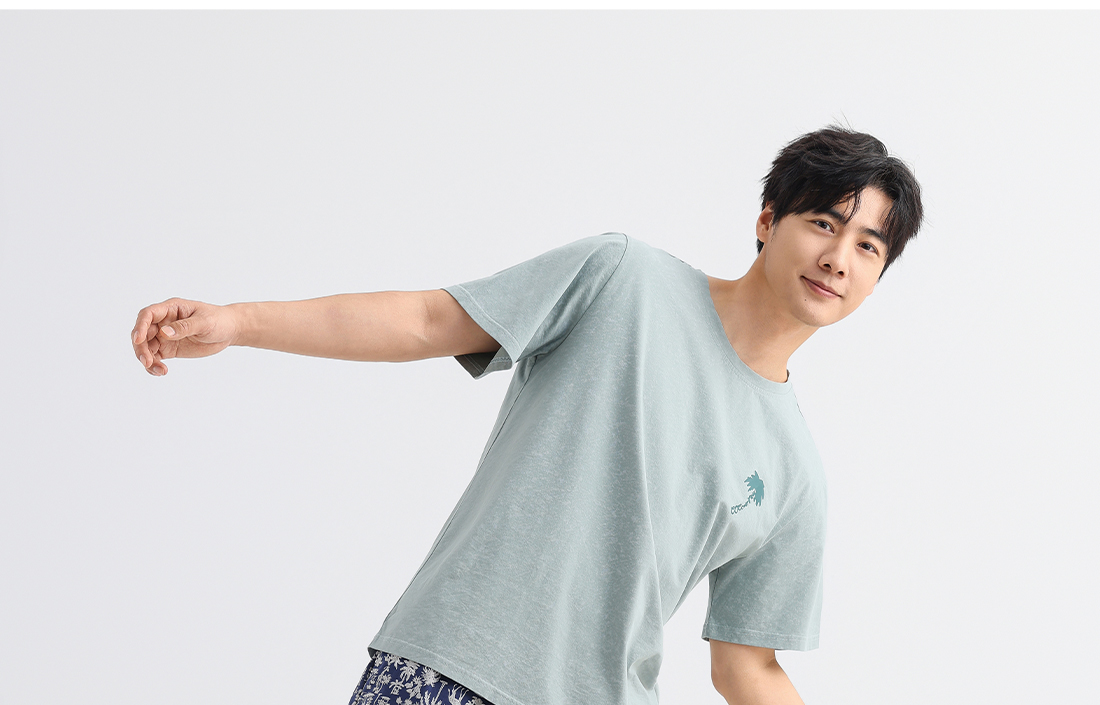 美季美优男士棉质椰树短袖套装
