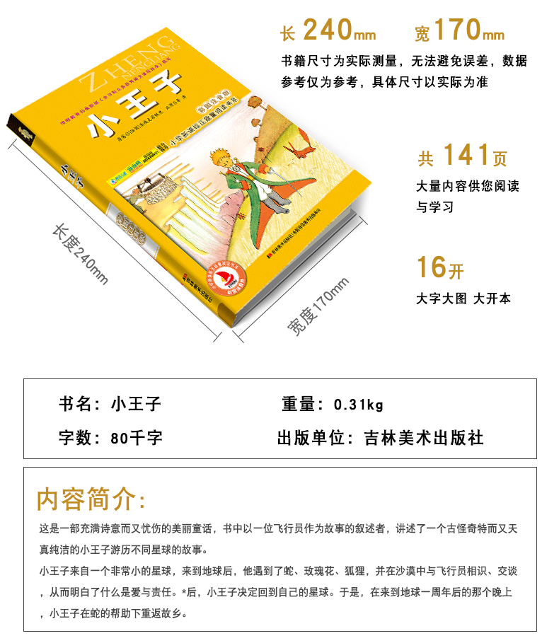 小王子(彩图注音版)儿童文学 6-7-8-9岁儿童课外书小学生一年级读故事书二年三年级课外读物书籍正能量阅读书系班主任推荐正版