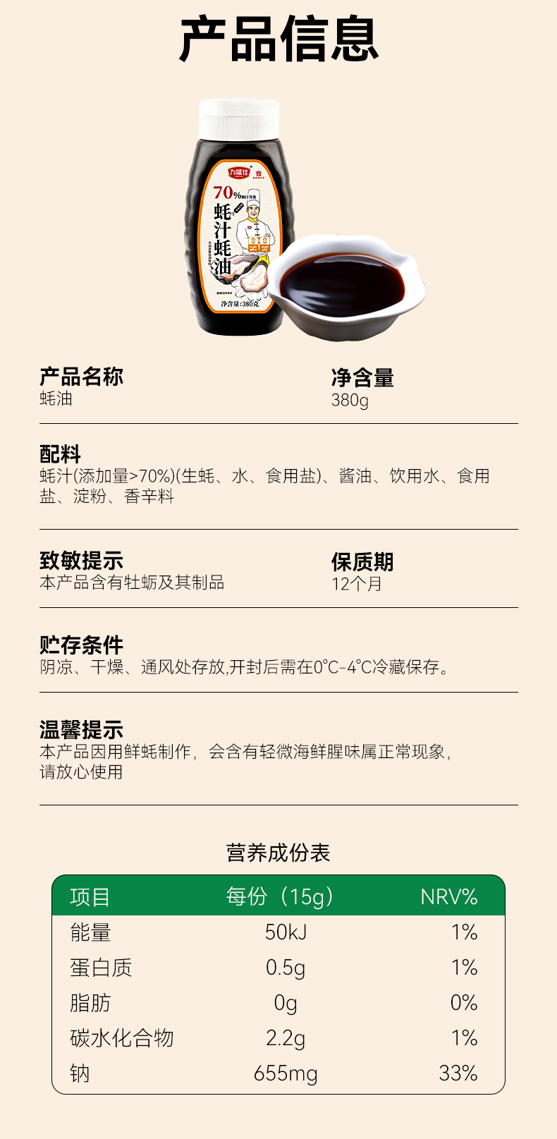 70%蚝汁蚝油388g生蚝耗鲜熬0添加剂旗舰店挤压式挤挤瓶小瓶装提鲜