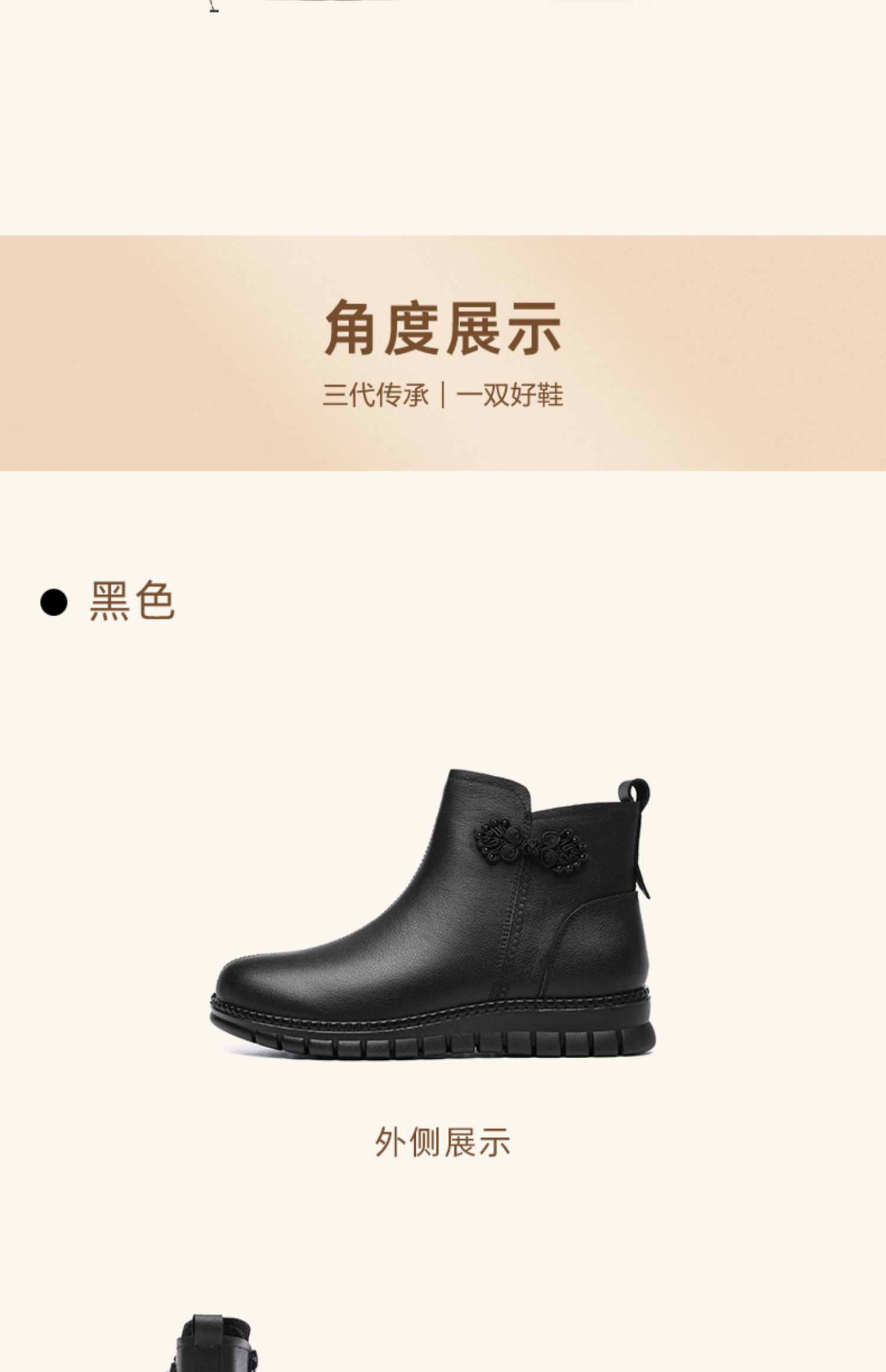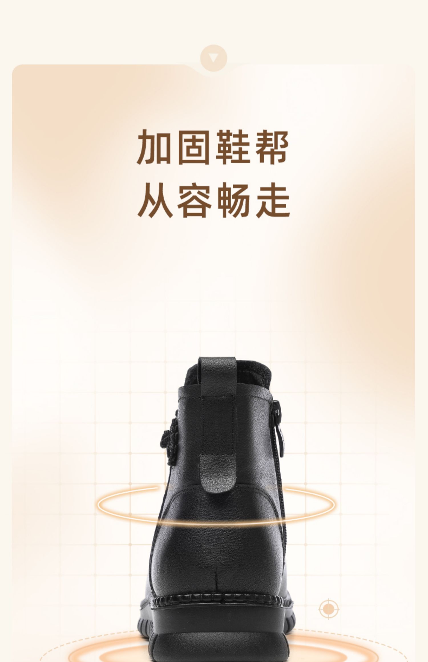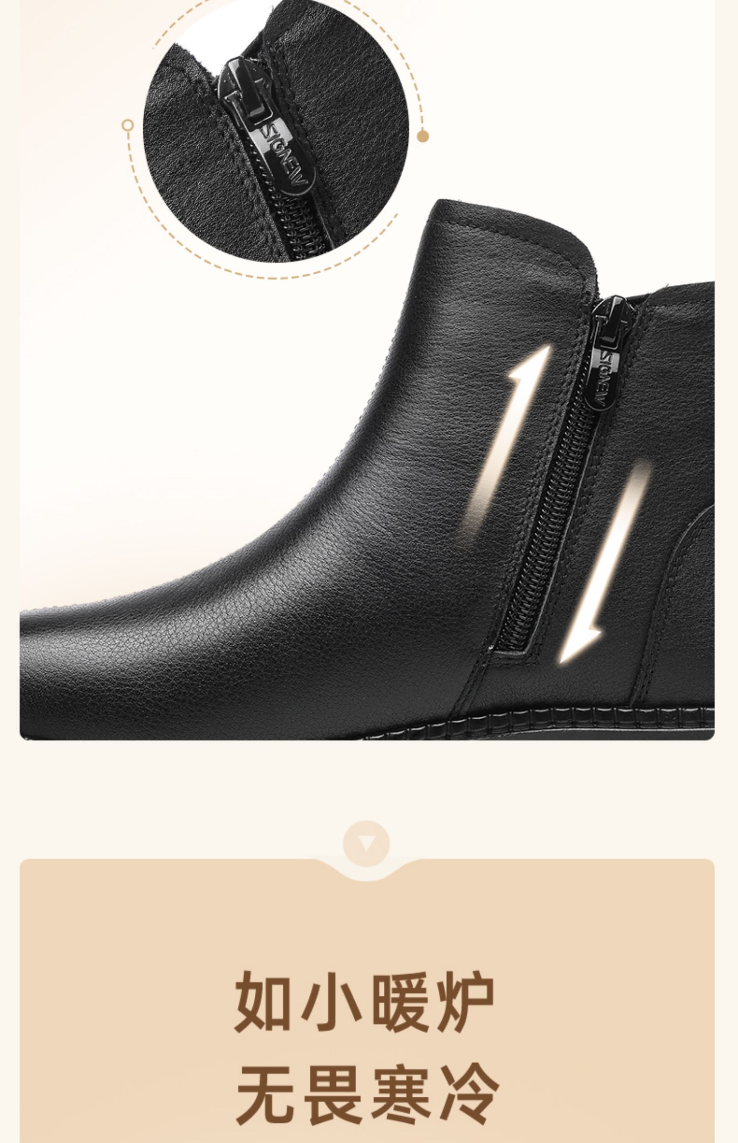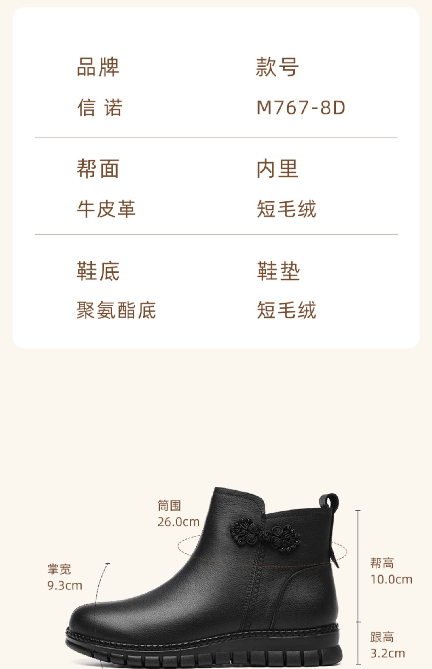 信诺舒适厚底短靴女中老年妈妈鞋加绒棉鞋2024新款冬季真皮女靴子M767-8D