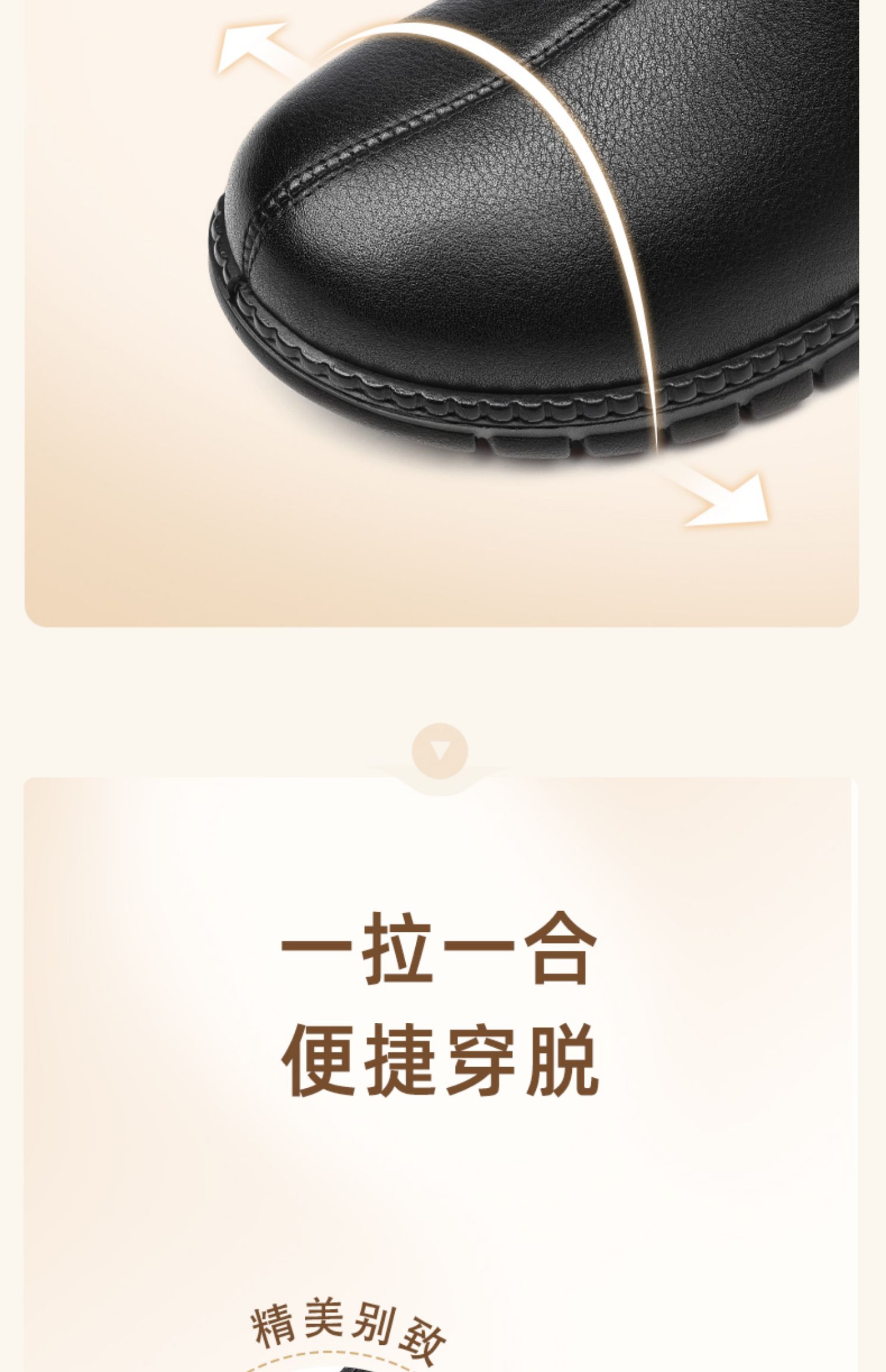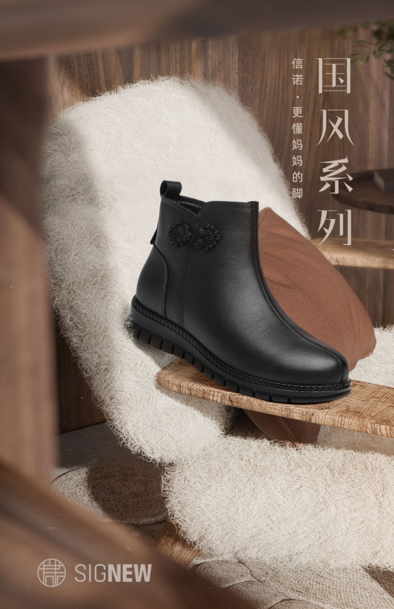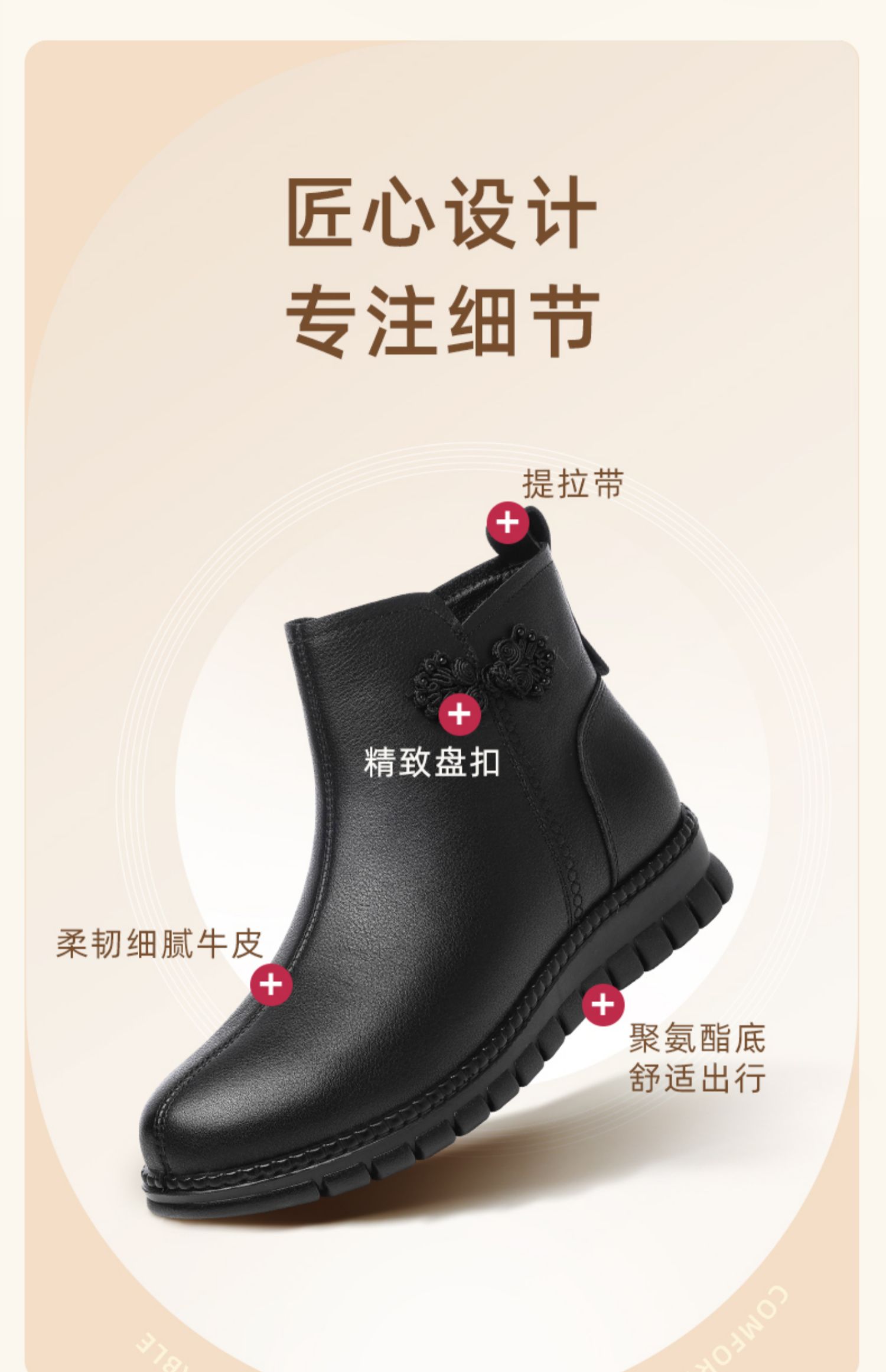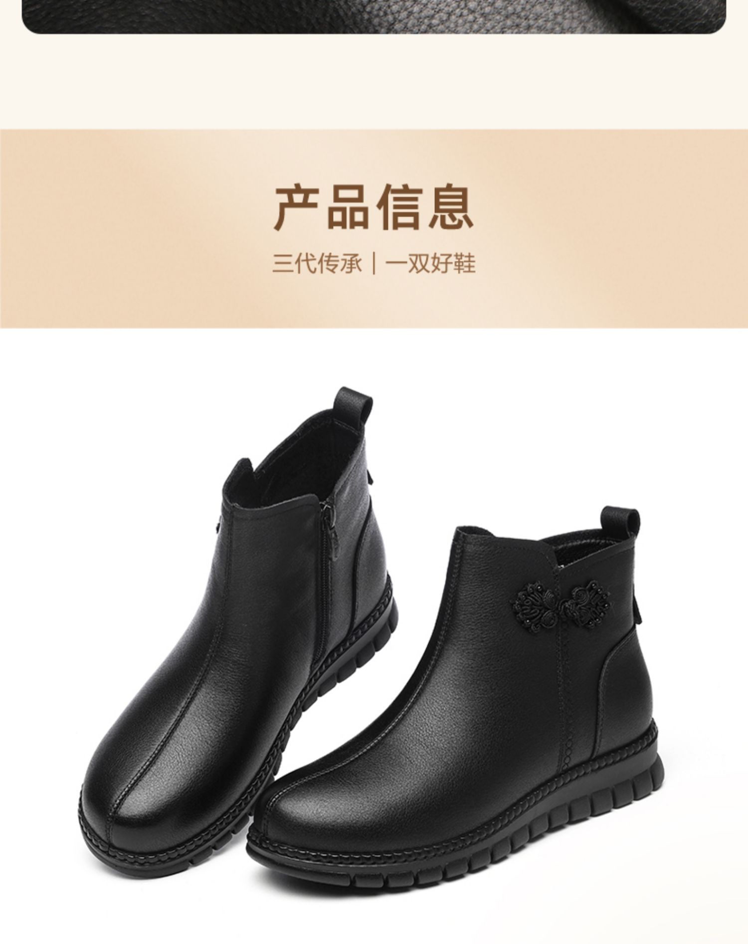 信诺舒适厚底短靴女中老年妈妈鞋加绒棉鞋2024新款冬季真皮女靴子M767-8D