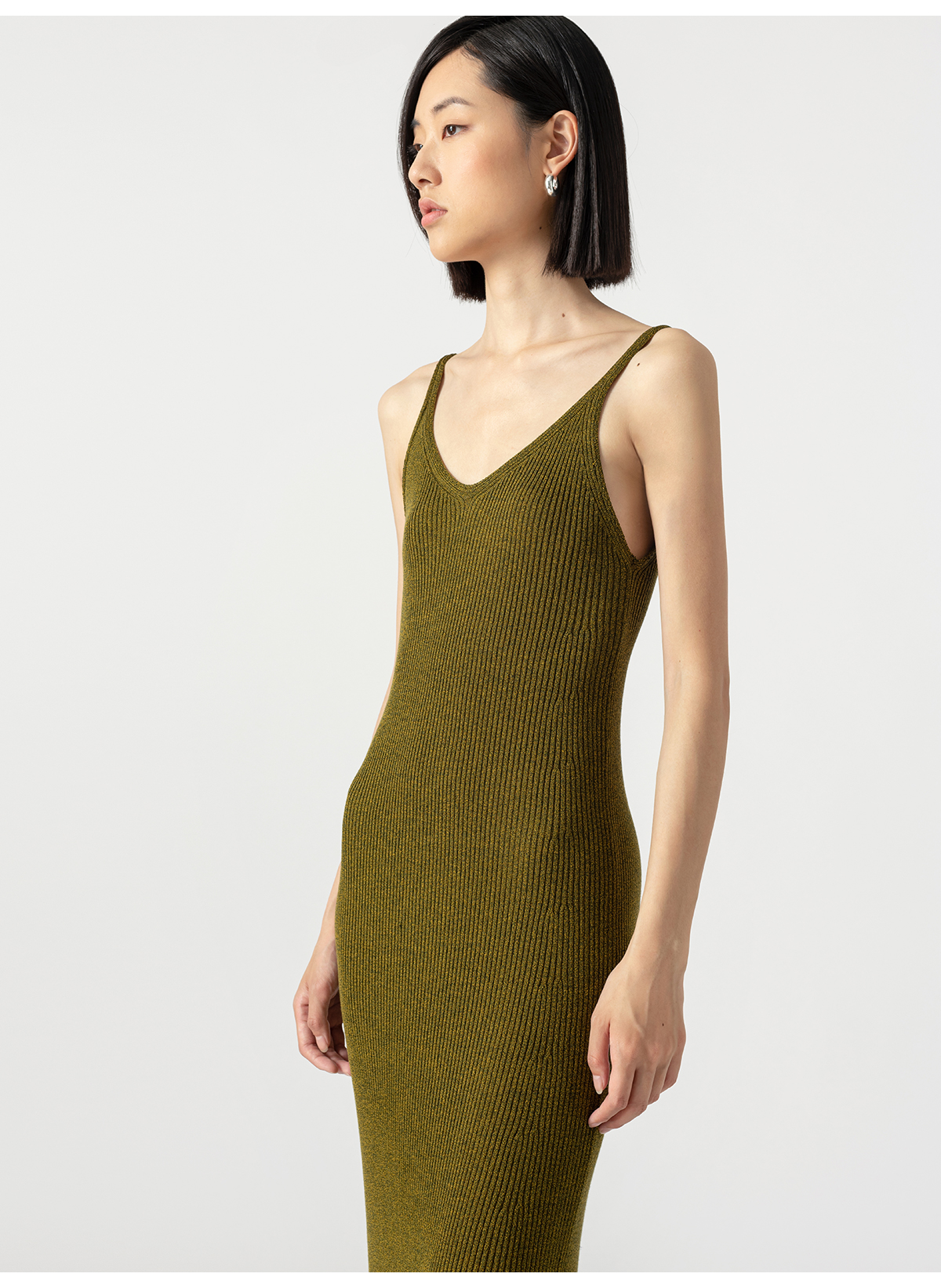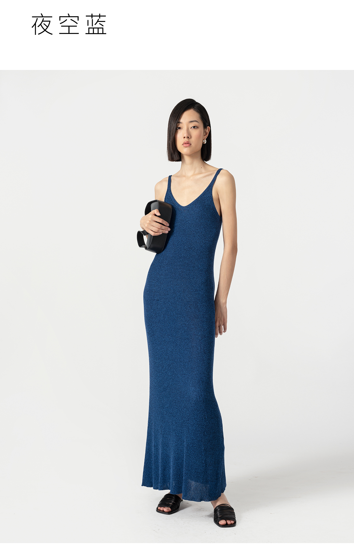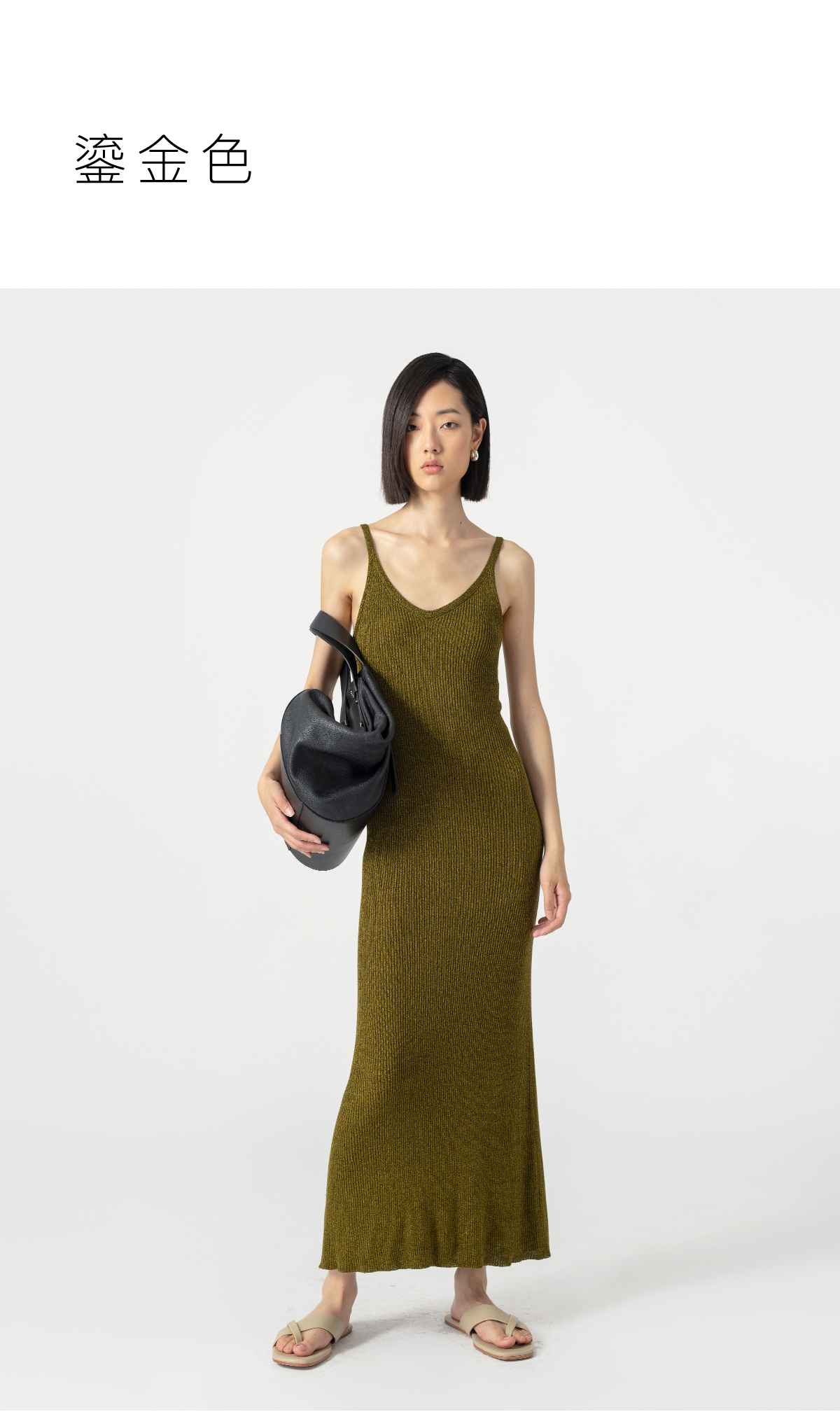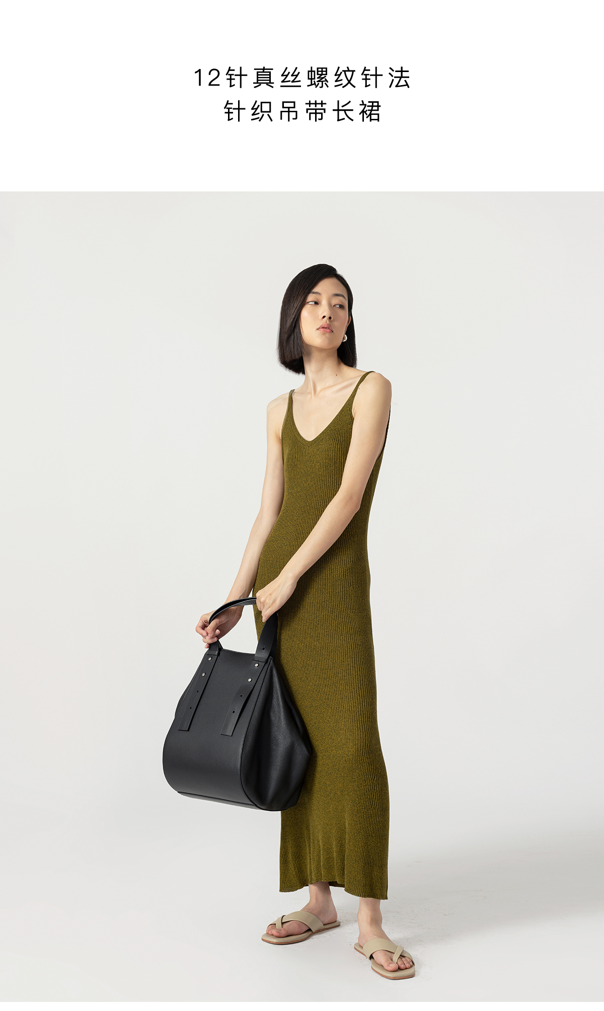 322工房经典再造真丝螺纹修身针织吊带长裙2023夏款V领连衣裙B068