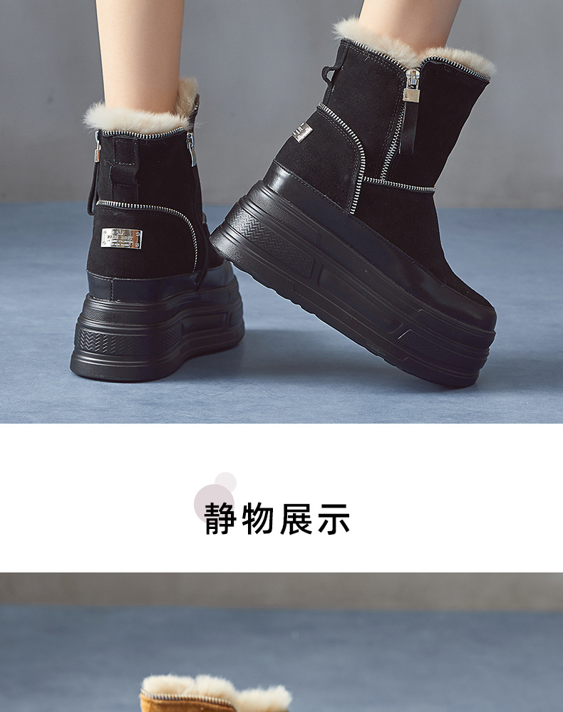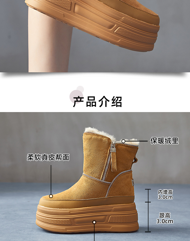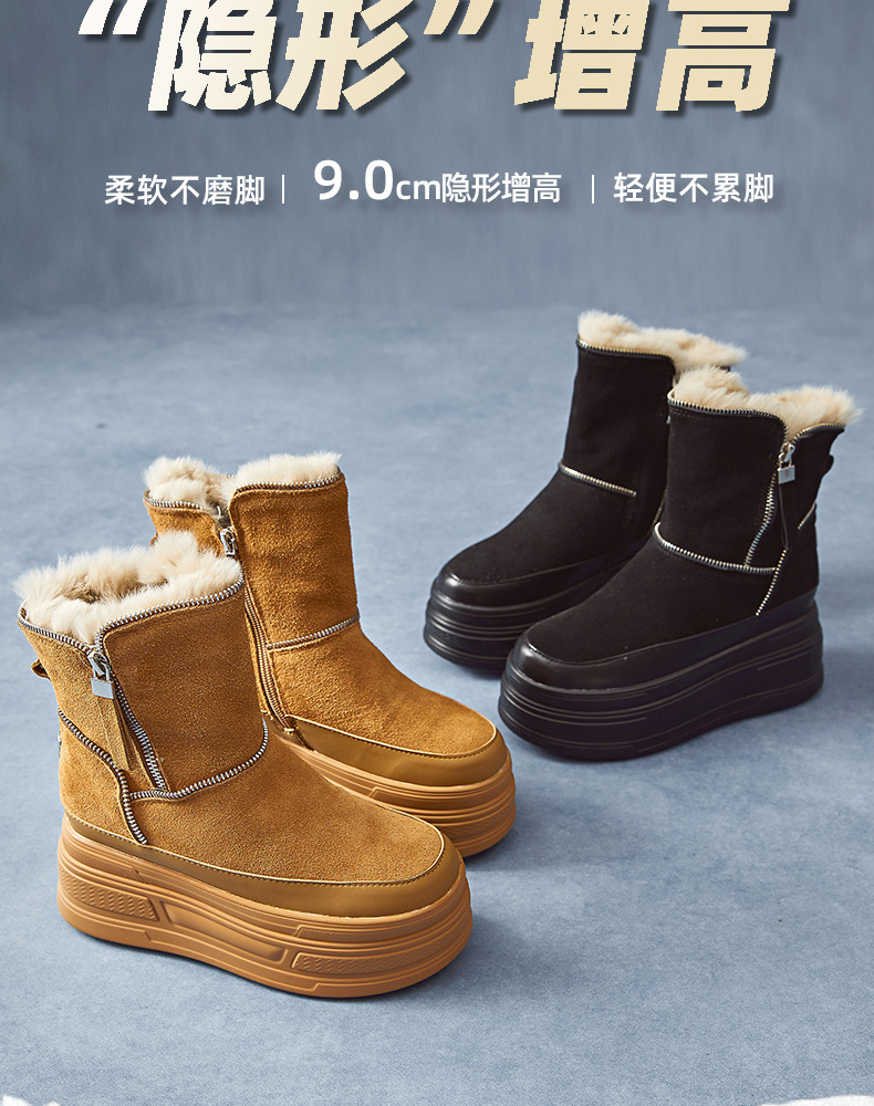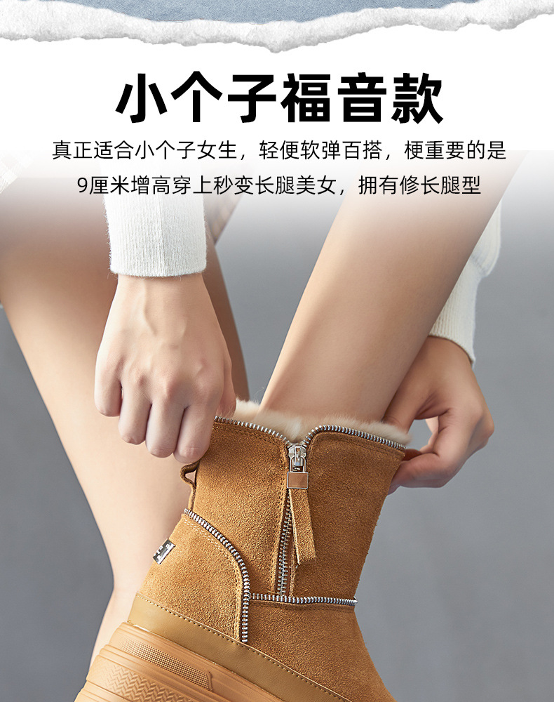 冬季女款加毛雪地靴新款加厚棉鞋厚底保暖内增高防寒短靴