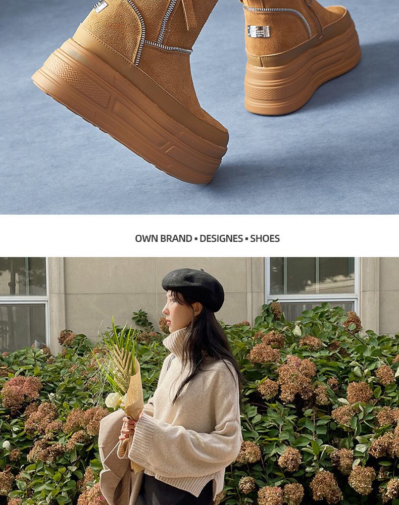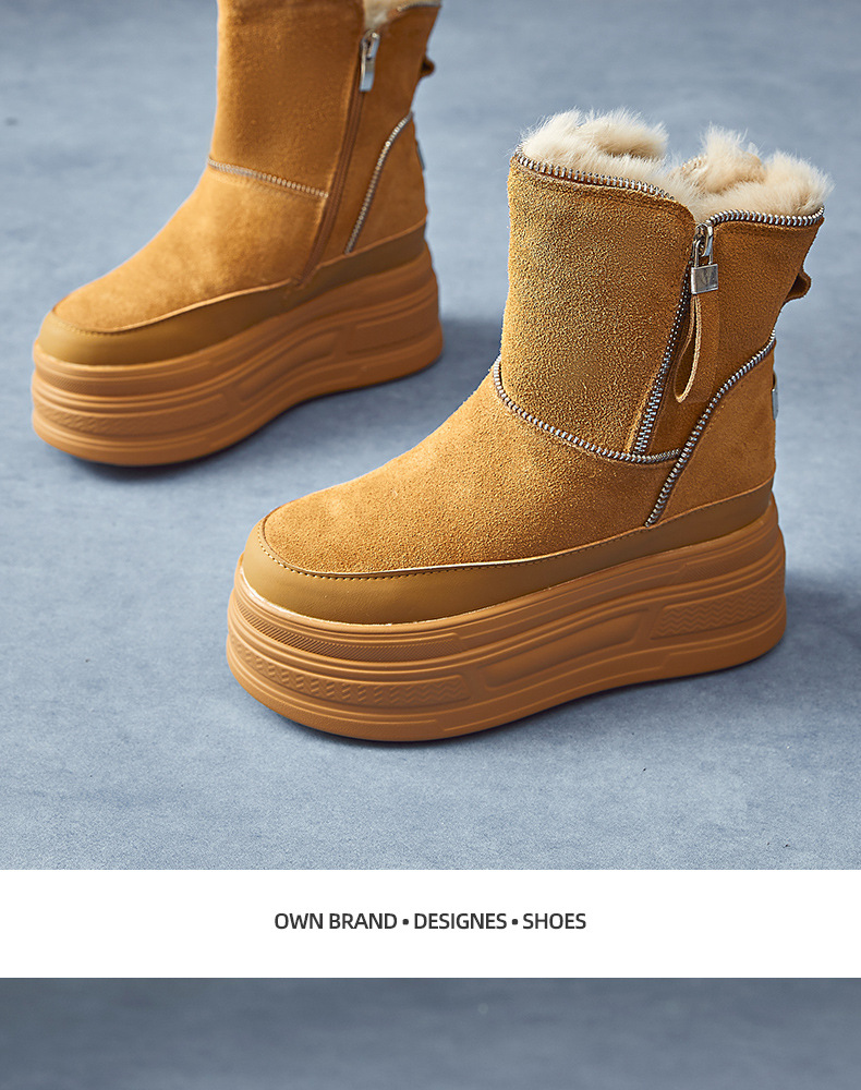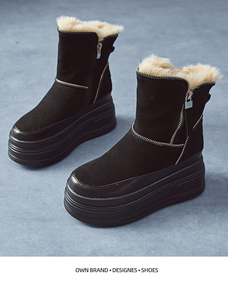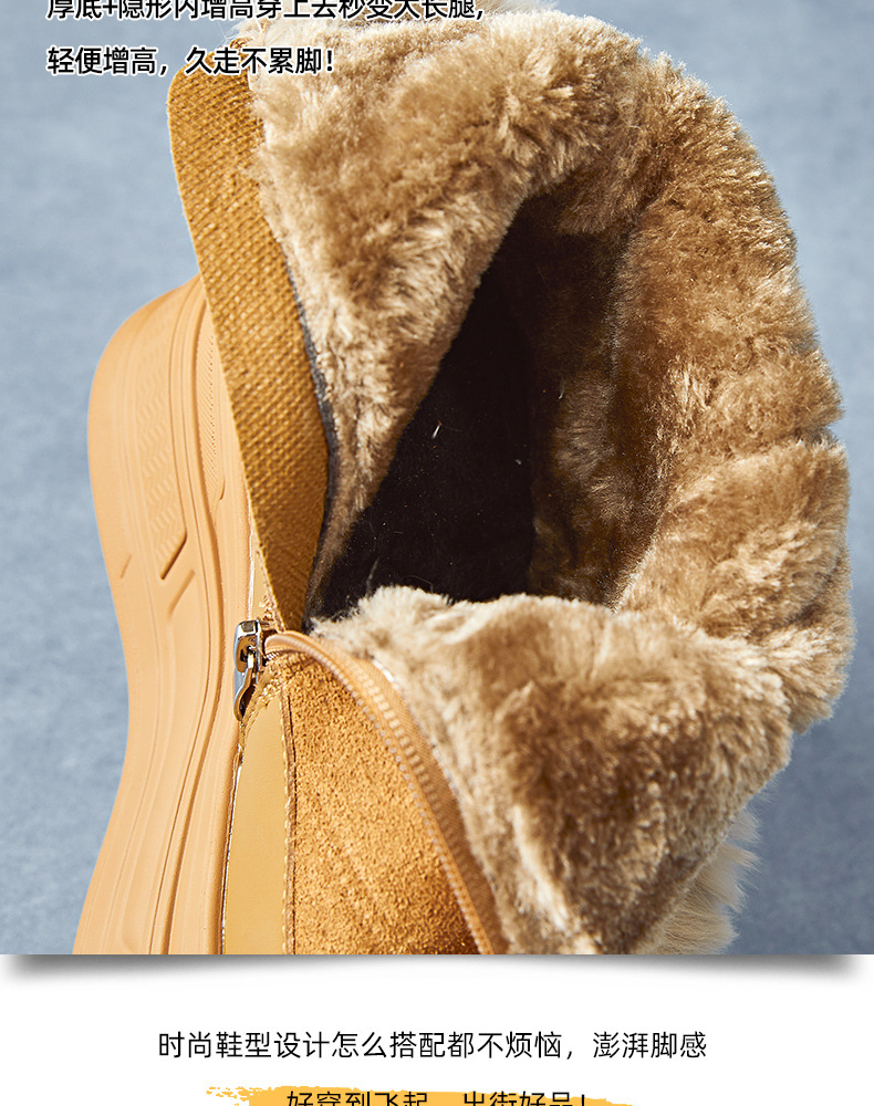 冬季女款加毛雪地靴新款加厚棉鞋厚底保暖内增高防寒短靴