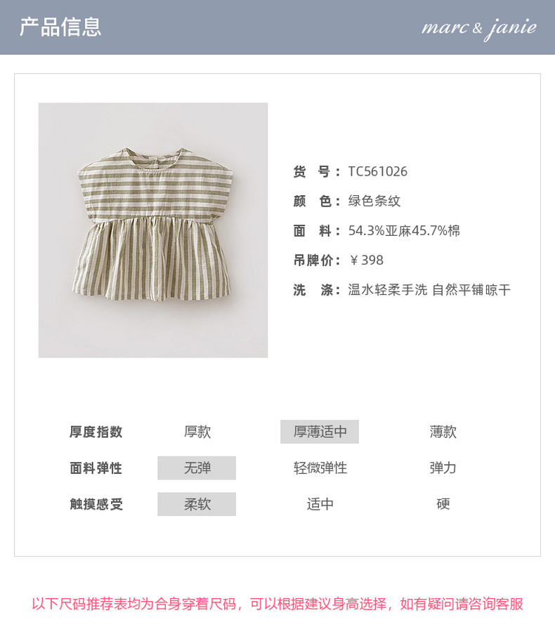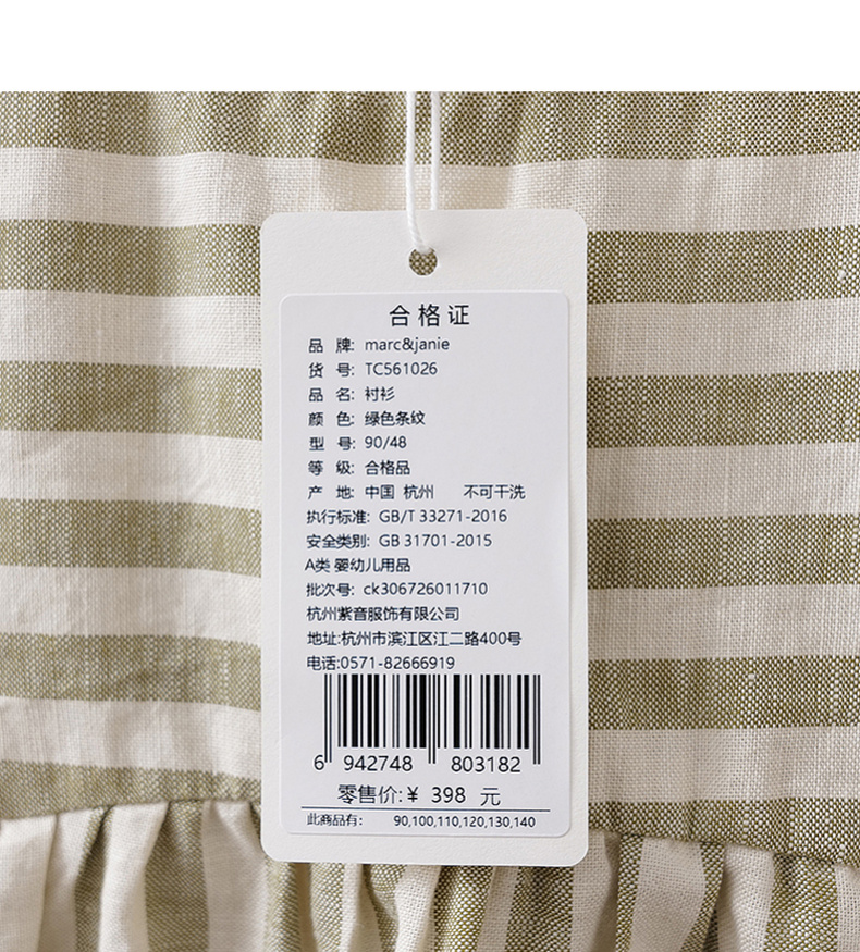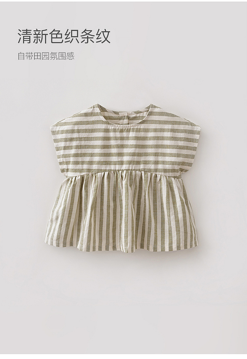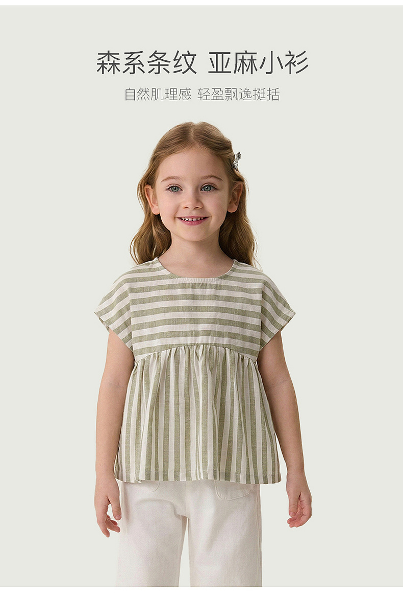 马克珍妮森系条纹女童亚麻小衫2026年夏装新款561026