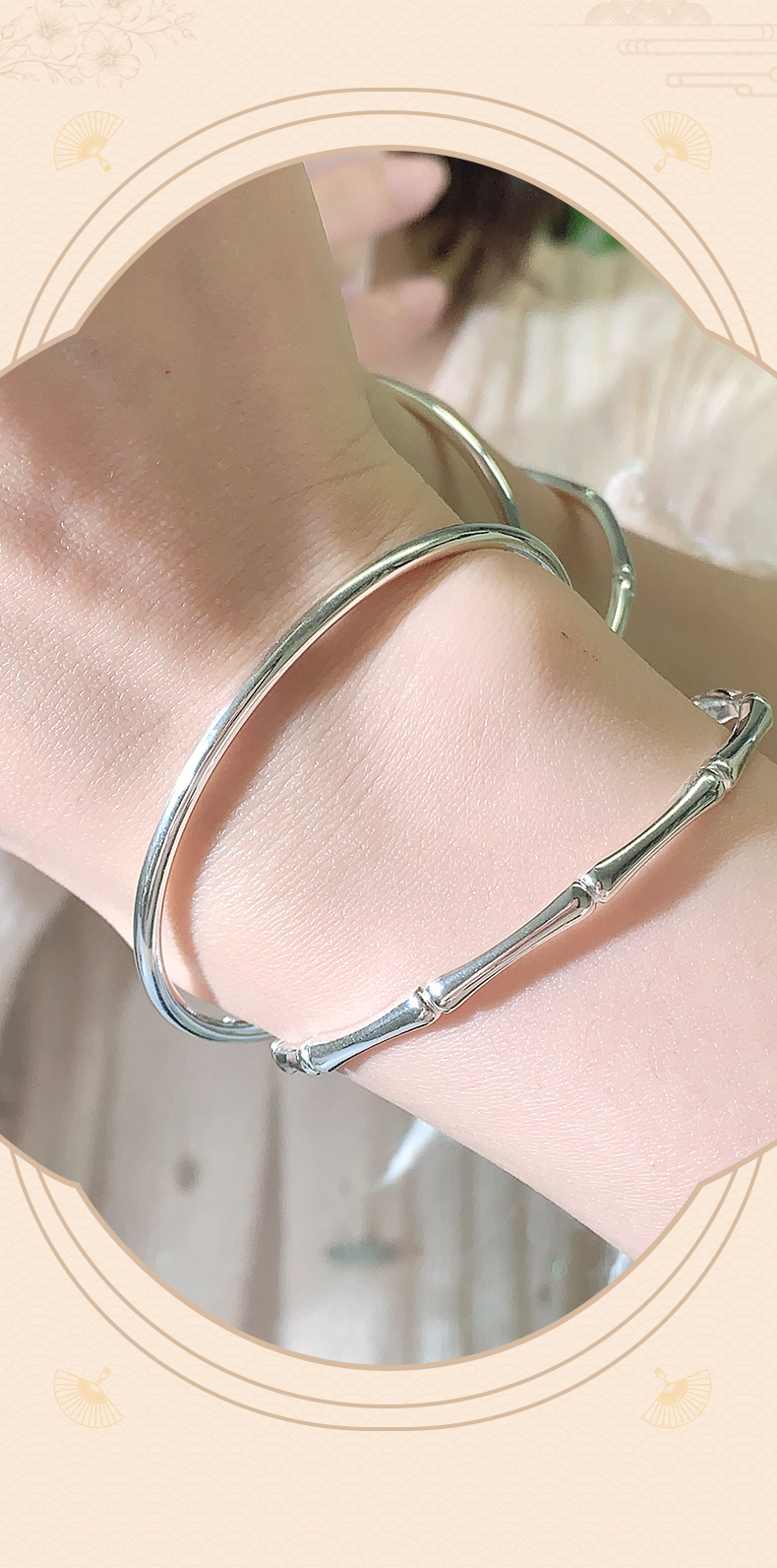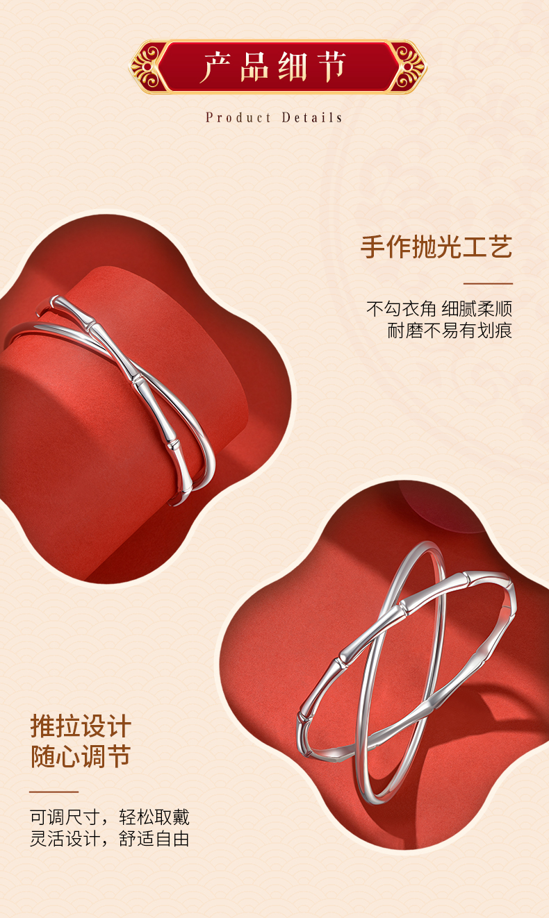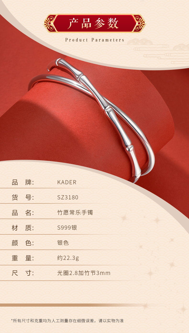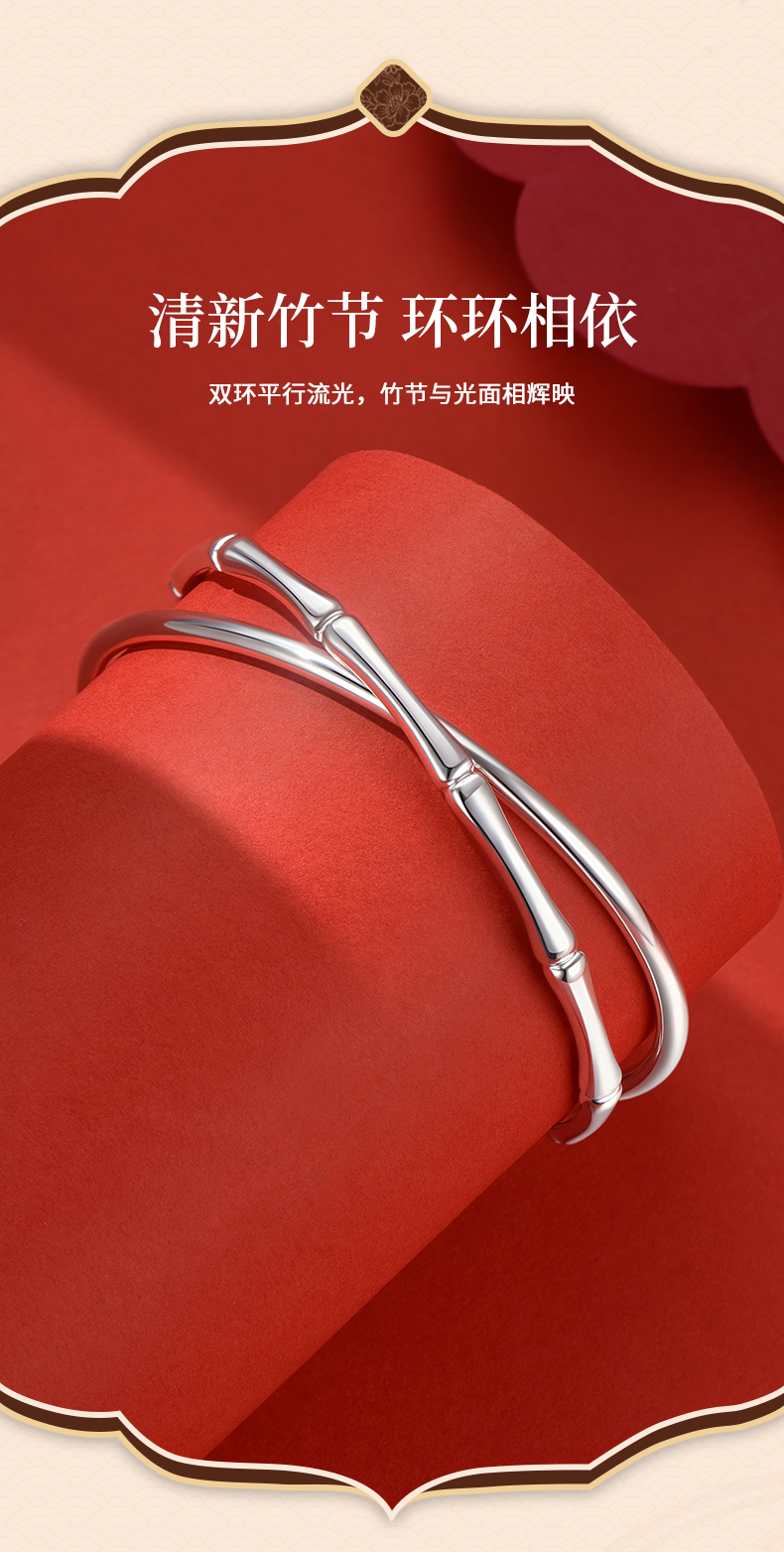 【999足银】卡蒂罗/KADER 竹愿常乐双环手镯 新中式大克重节节高升日常通勤光面素圈 简约百搭轻奢#好运配饰