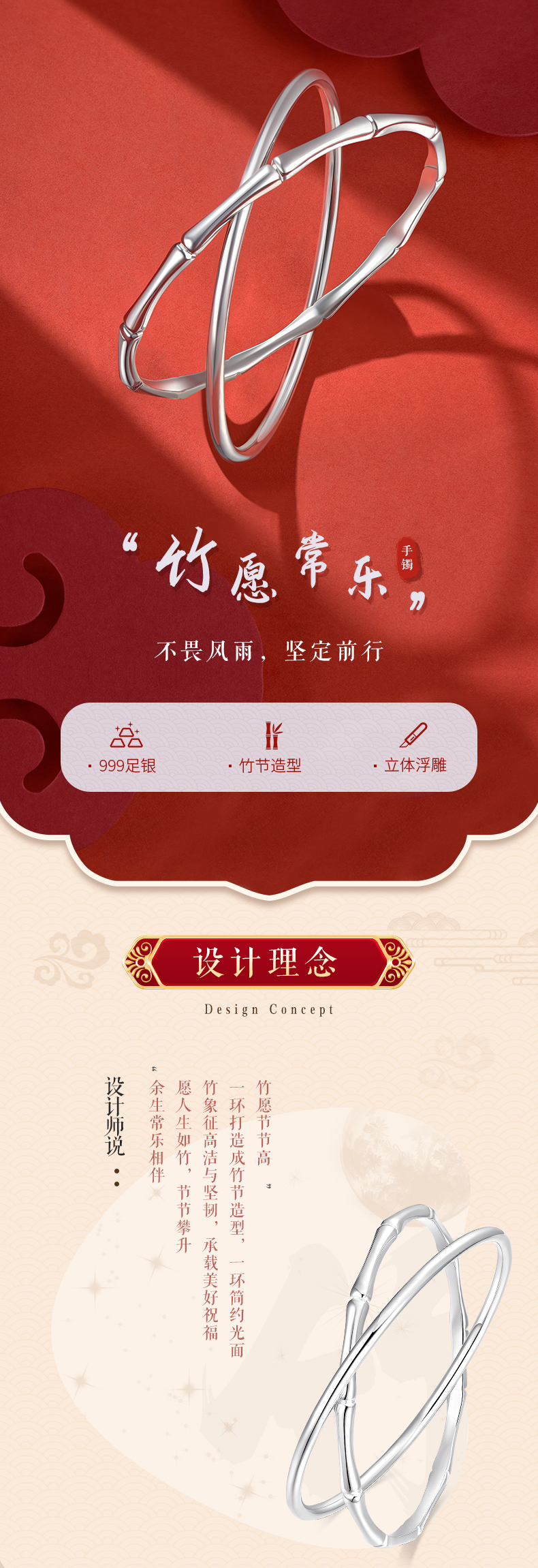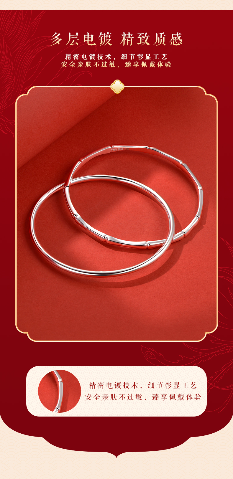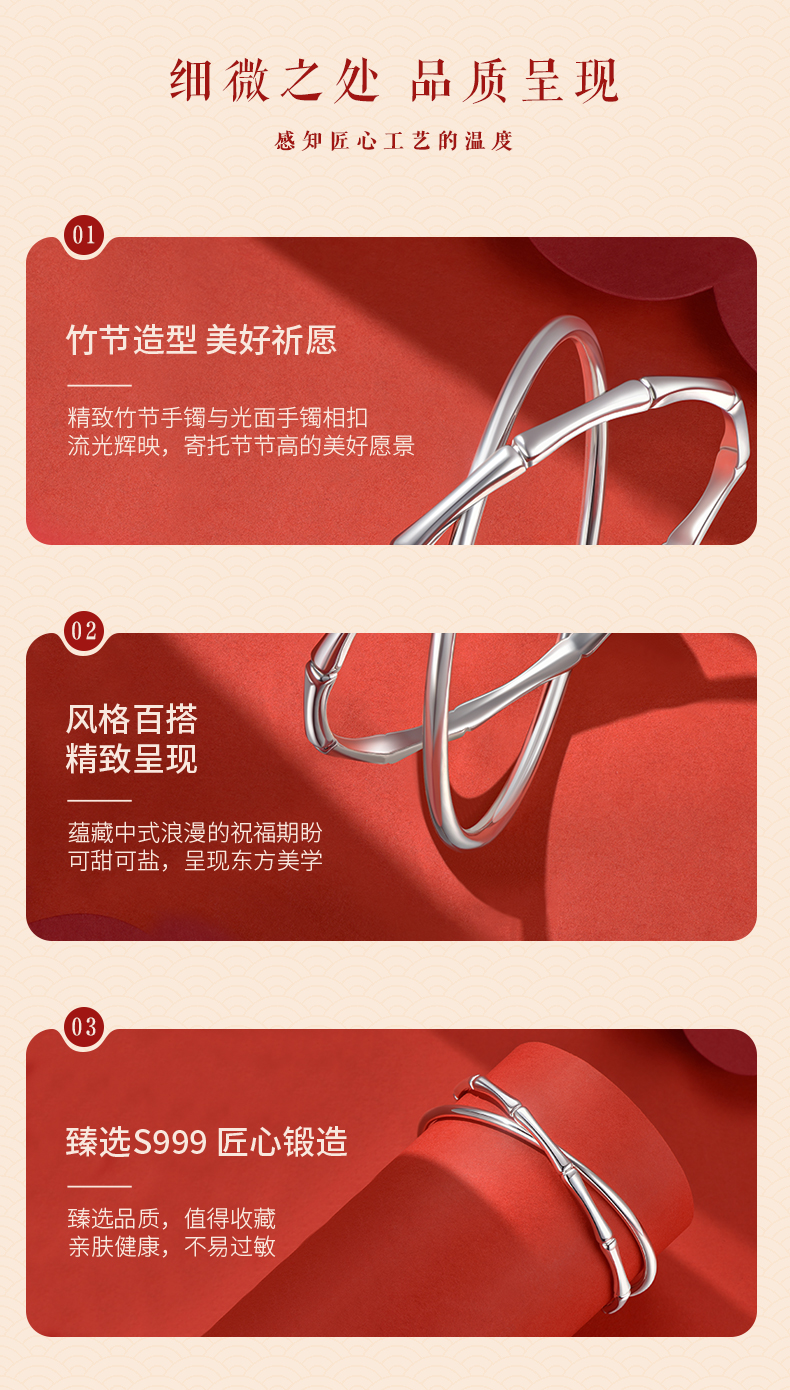 【999足银】卡蒂罗/KADER 竹愿常乐双环手镯 新中式大克重节节高升日常通勤光面素圈 简约百搭轻奢#好运配饰