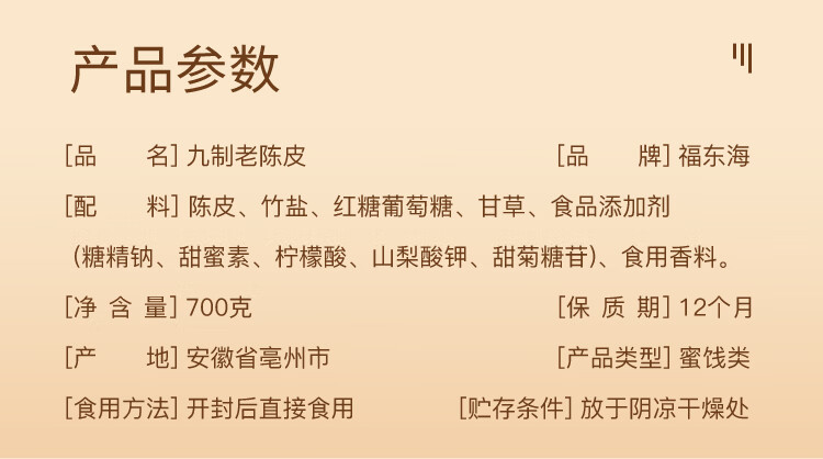 【分仓直发包邮】福东海九制老陈皮(蜜饯类)700克/瓶