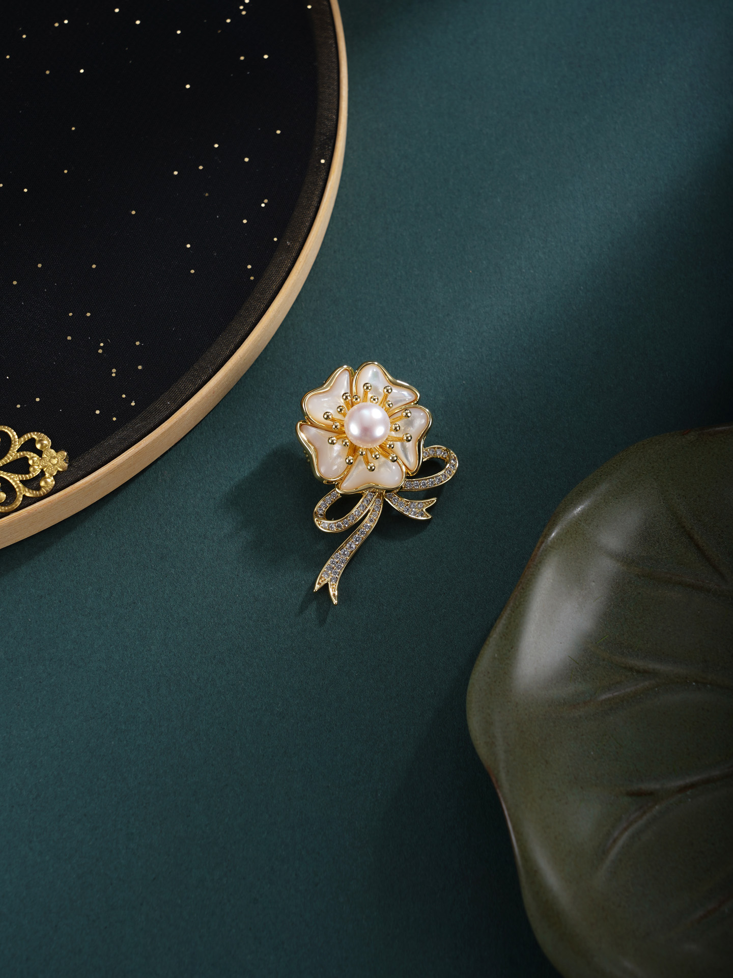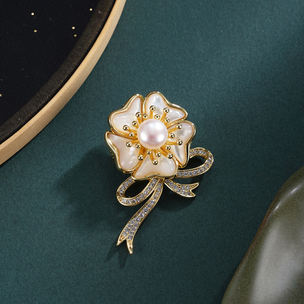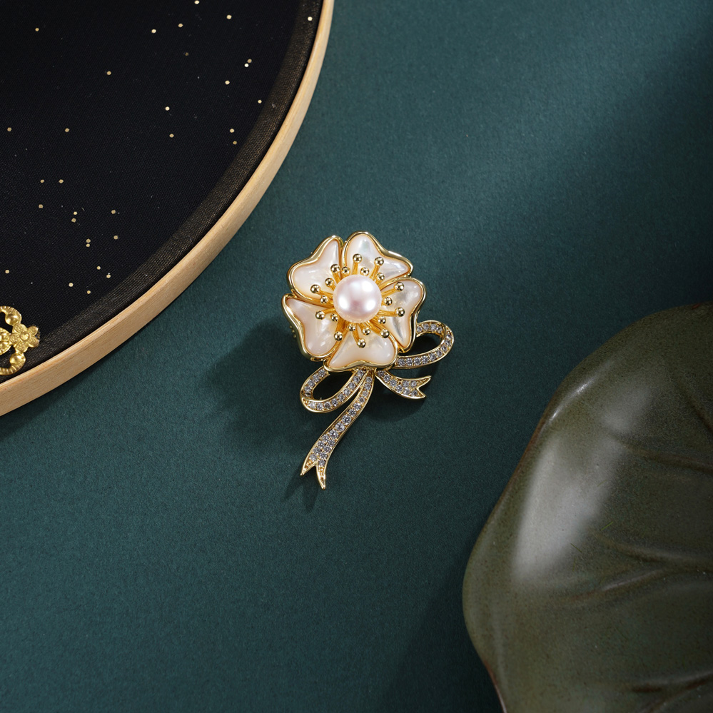 子佩集【花缀锦程】珍珠惜王妃胸针【XXXZ267】五瓣花丝带镀金2602