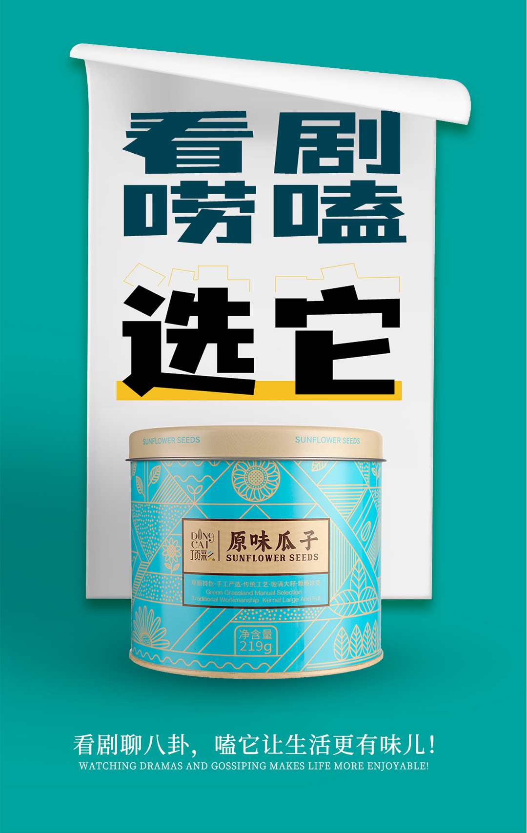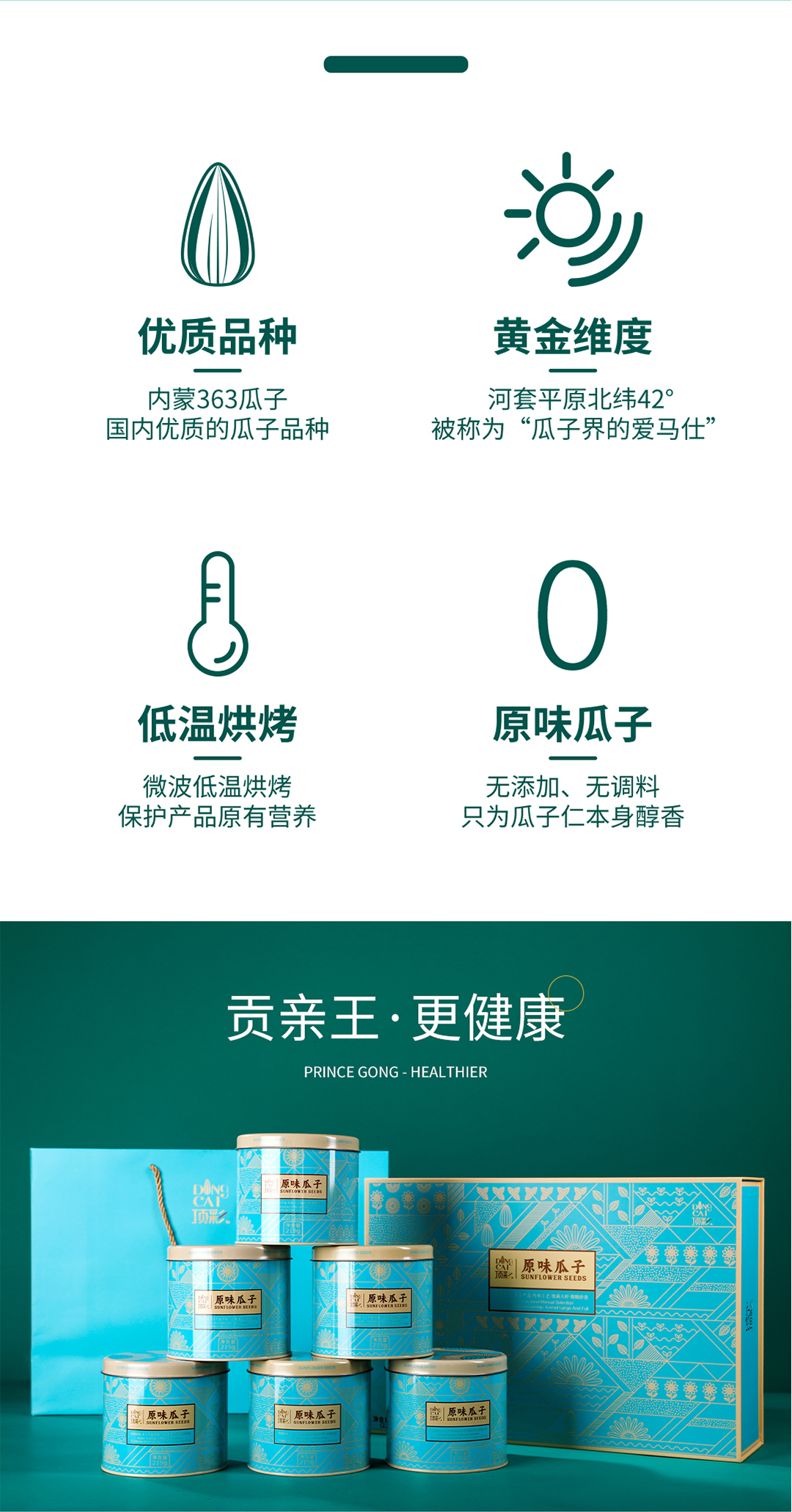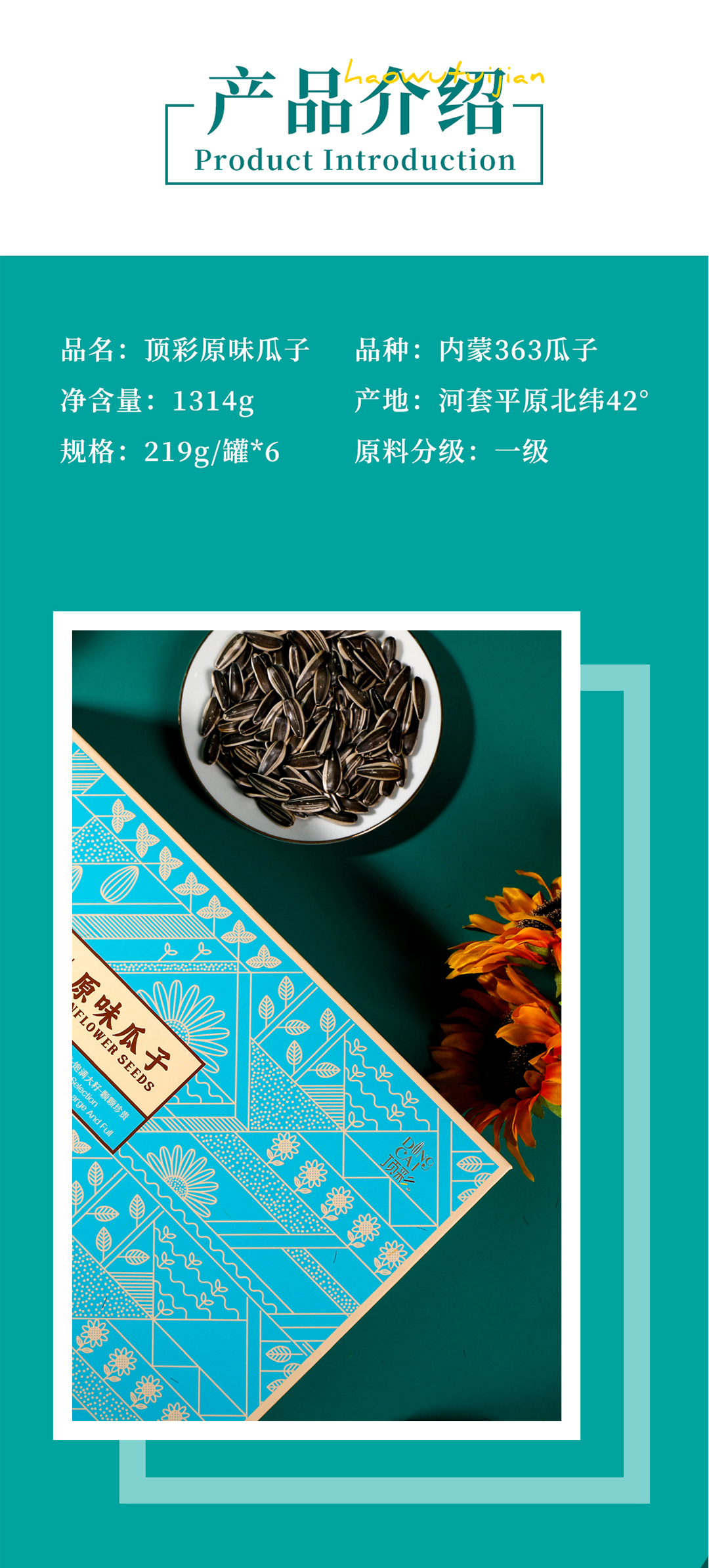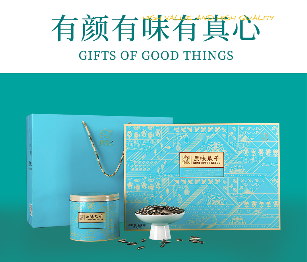 顶彩原味瓜子1314g一级内蒙顶尖瓜子(1盒6罐装每罐219克)