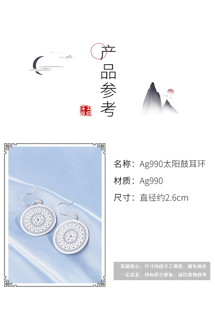 子佩集S990银太阳鼓耳环【WBEH002】花丝2004204