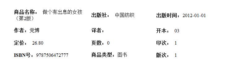 《做个有出息的女孩:女孩子不能不读的81个励志故事(第2版)》的选题和编写围绕紧紧把握读者的需求和内容的可读性这两点,选题独特而实用,内容设计有趣新颖。 本书精选名人故事,让女孩子们在不平凡的故事旅行中,感受纯真、勇敢、善良、坚强、乐观、自信……因为这些,是所有女孩子的梦想,也是每一位父母的期望,只有梦想,才可以让幼小的记忆感到丰富,让成长的旅程变得斑斓。这些与众不同的成功故事可以成为每个女孩子心中的榜样,指引每个女孩童年时的明灯,带领她们一起发现美,认识美,感受美,拥有美,成为一个真正的从外表到内心都美丽的公主。 望女成凤是天下父母的共同心愿,如何教育孩子从小胸怀梦想,立志成才,长大做一名成功人士呢?本书精选了81个启发女孩思考的小故事,让女孩在趣味的阅读中对照自我、反思自我、提高自我。同时,本书并不仅仅停留于讲故事,除了阐发对女孩有帮助的道理外,还通过“知识放大点”“学习成长金点子”等栏目,对小故事中涉及的知识点和与学习、兴趣相关的内容做了进一步解读,旨在开启读者的心智,激励她们从小树立远大的理想,借鉴成功者的智慧和经验,不断地磨砺自己,培养坚强的意志和顽强的毅力,把自己塑造成为国家的栋梁之才。超值套装书在这儿请点击:您不会后悔!