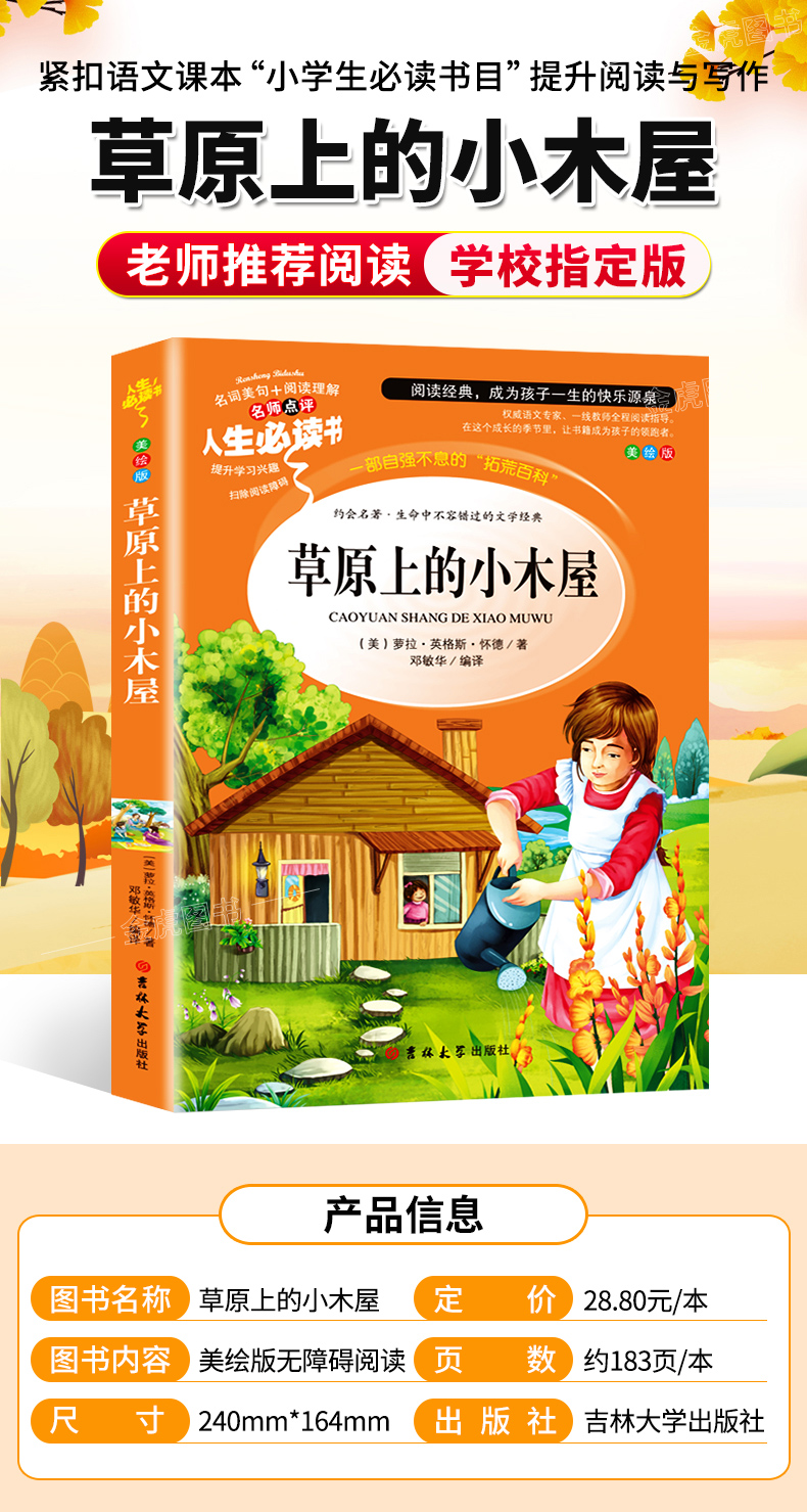 草原上的小木屋正版原著小学生三年级四年级必读课外书世界经典名著书籍山东美术出版社青少年无障碍阅读快乐读书吧