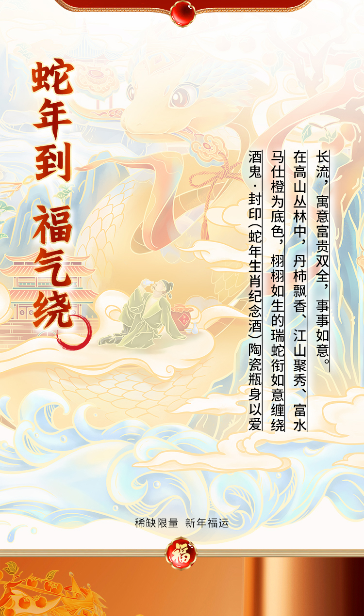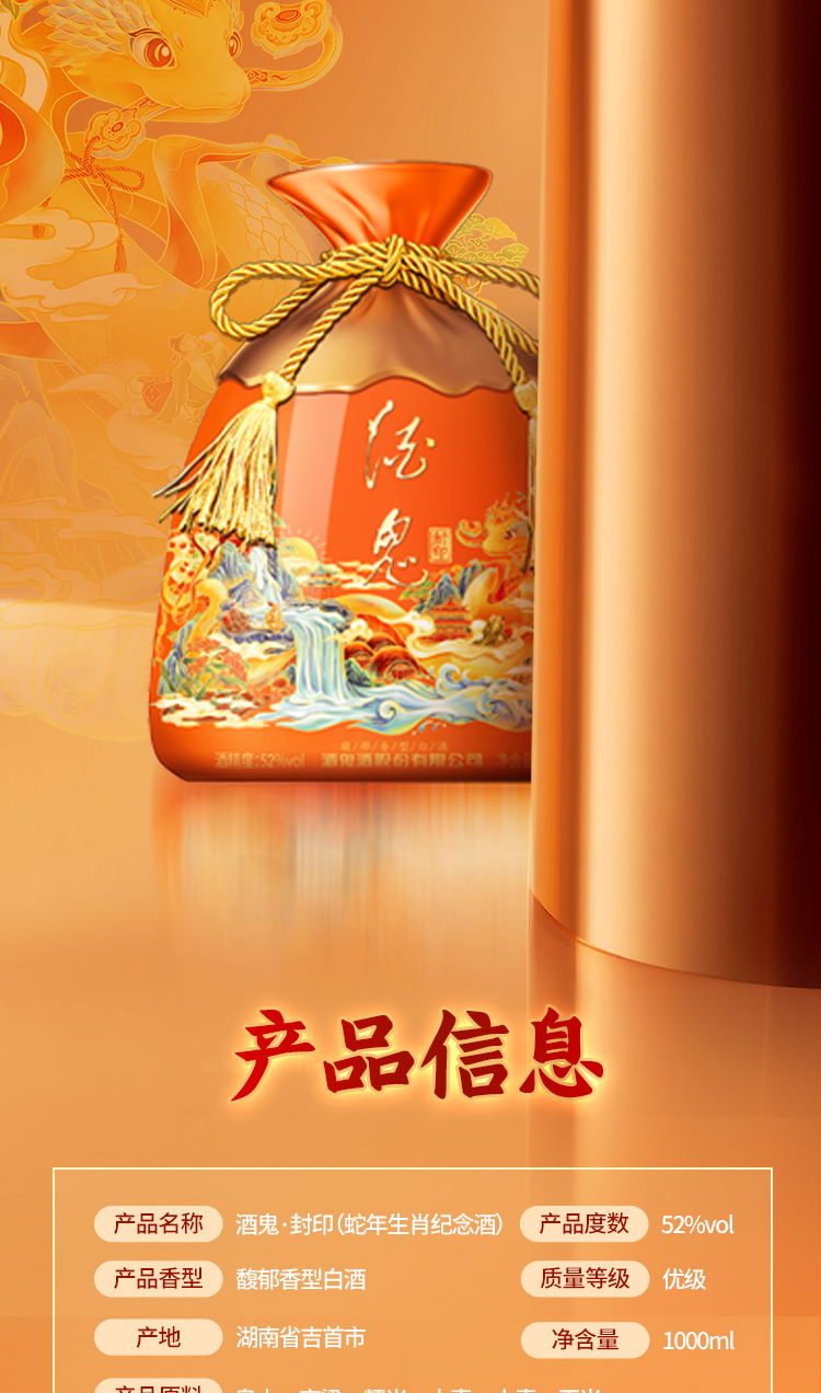 心选丨酒鬼·封印(生肖纪念酒)蛇年52度1000ml*2瓶 (赠红坛小礼盒)白酒