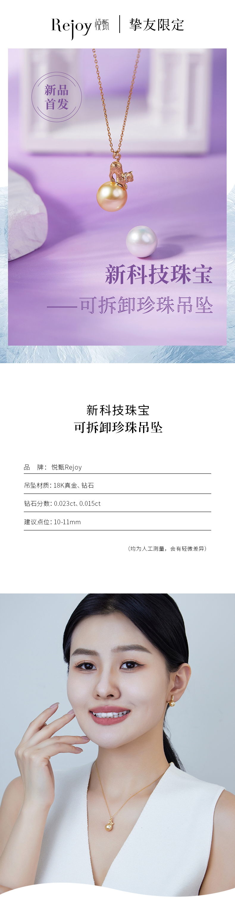 【黑科技】 (k黄)小猫-可拆卸珍珠吊坠(会员享试戴权益,定制后不支持7天无理由退换货)