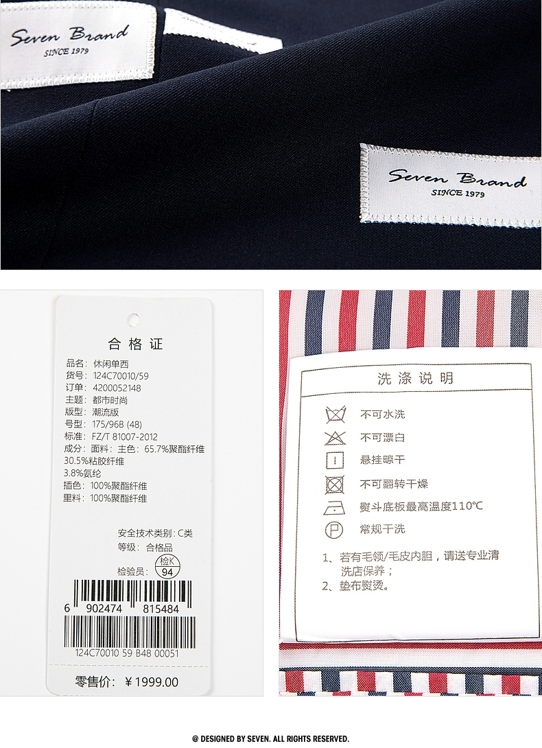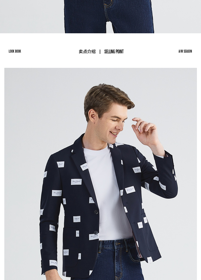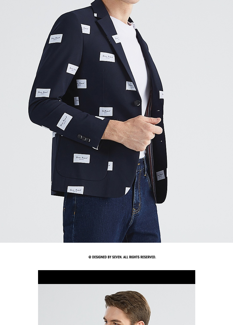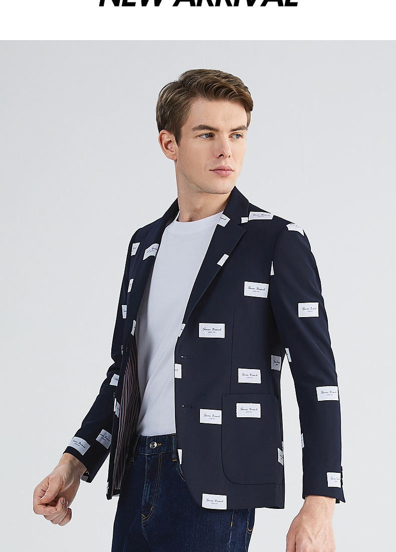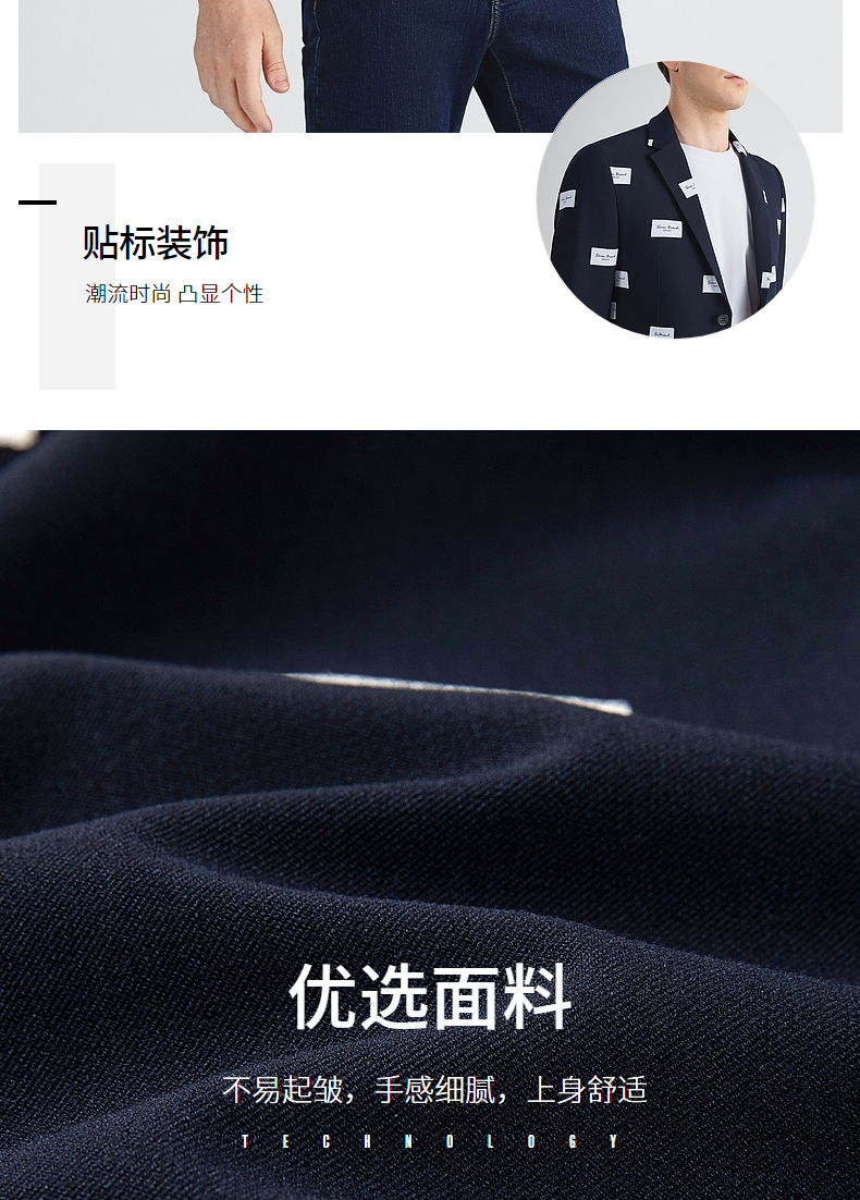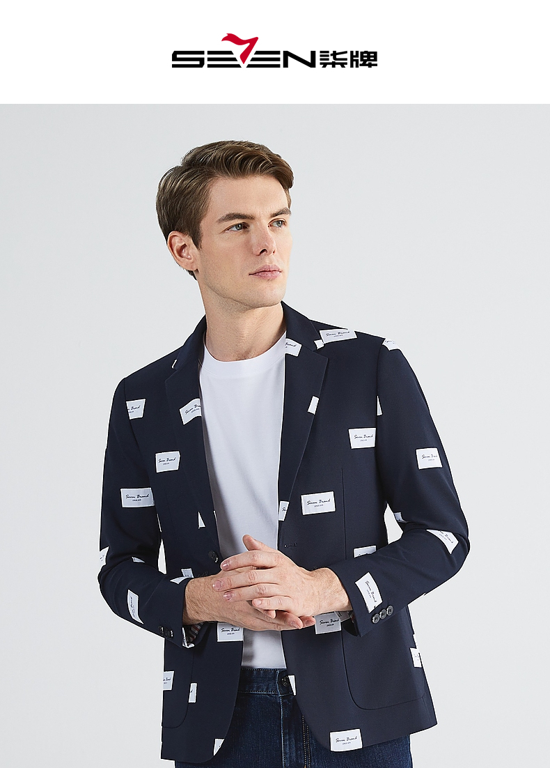 【特价】柒牌男士西装外套男春秋季韩版潮流帅气满身贴标修身西服单西 124C70010