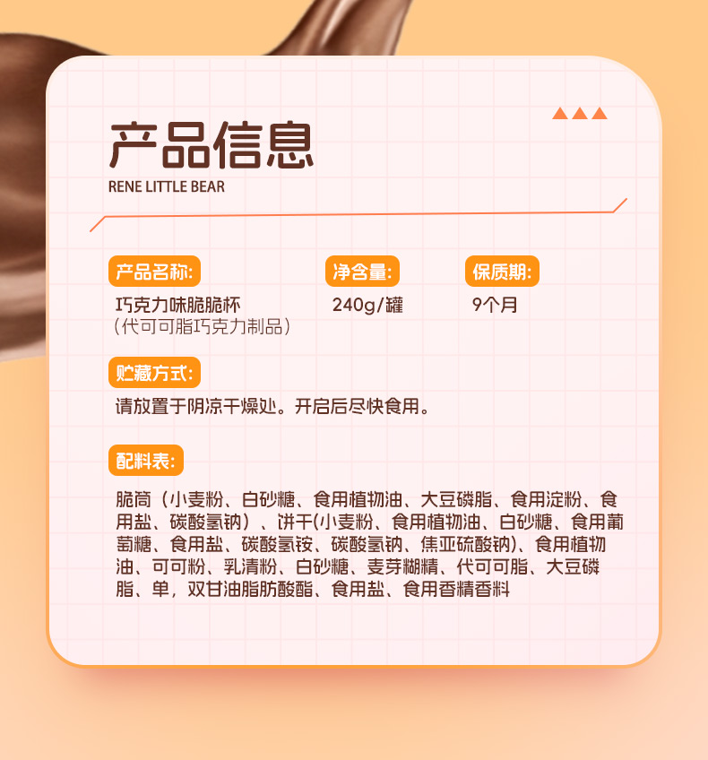 Rene Little Bear 香港小熊巧克力味脆脆杯 240g