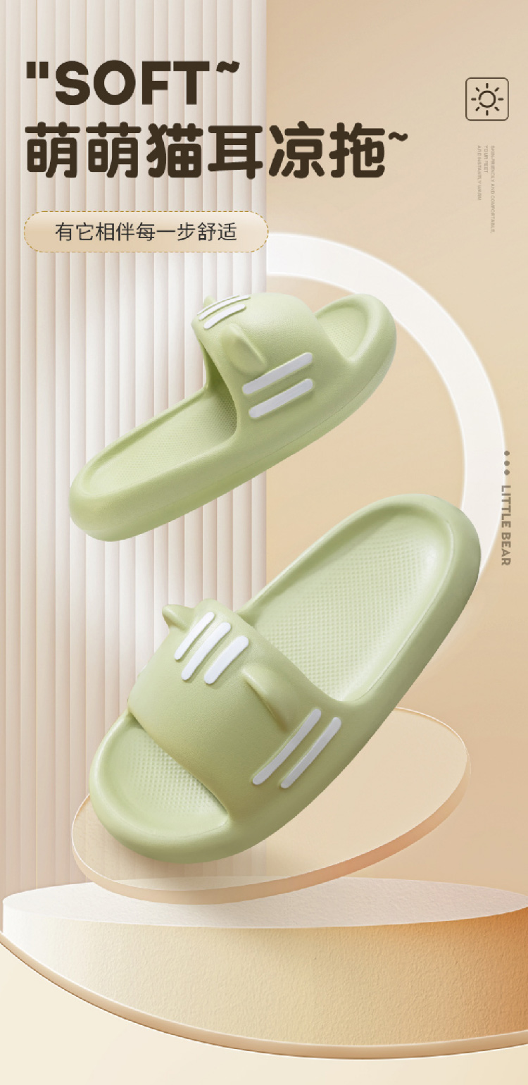 【萌萌猫耳凉拖】夏季新款踩屎感超软底男女拖鞋 可爱静音浴室防滑情侣猫儿拖鞋