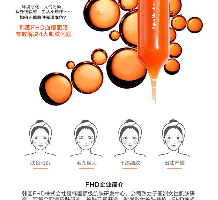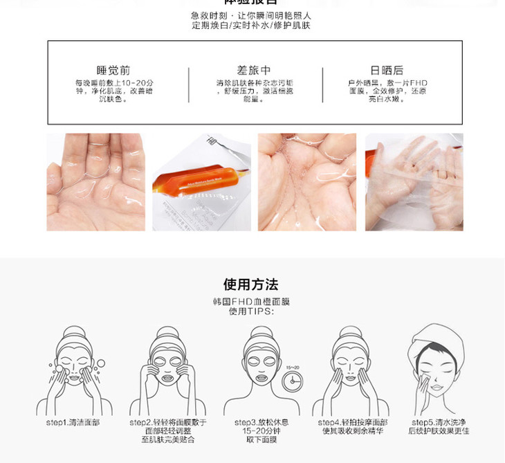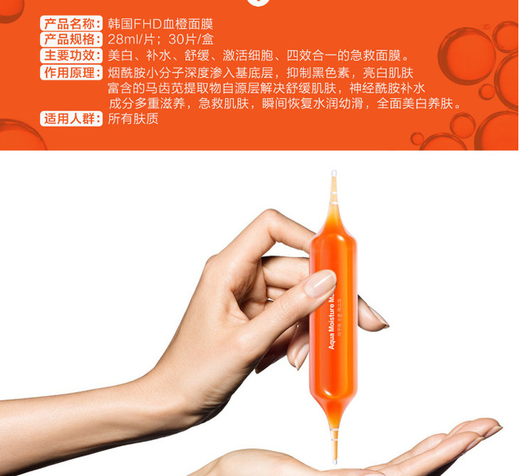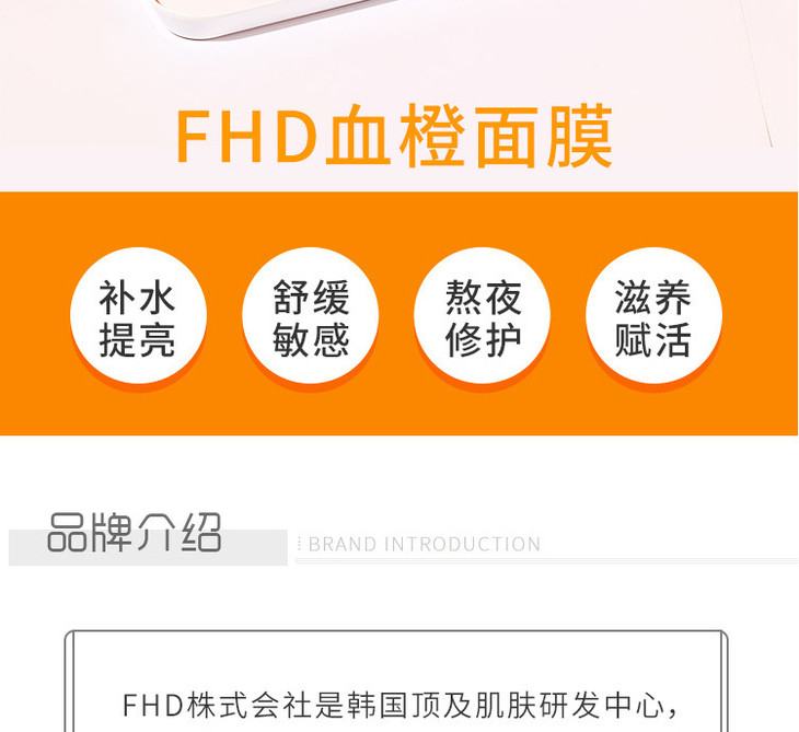 【现货】韩国FHD小红针血橙面膜女男 雪橙补水保湿急救收缩毛孔学生30片