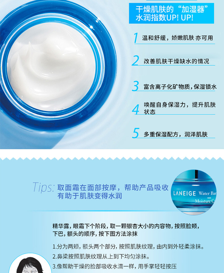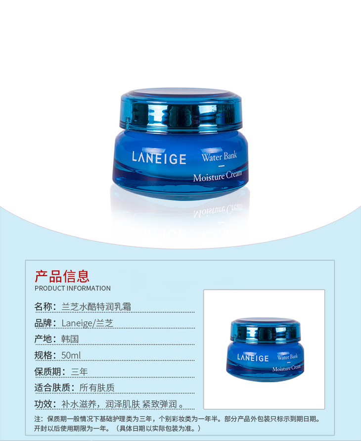 【 香港直邮】韩国兰芝LANEIGE水酷滋润保湿补水面霜50ml(新旧包装随机发货)