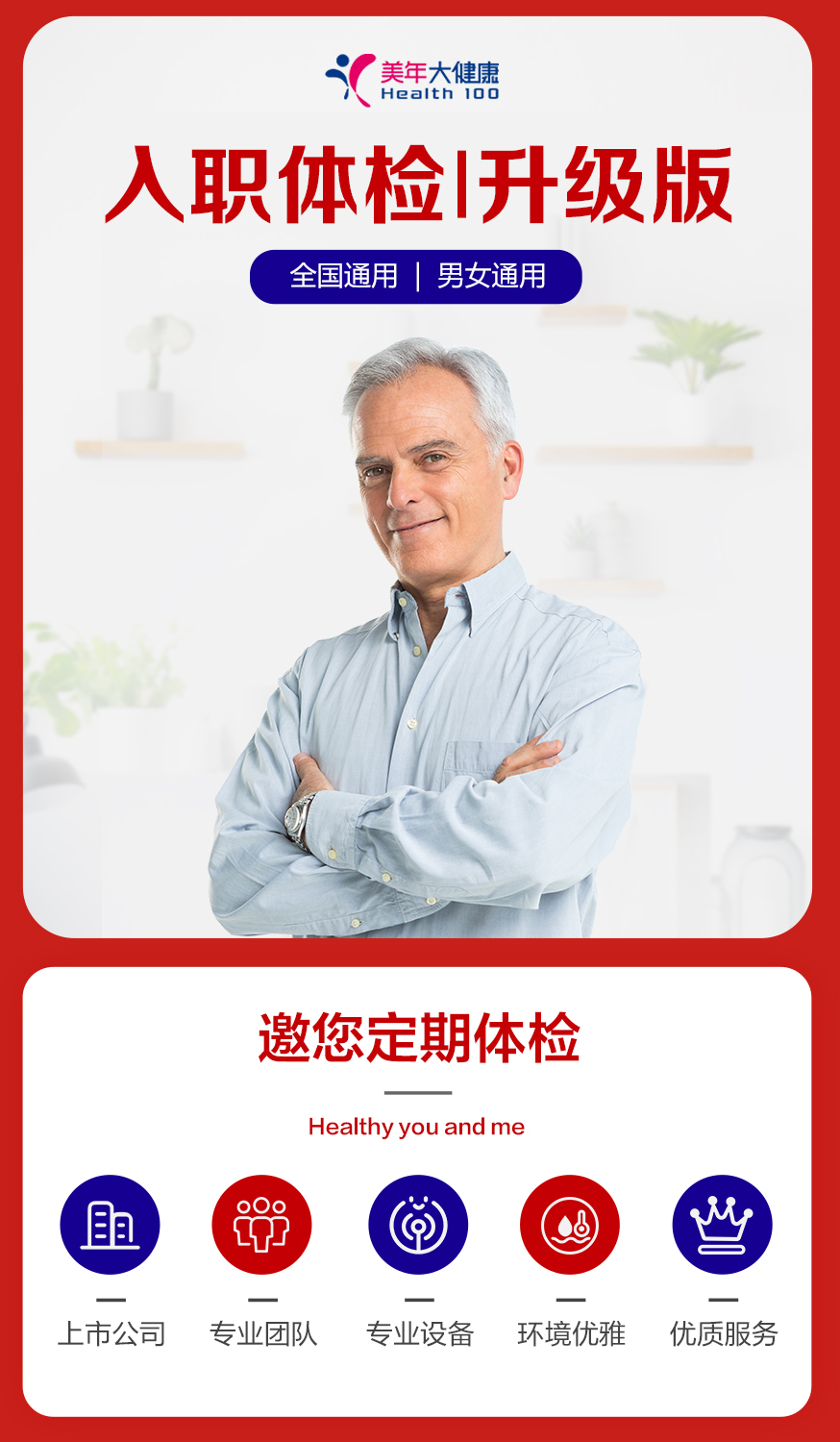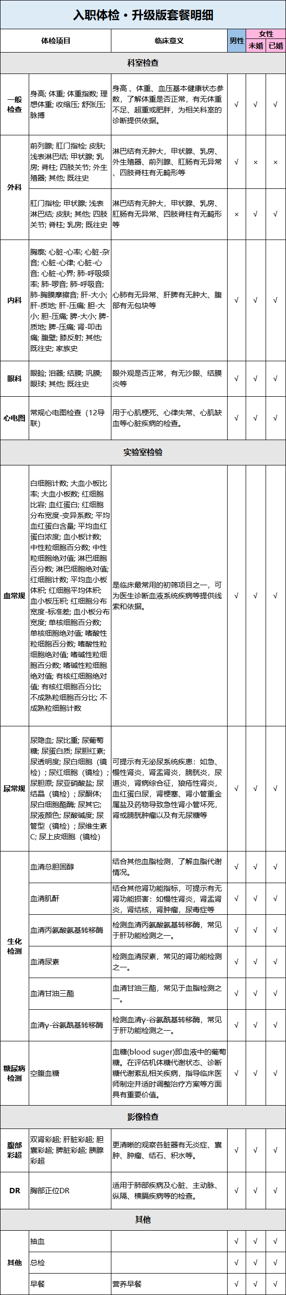 【美年大健康】入职体检升级版 体检套餐 18岁以上,男女通用(下单后联系客服预约)
