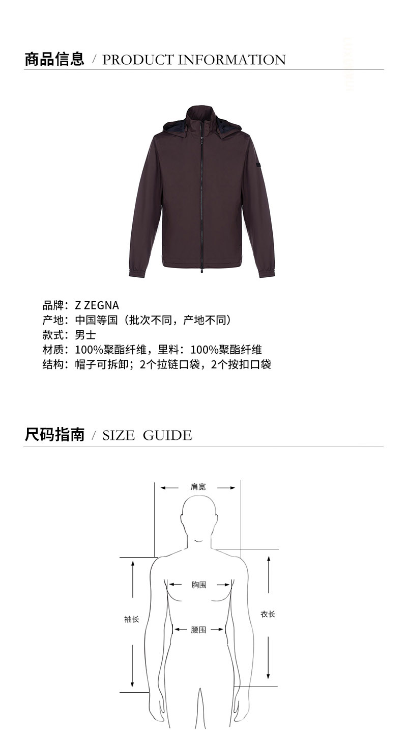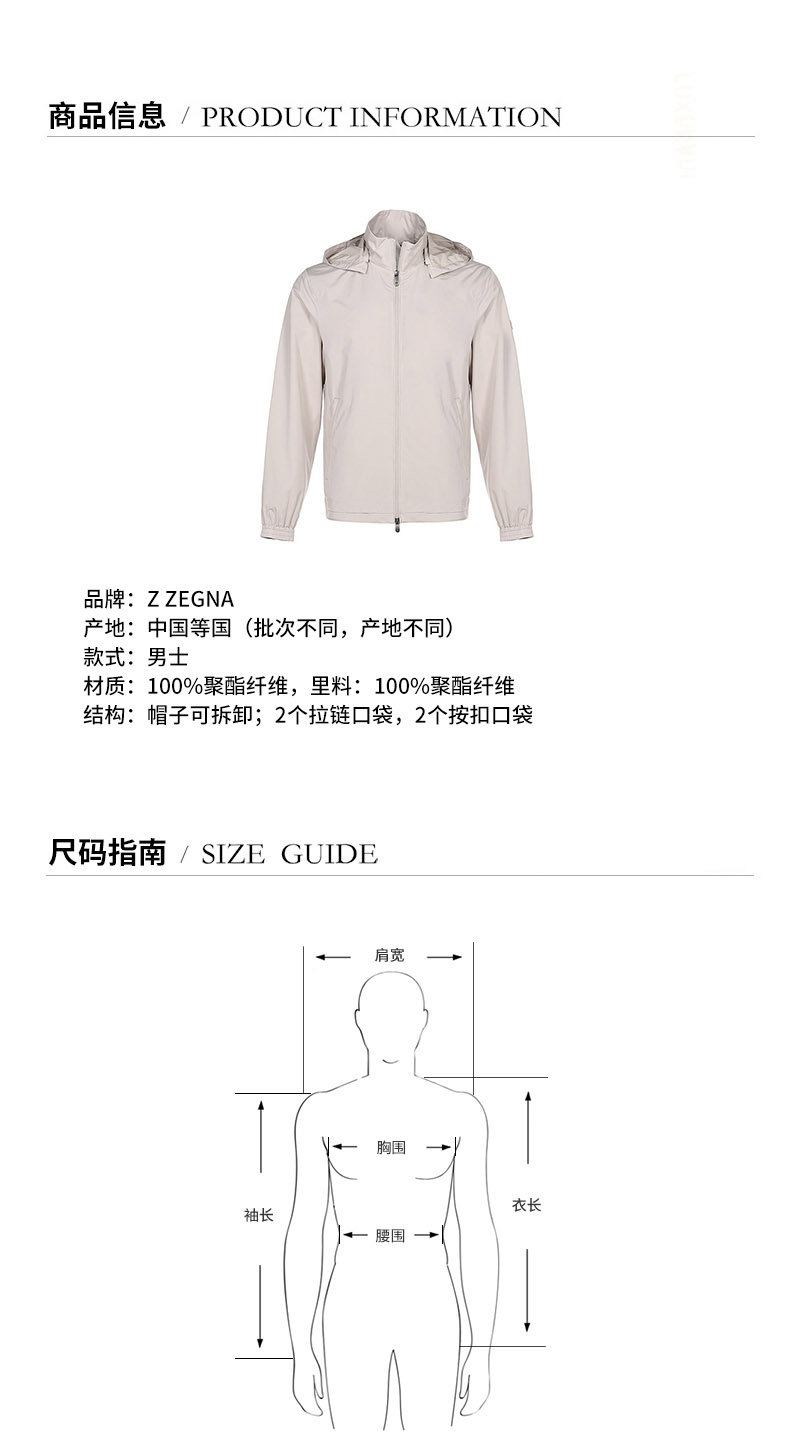 Z ZEGNA/杰尼亚 男士夹克聚酯纤维连帽上衣外套 VY019 ZZ036