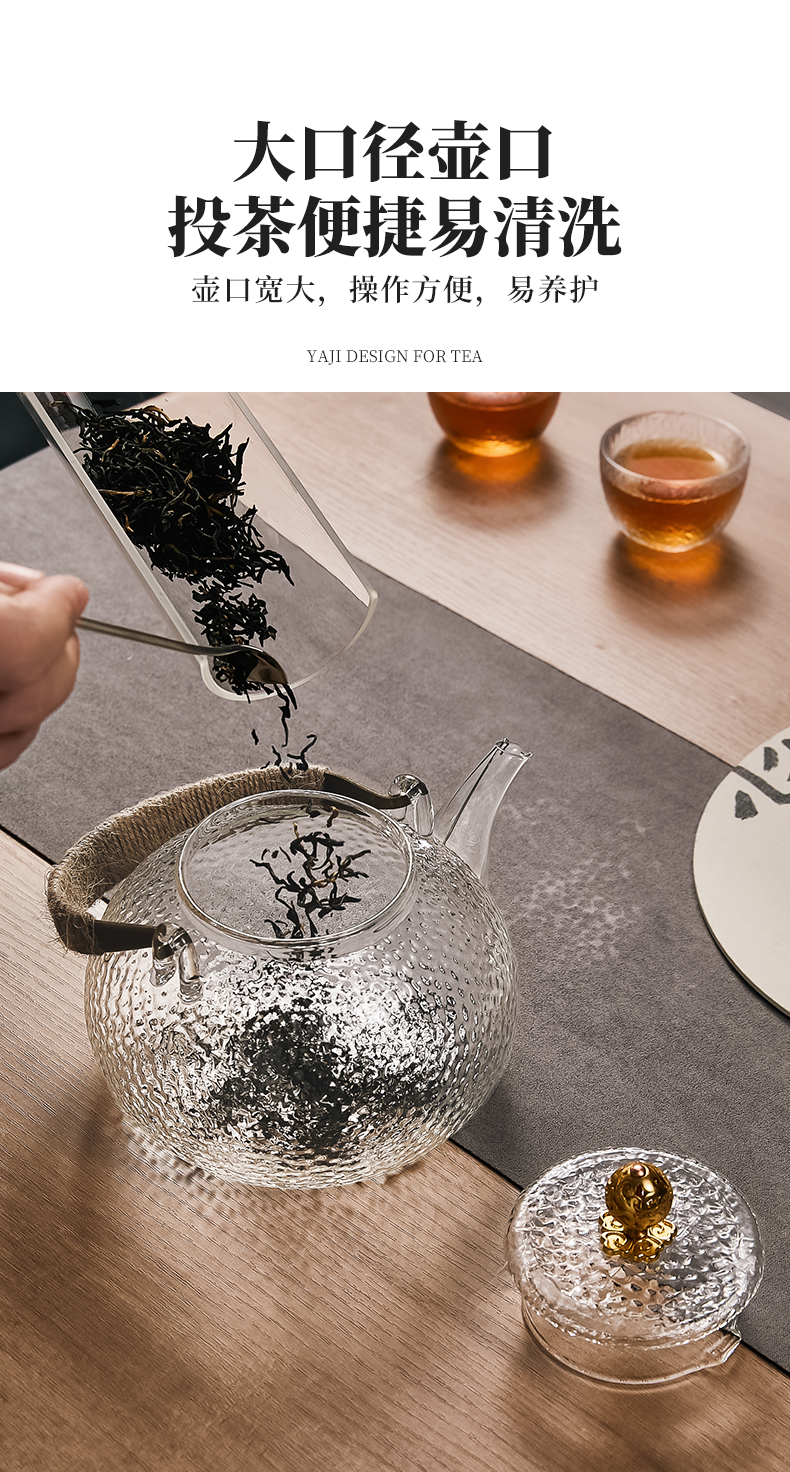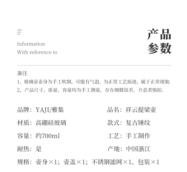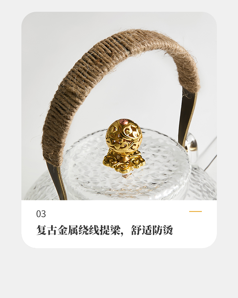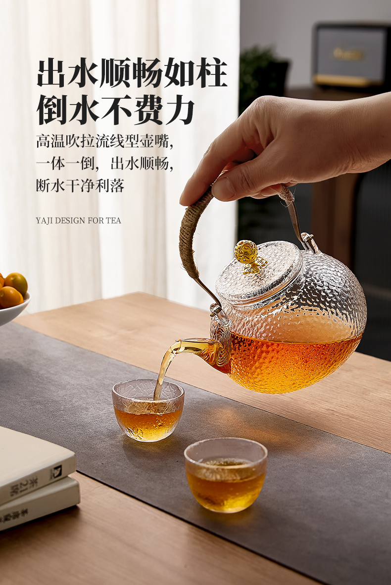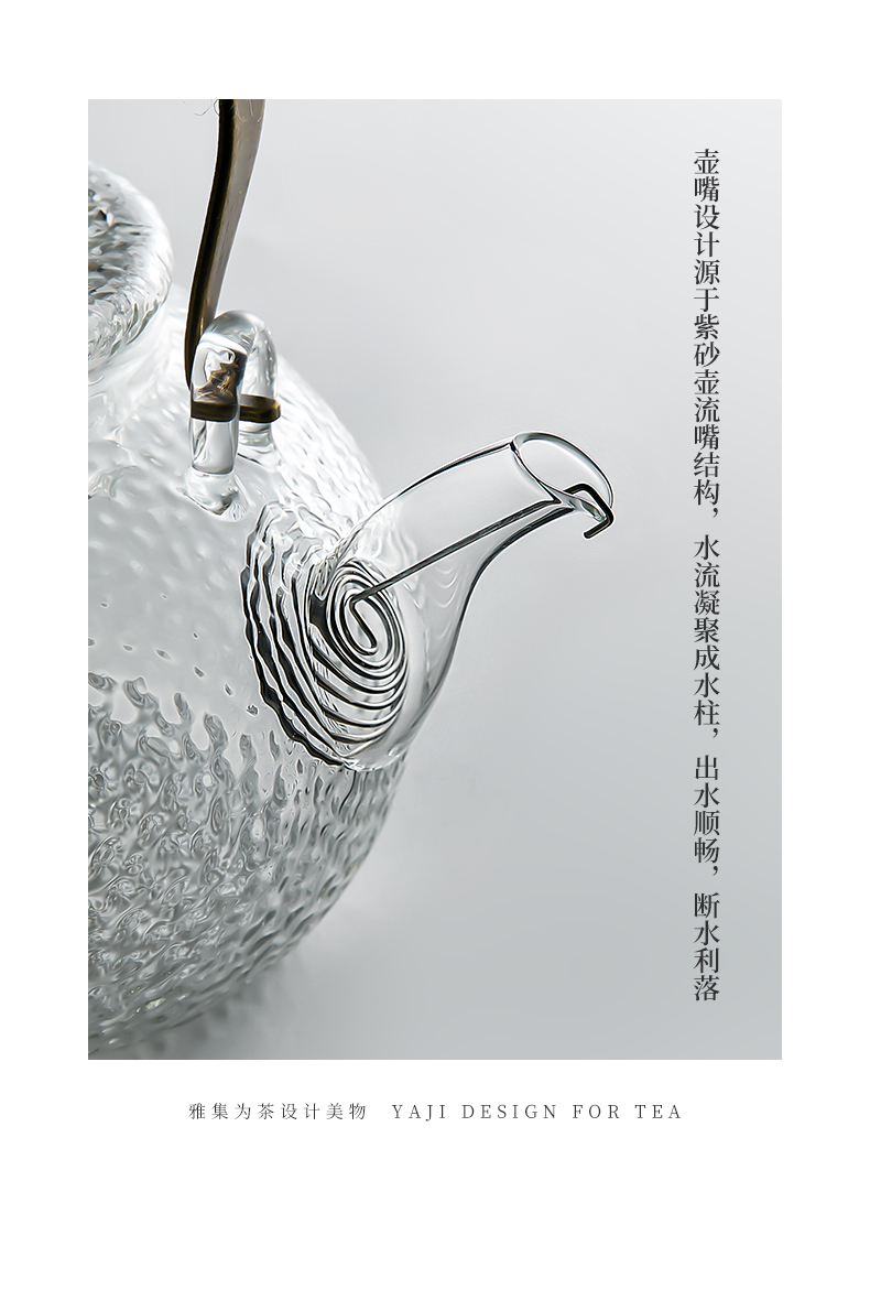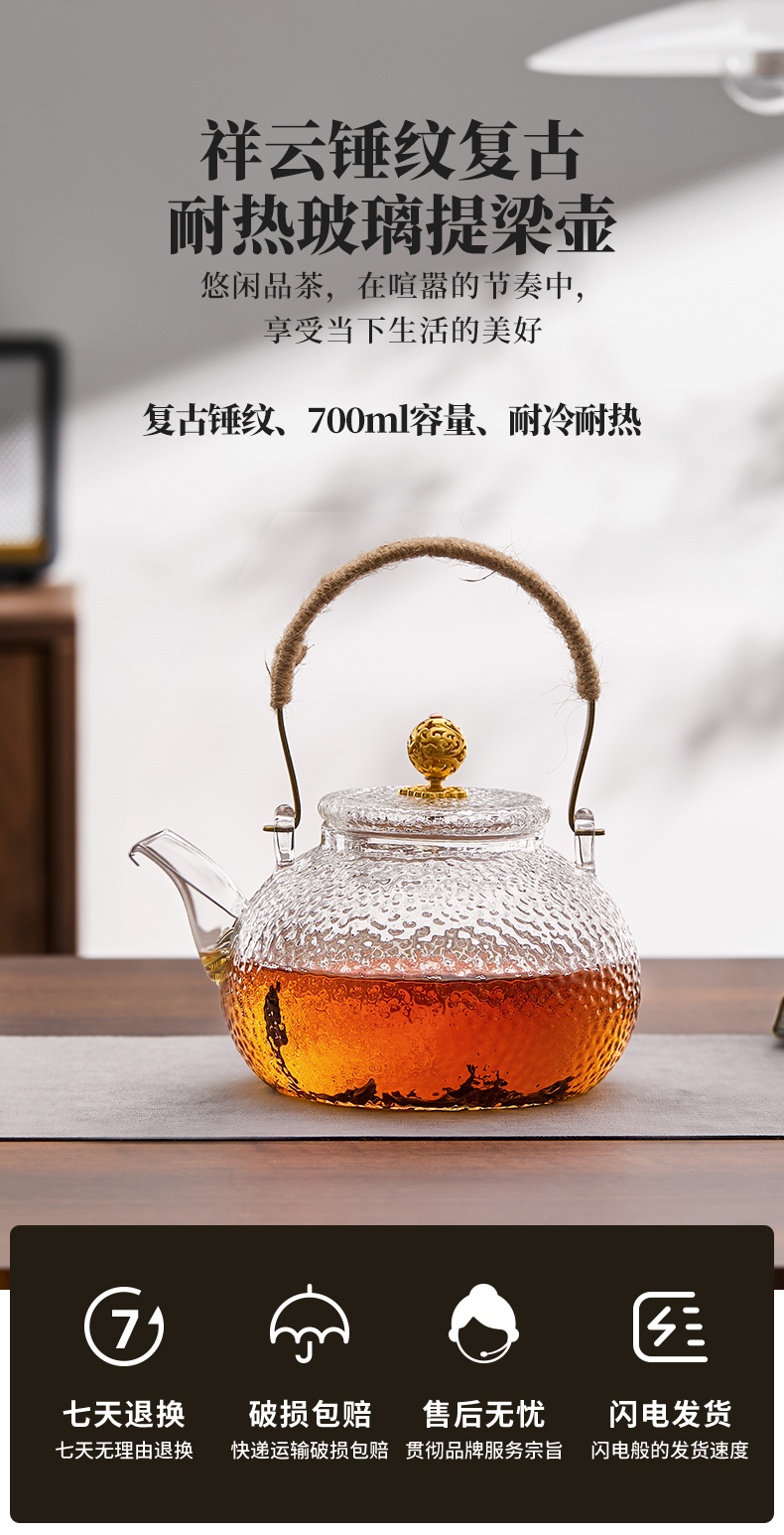 雅集玻璃壶锤纹铜把提梁壶700ml(祥云)