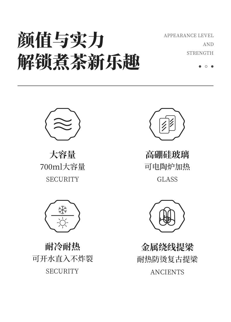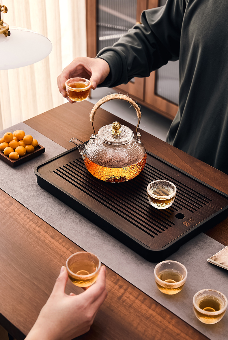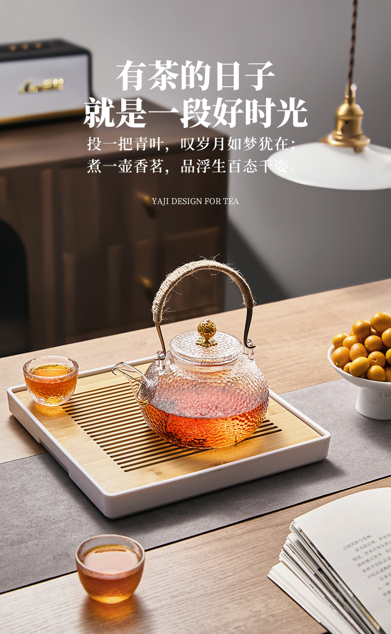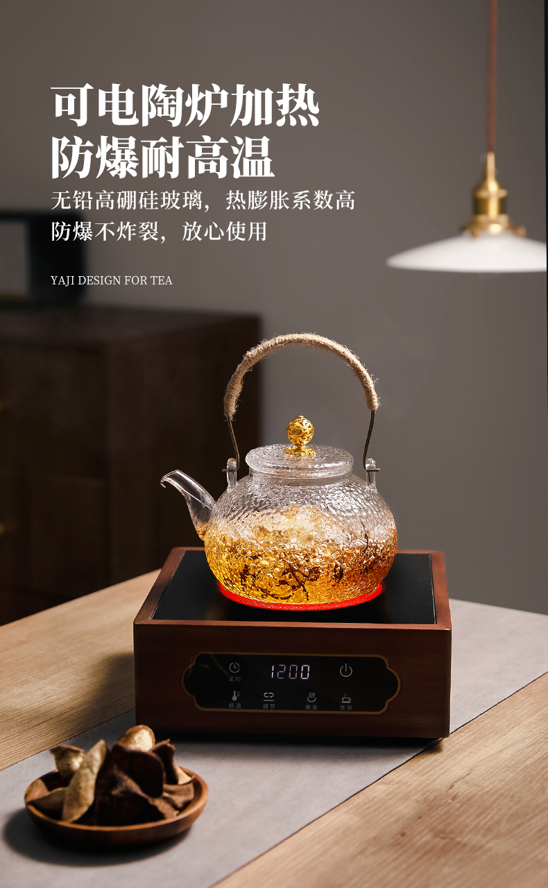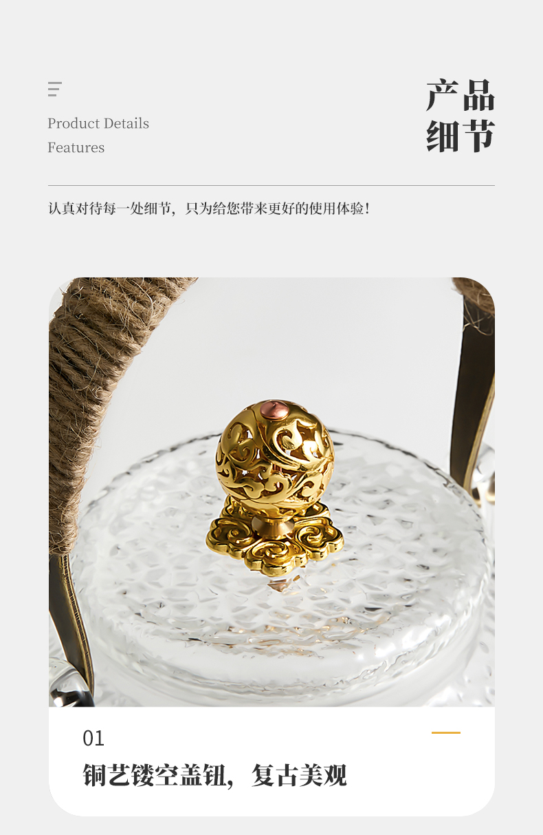 雅集玻璃壶锤纹铜把提梁壶700ml(祥云)