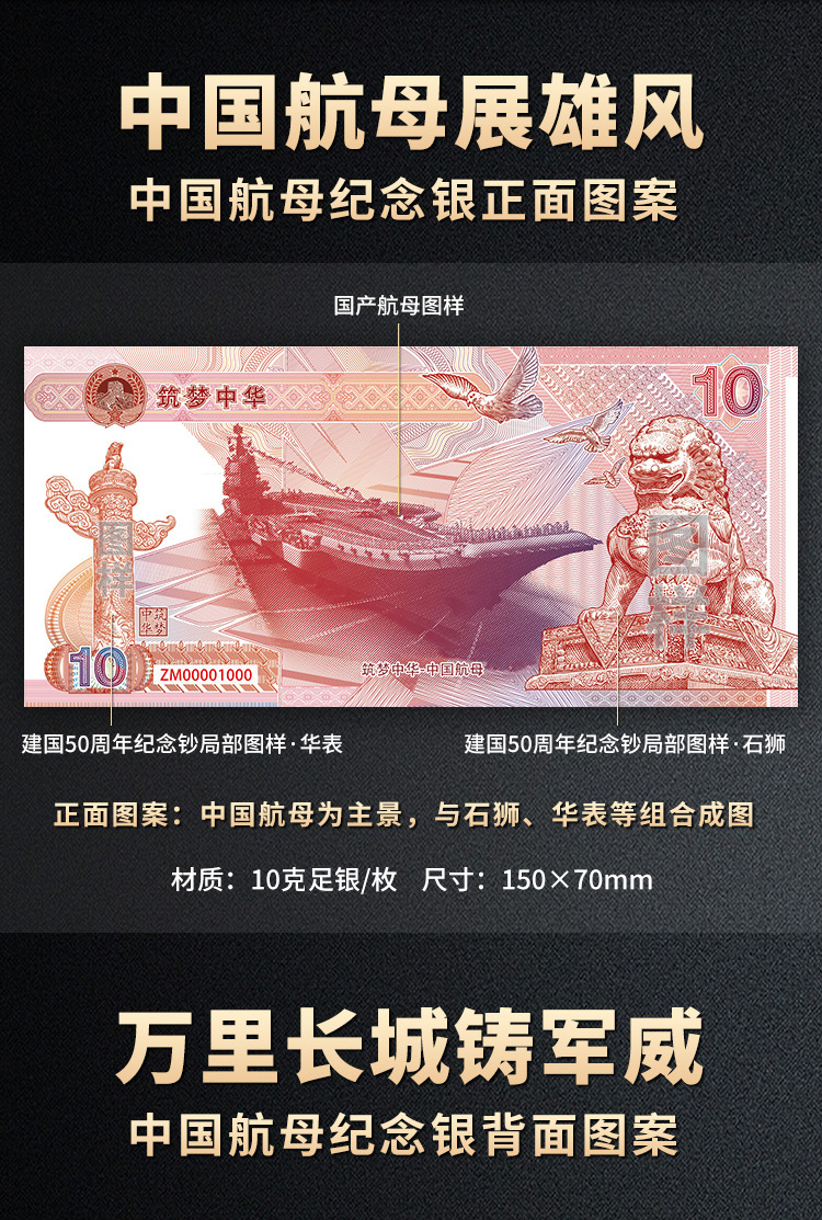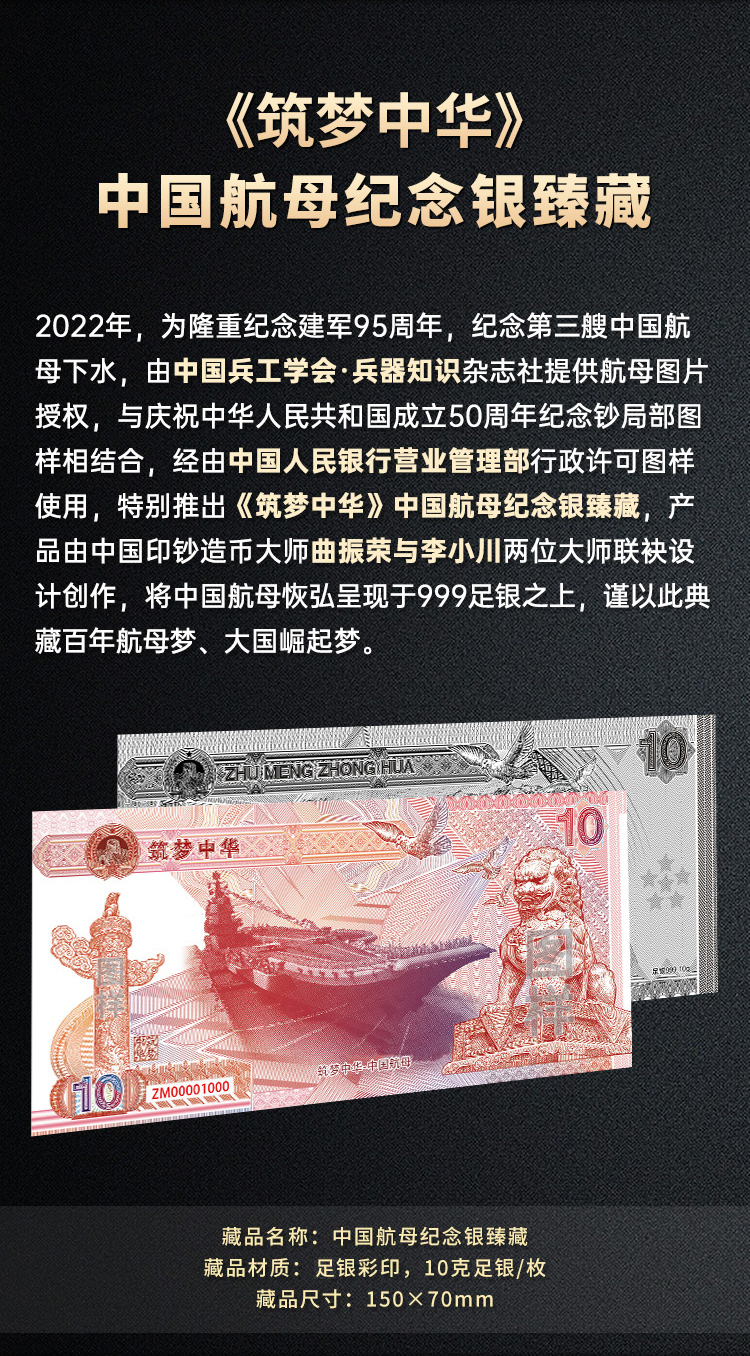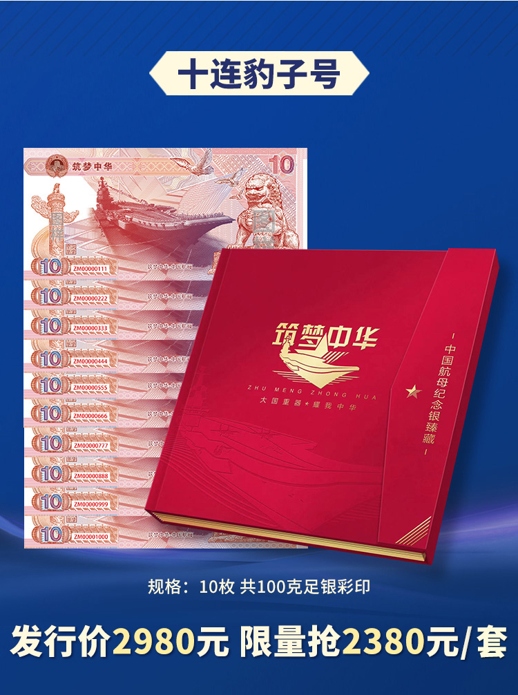 【筑梦中华】中国航母纪念银臻藏套装(十连号豹子号)