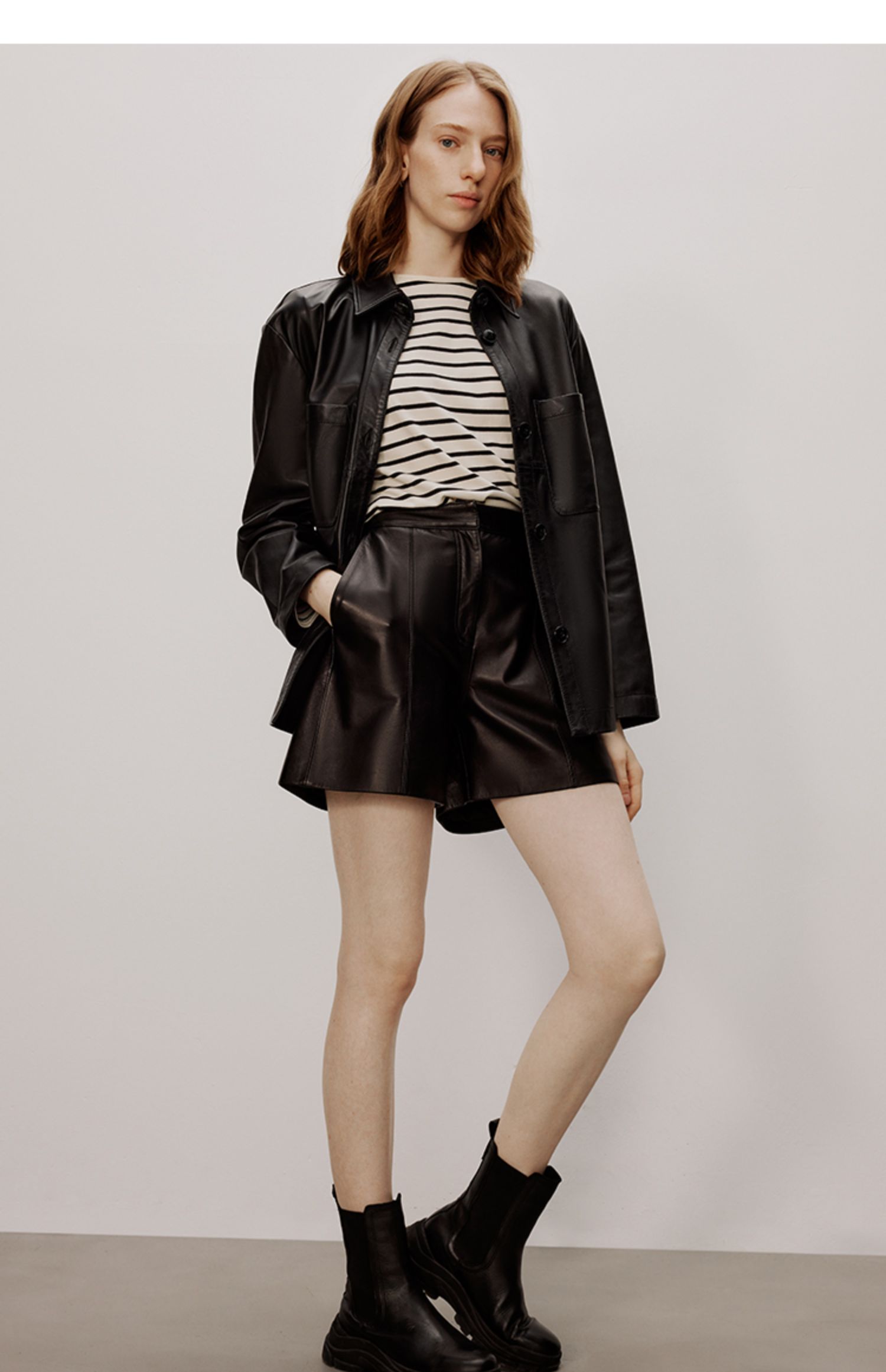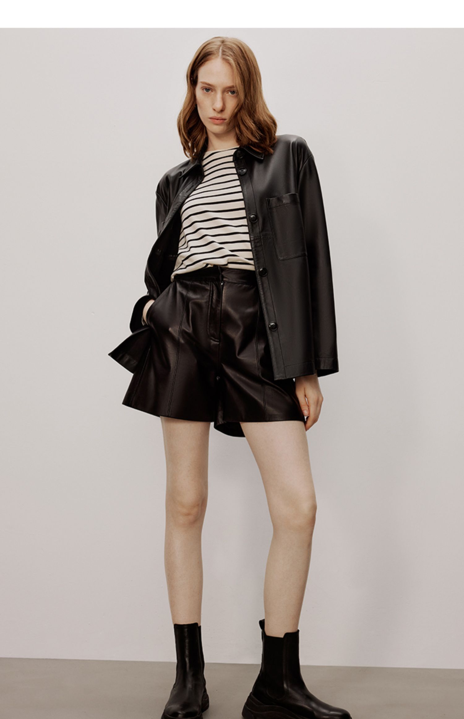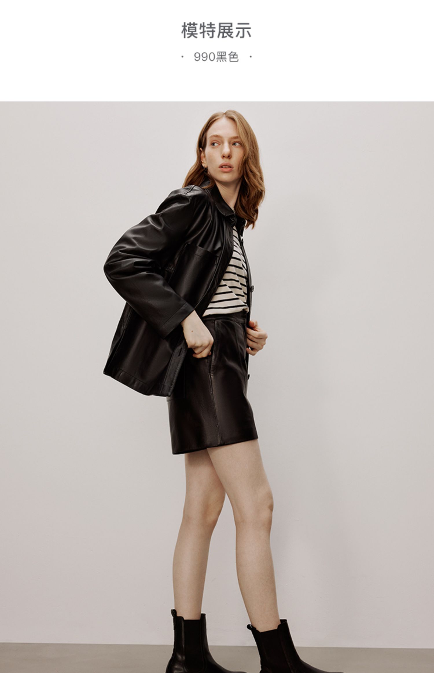 【李佳薇同款】MOP秋冬新款休闲真皮外套宽松绵羊夹克皮衣女