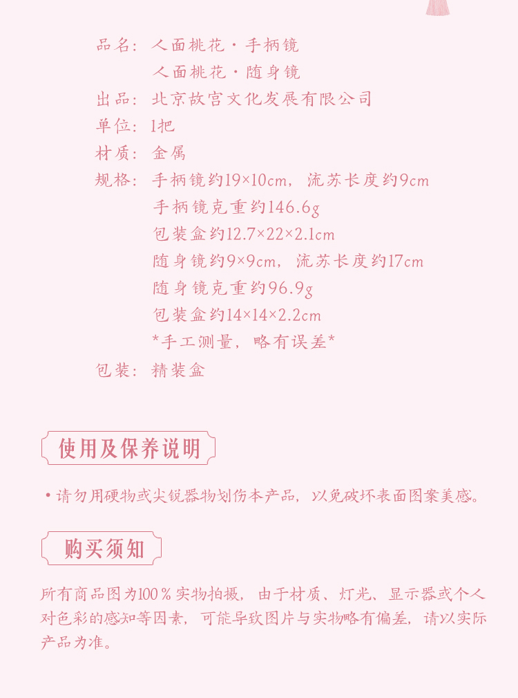 【2月6日~3月10日积分兑换】故宫人面桃花手柄镜手持化妆镜(商城会员可兑)