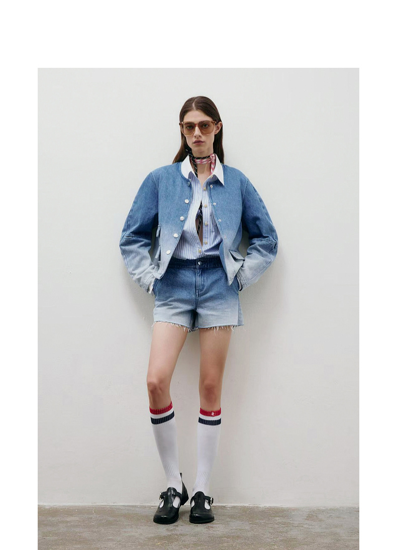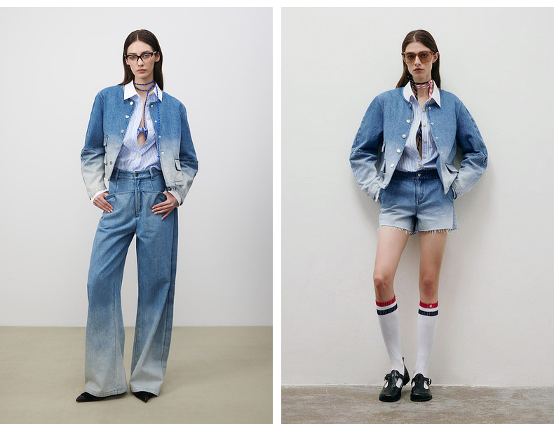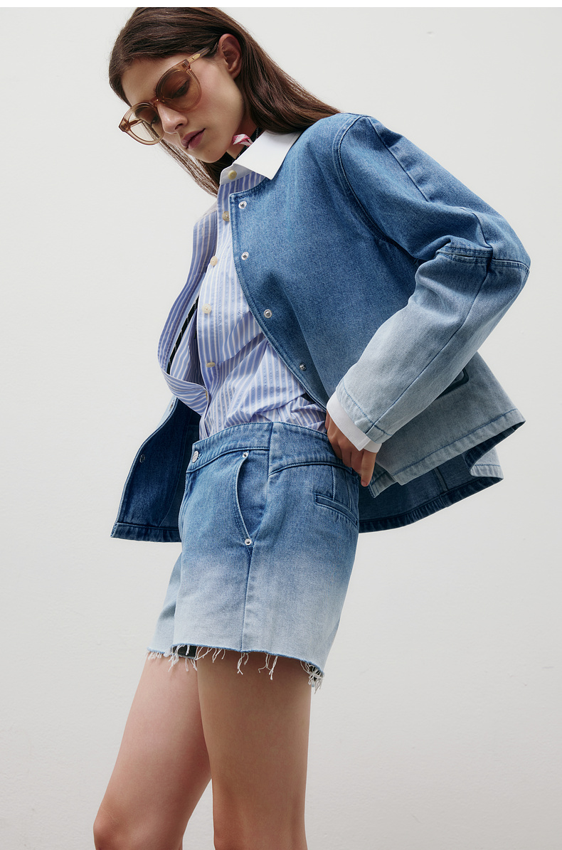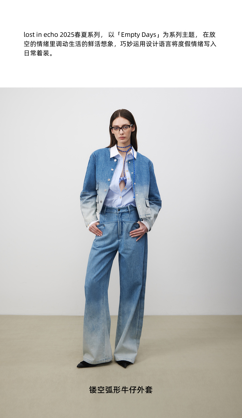 lost in echo2025春夏新款经典扣袢简约廓形显瘦渐变牛仔短外套