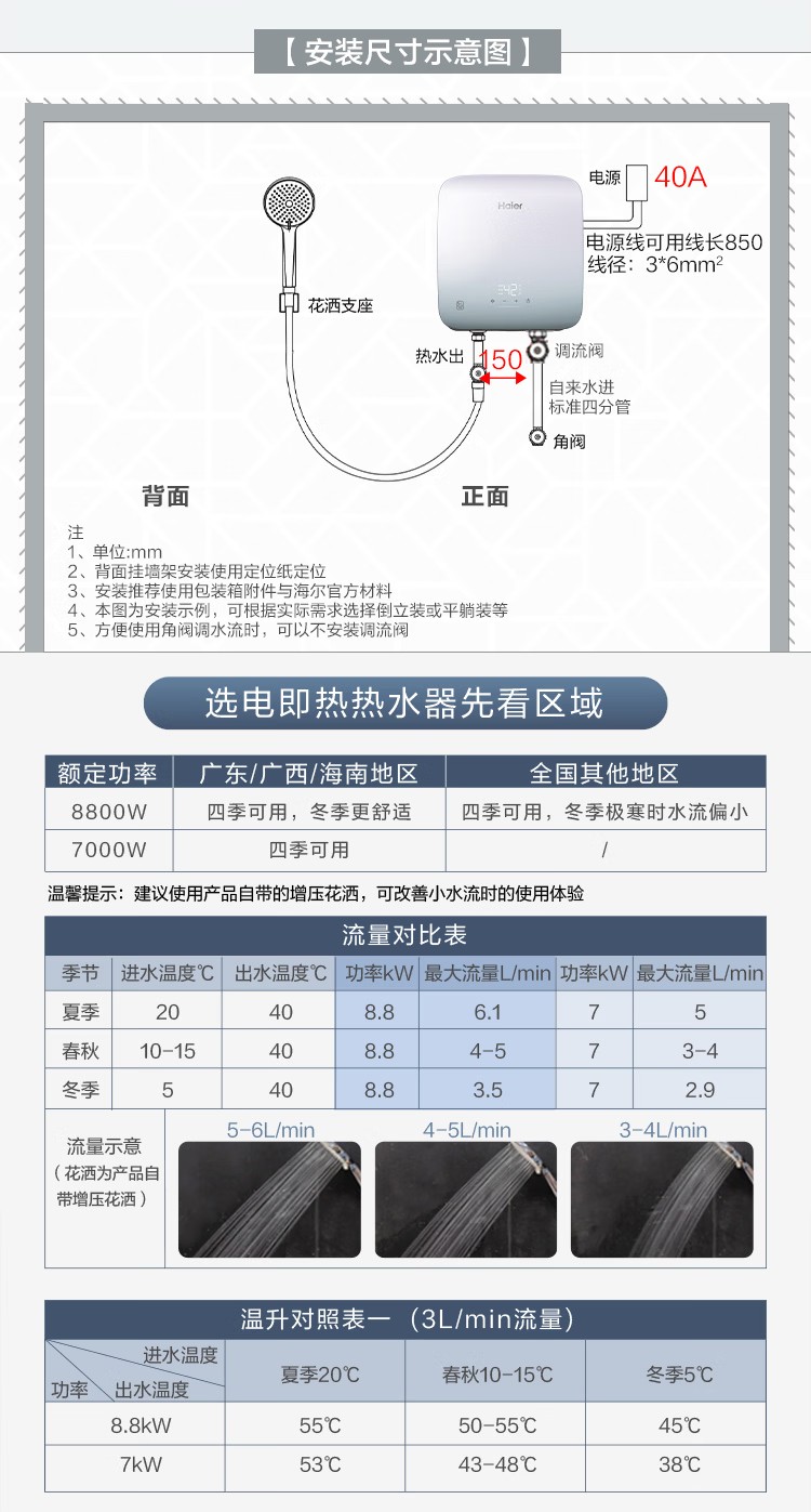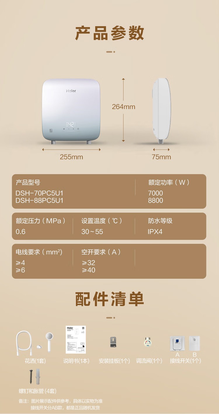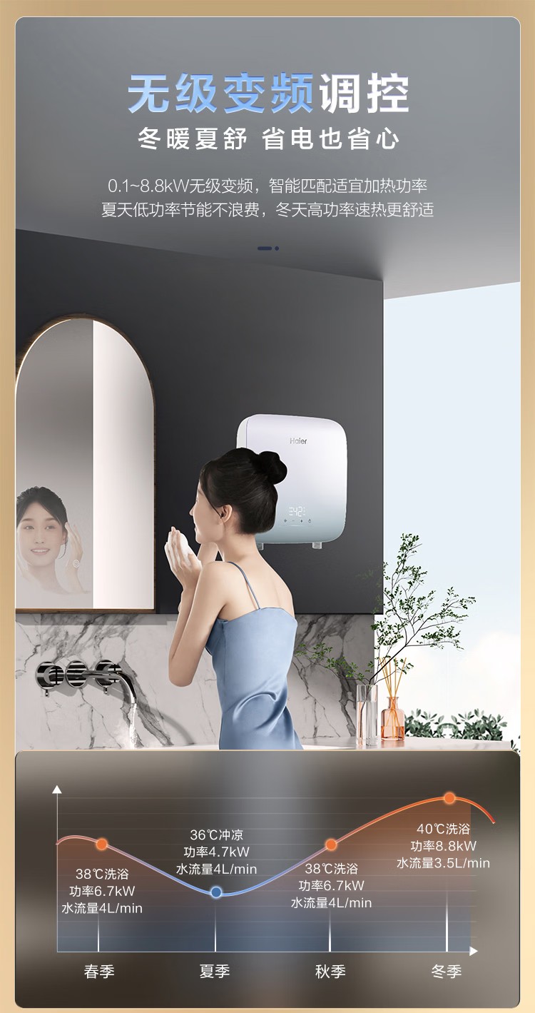 海尔即热式电热水器即热式家用洗澡专用免储水即热型迷你mini超薄小型7000w大功率无极变频速热恒温 7000W 瞬热+【水电分离】更安全 专线4平方