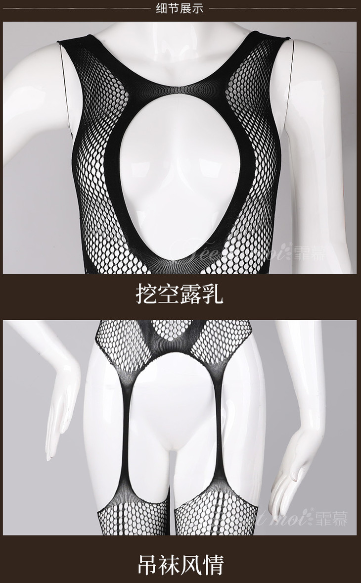 霏慕惹火露乳开裆连身袜7522 情趣内衣性感开档 诱惑套装情趣丝袜透明开裆吊带连身袜