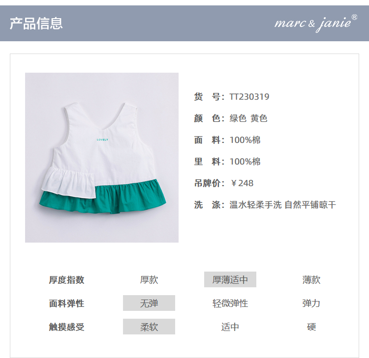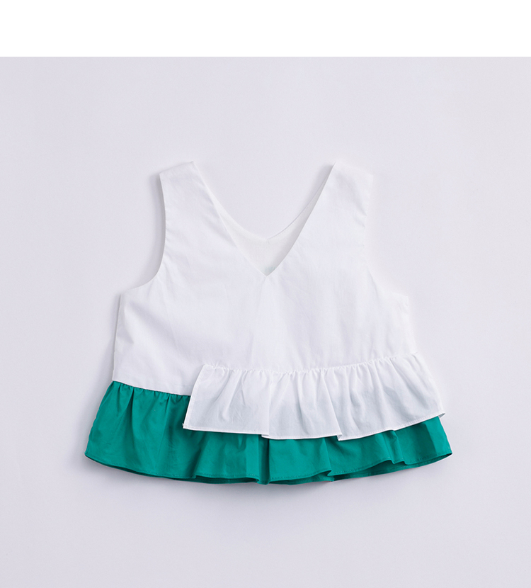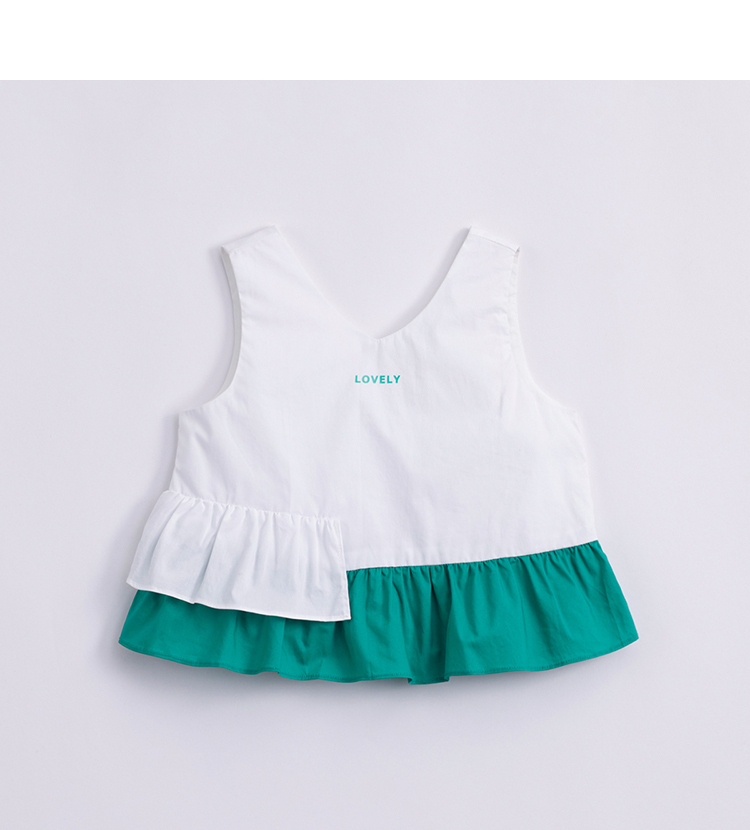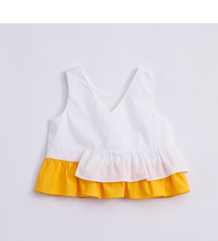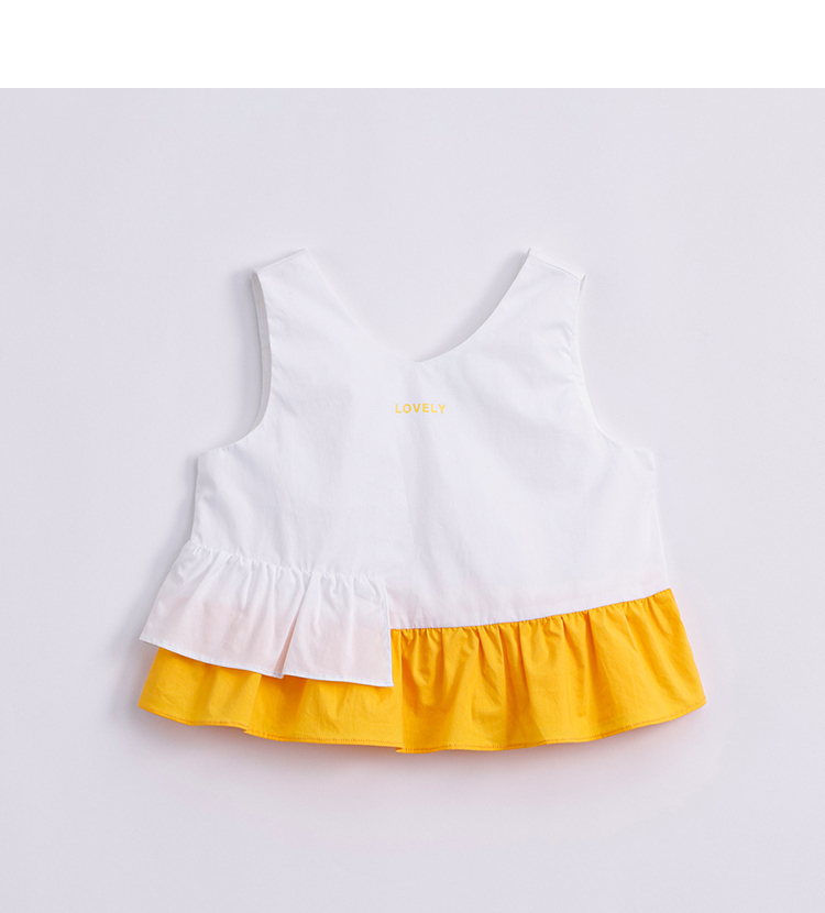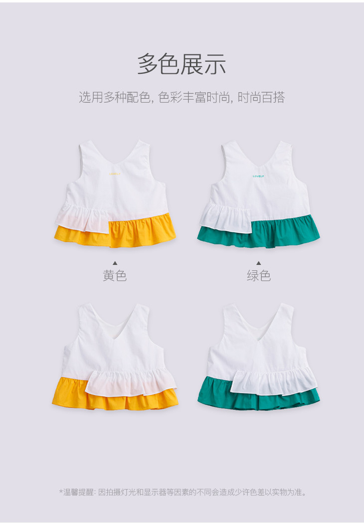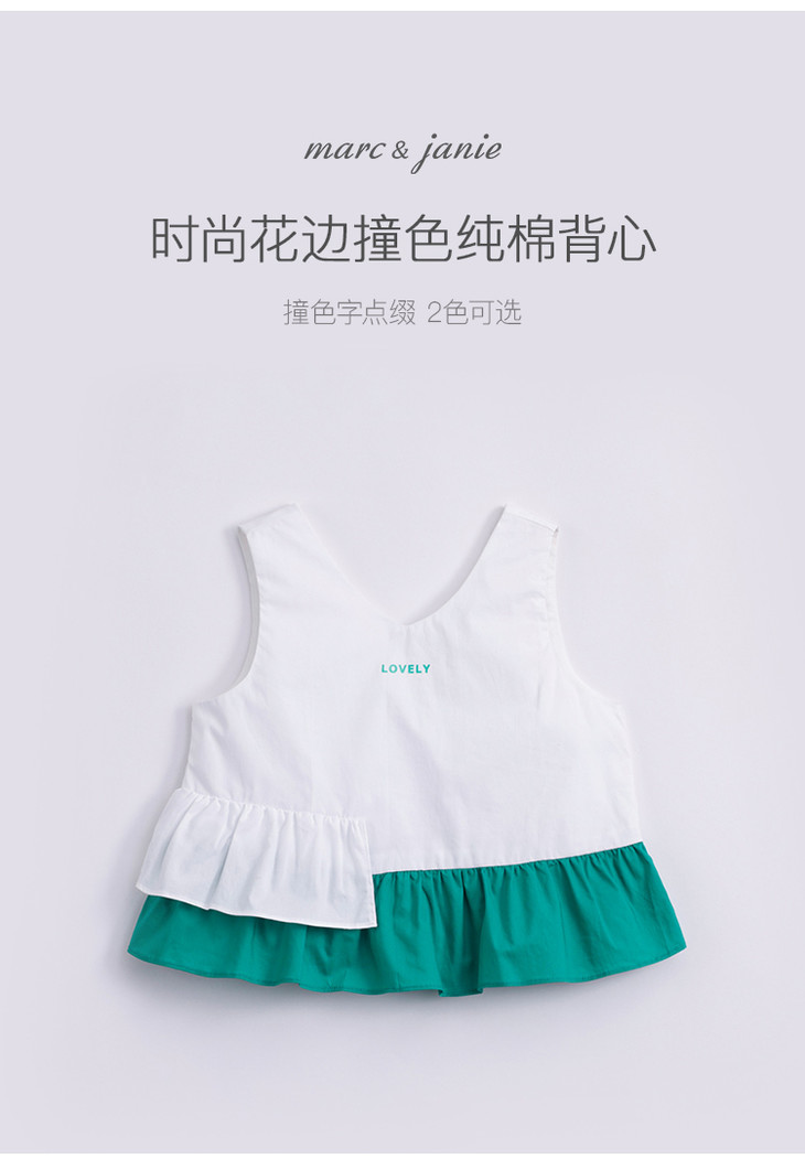 马克珍妮夏装新款 女童北欧风不规则花边纯棉背心230319
